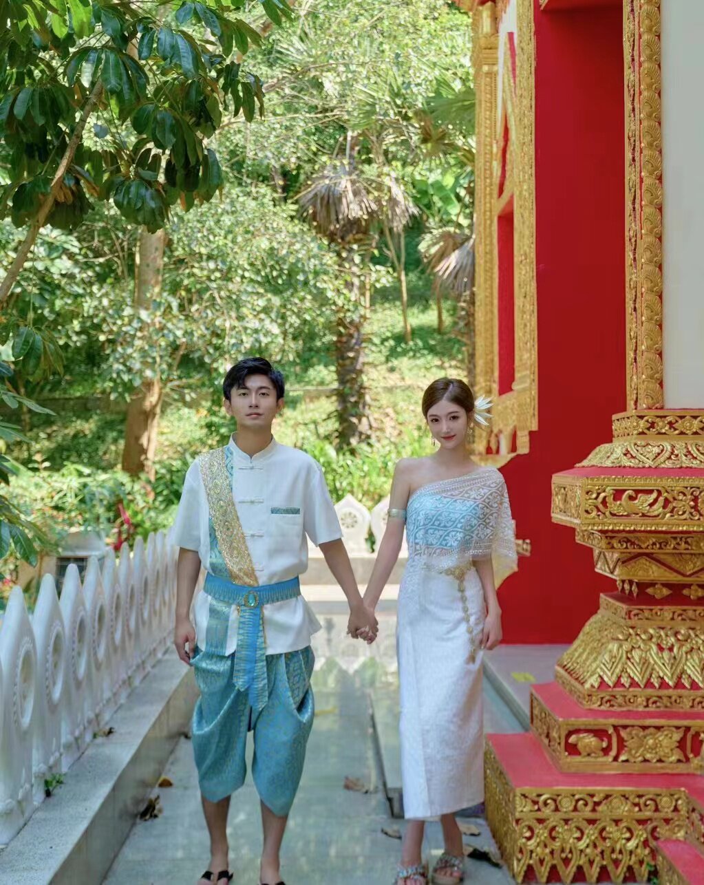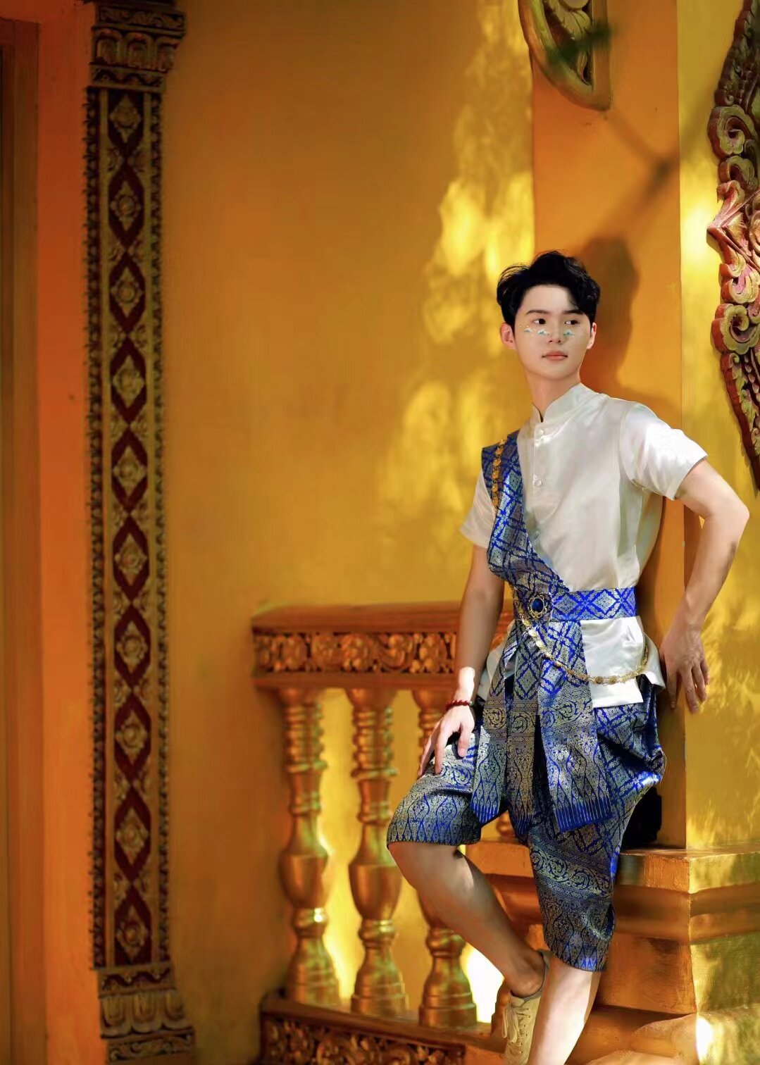 Dai Princess Costume Thai Traditional Style Dai Water Splashing Festival Clothing Men's Short-Sleeved Lantern Pants Spring and Summer Set