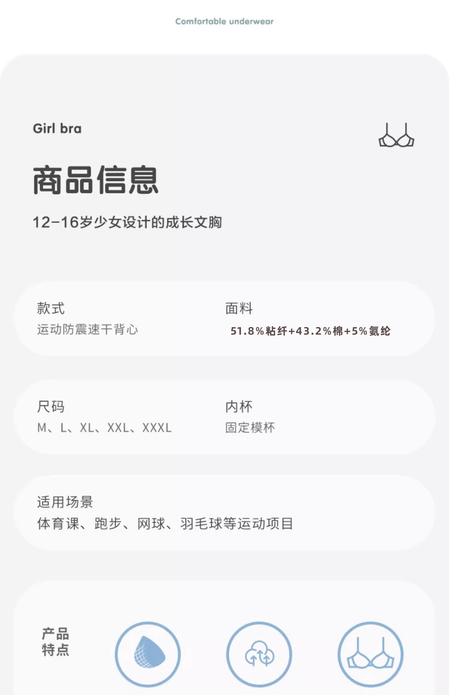 Girls' Bras for Middle School and High School Students, Sports Bras for Girls, Shockproof Vests for Older Children, Puberty Development Period, 15 Years Old