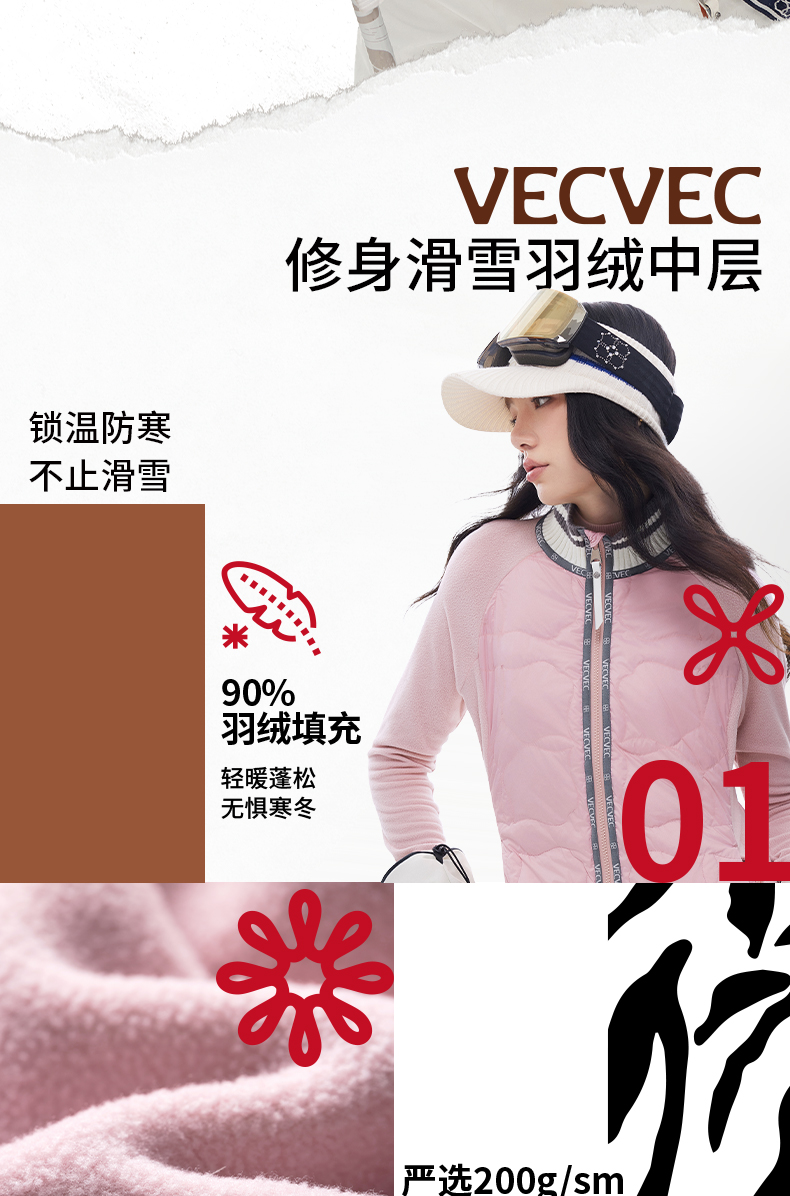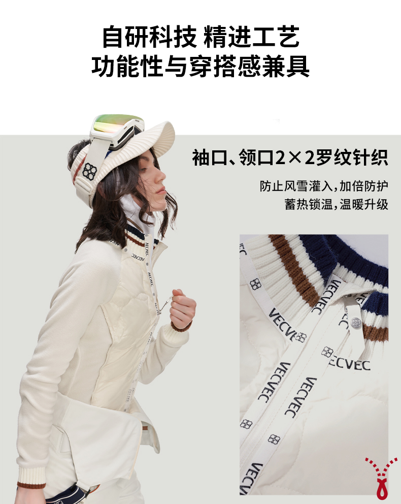 Vevec Ski down Inner Layer Thin Warm Jacket for Women Autumn and Winter Breathable White Duck down Slim Fit Base Layer