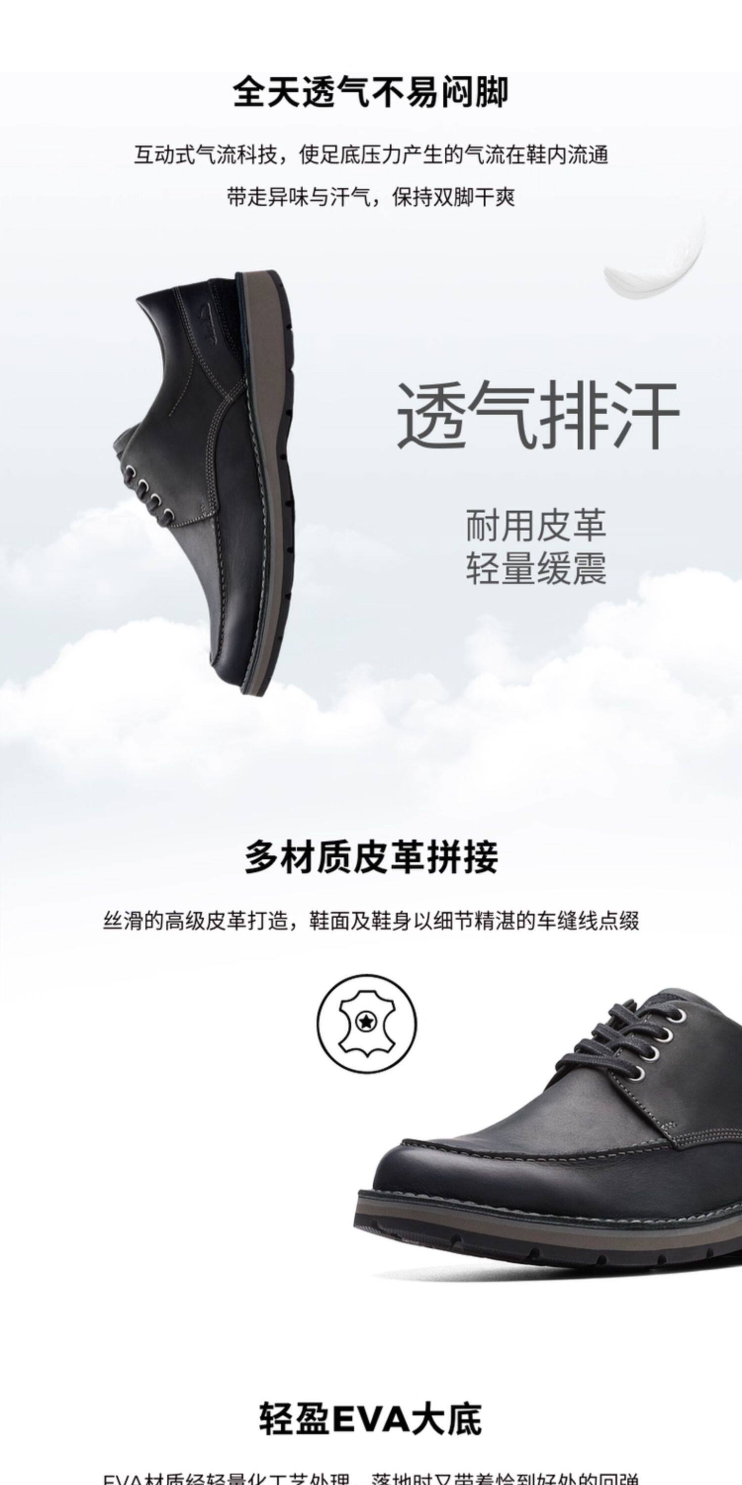 Clarks Gravellelow Men's Casual Leather Shoes, Late Autumn Style, Thick-Soled Business Simple Commuter Cowhide Shoes