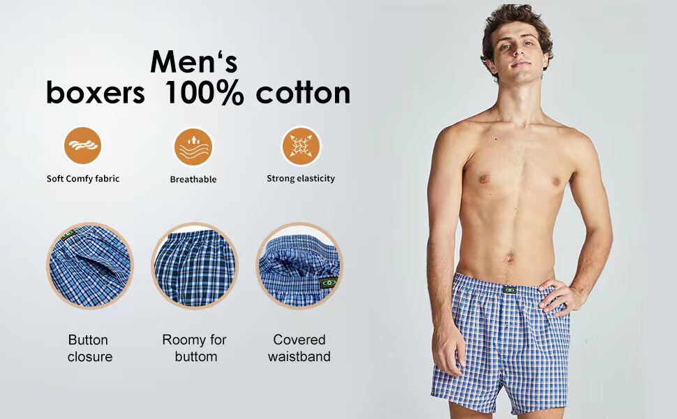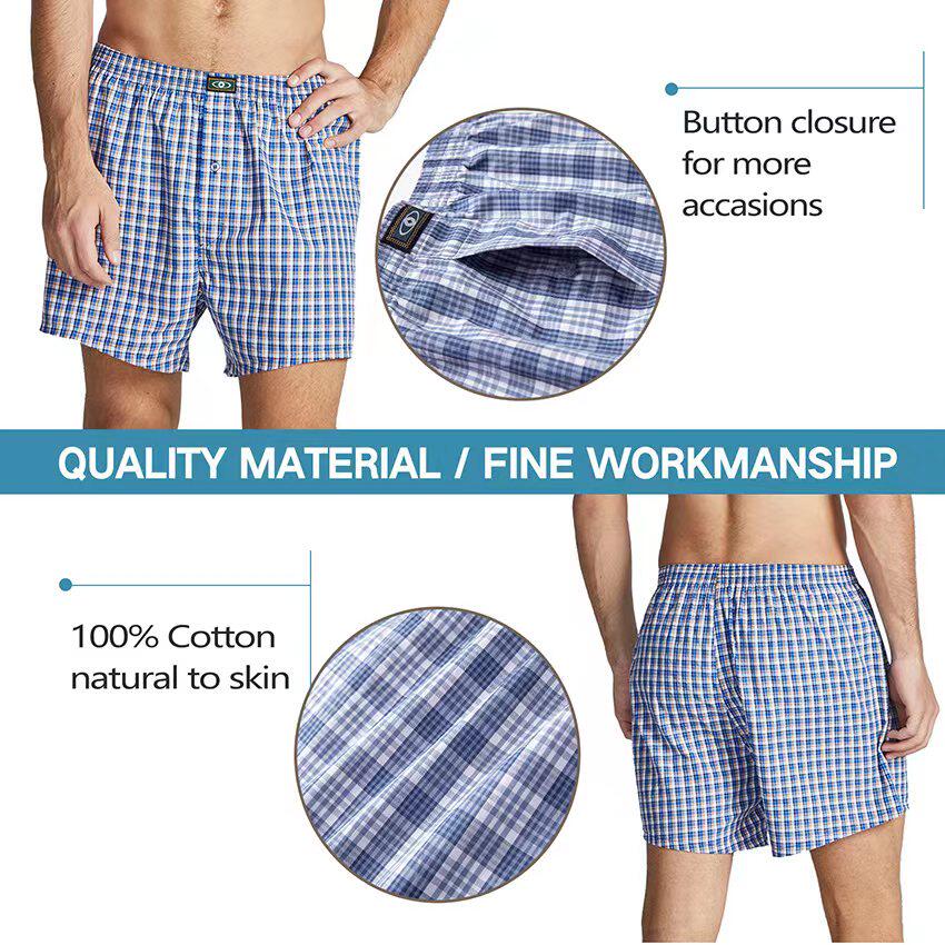 4 Pairs of American Size Men's Boxer Briefs with Deep Crotch, Pure Cotton Loose-Fitting Aro Pants, Woven All-Cotton Home Shorts