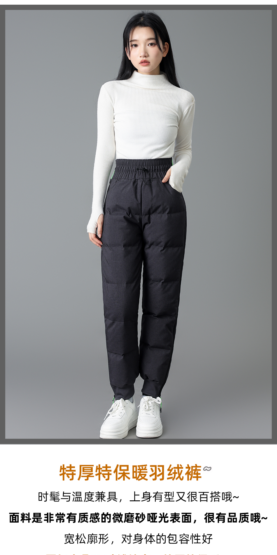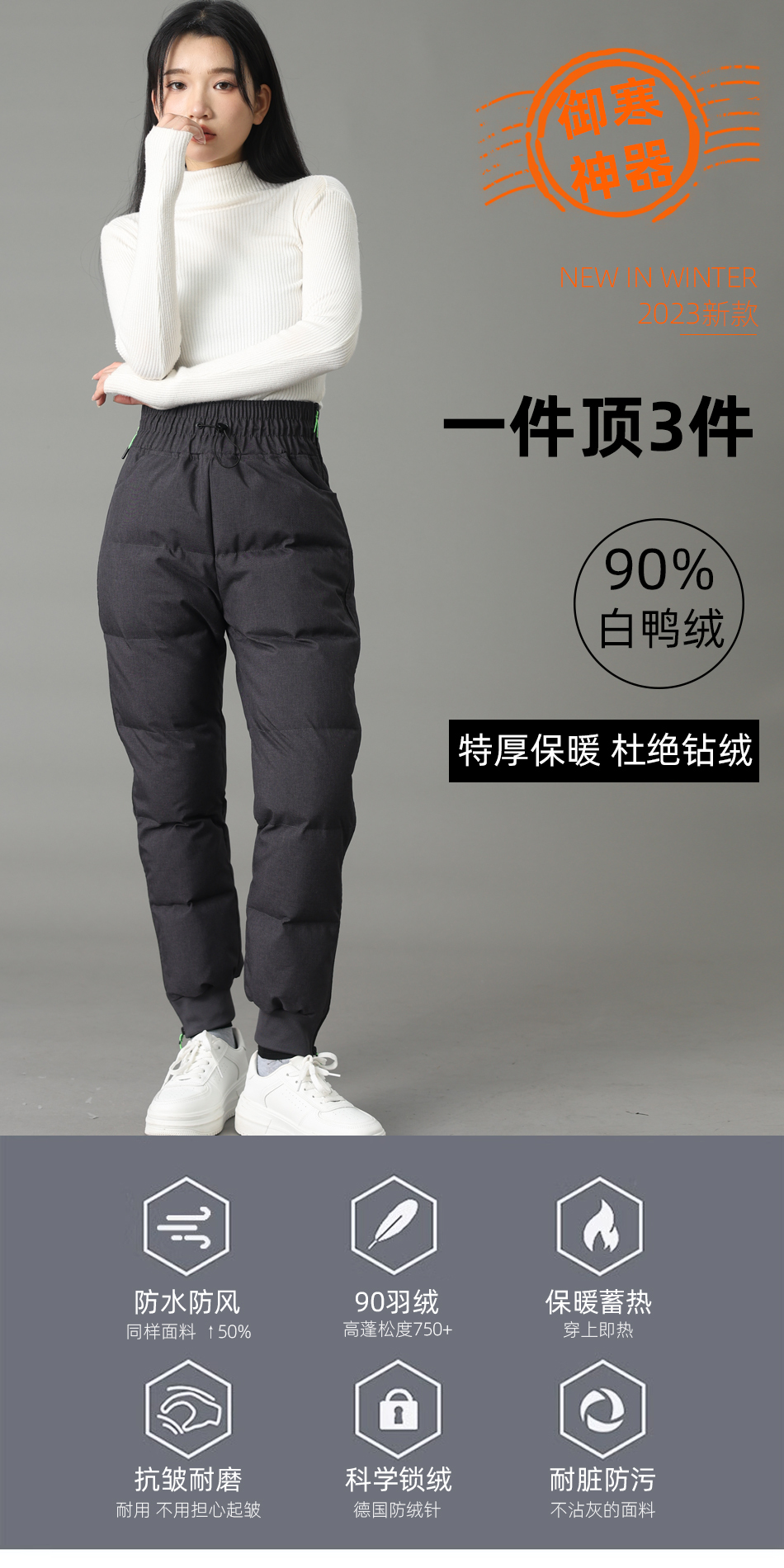 Down Pants for Men and Women, High-Waisted Outdoor Cycling Pants with Side Zipper for Quick Removal, Winter Outdoor Knee-Protecting Pants for Skiing