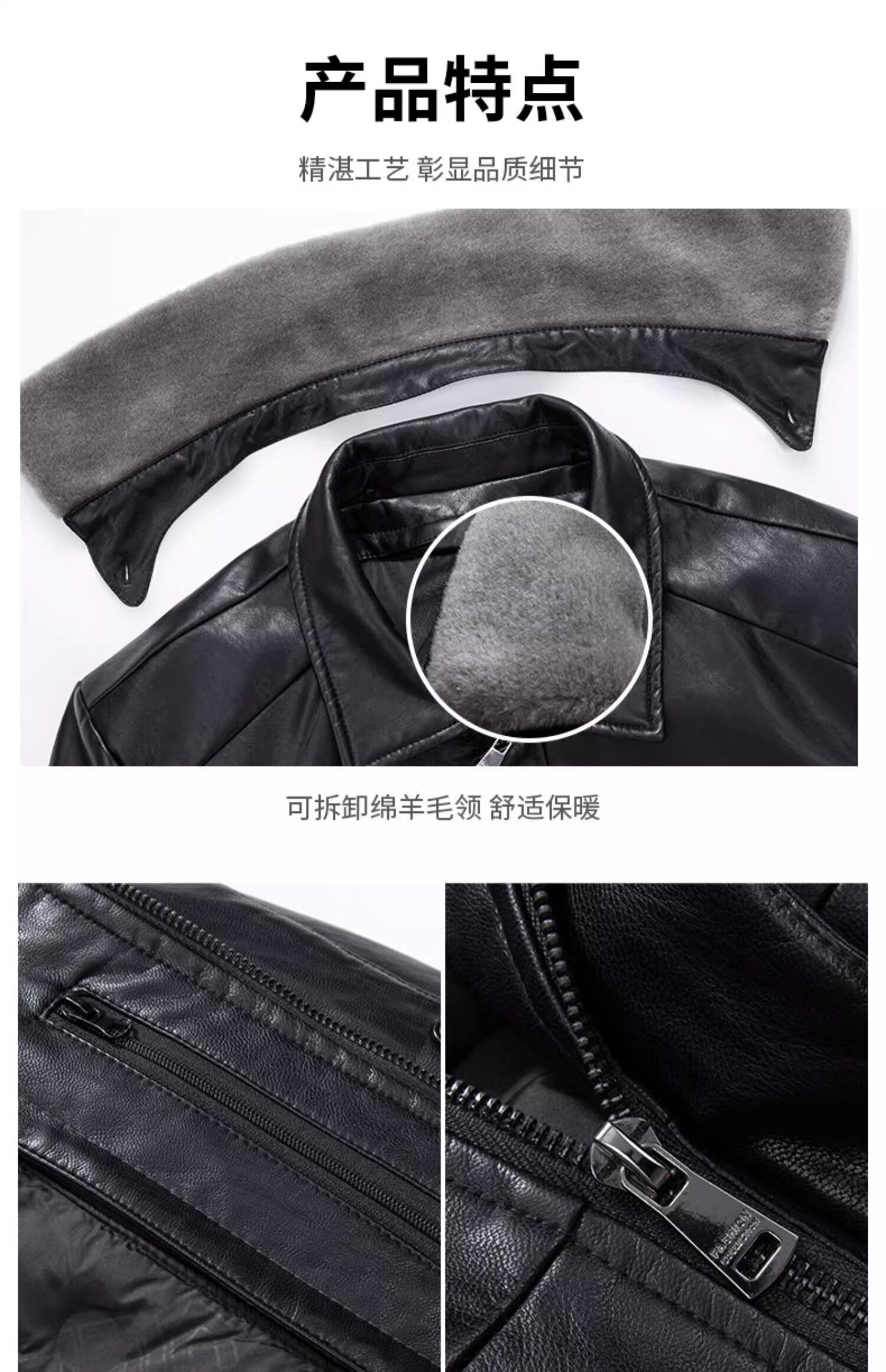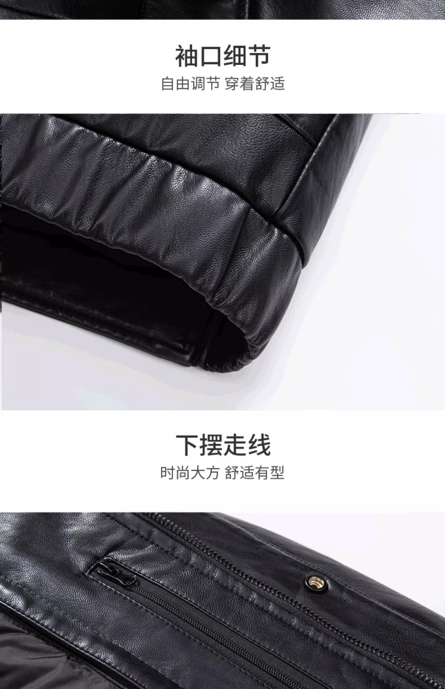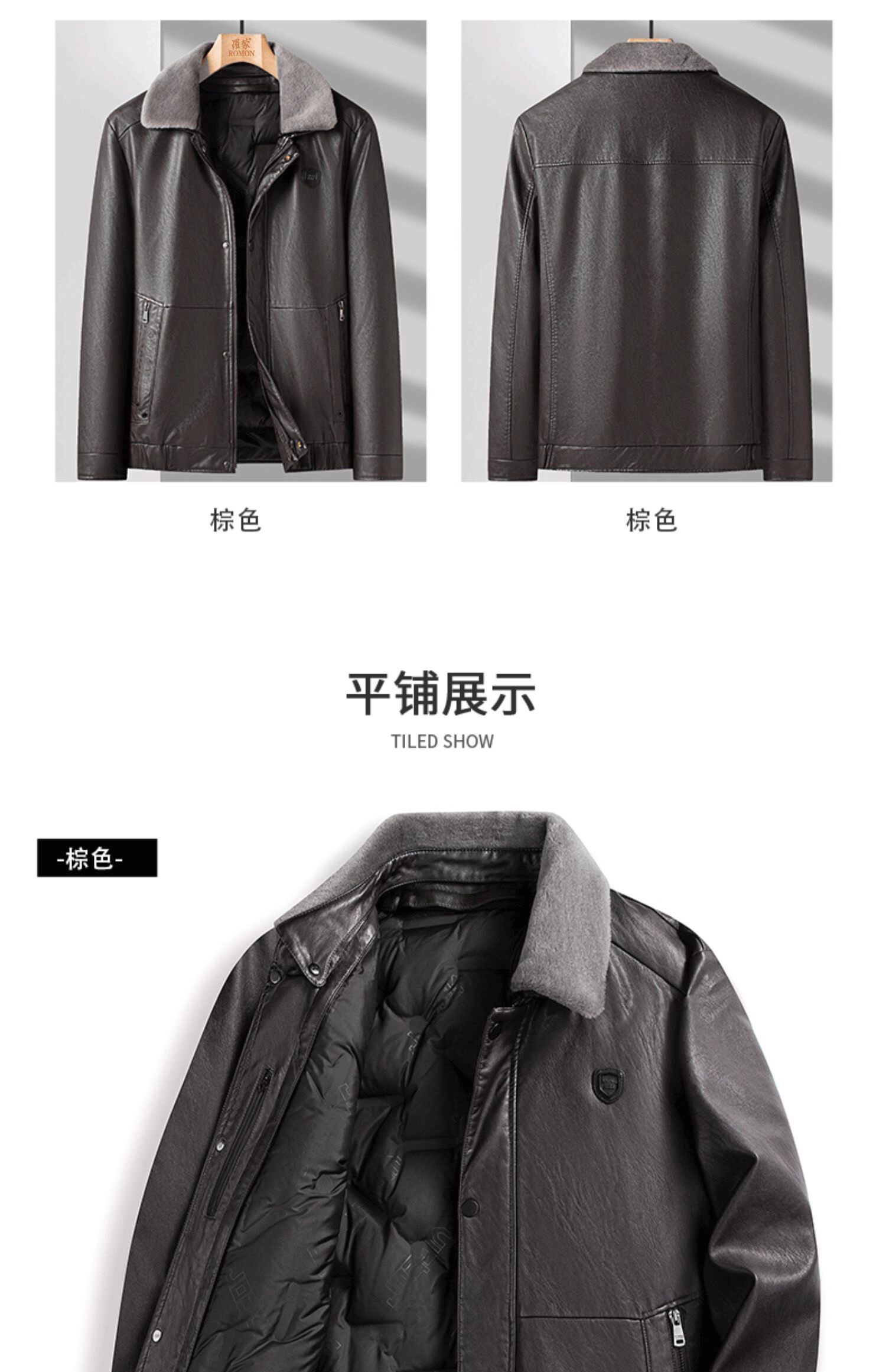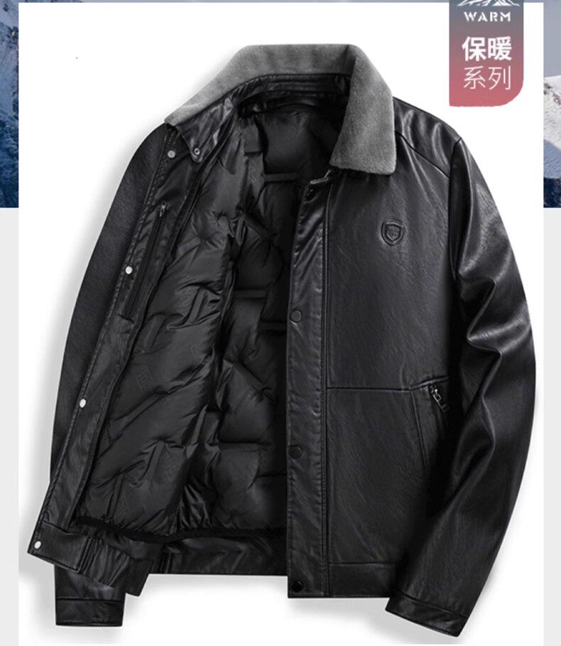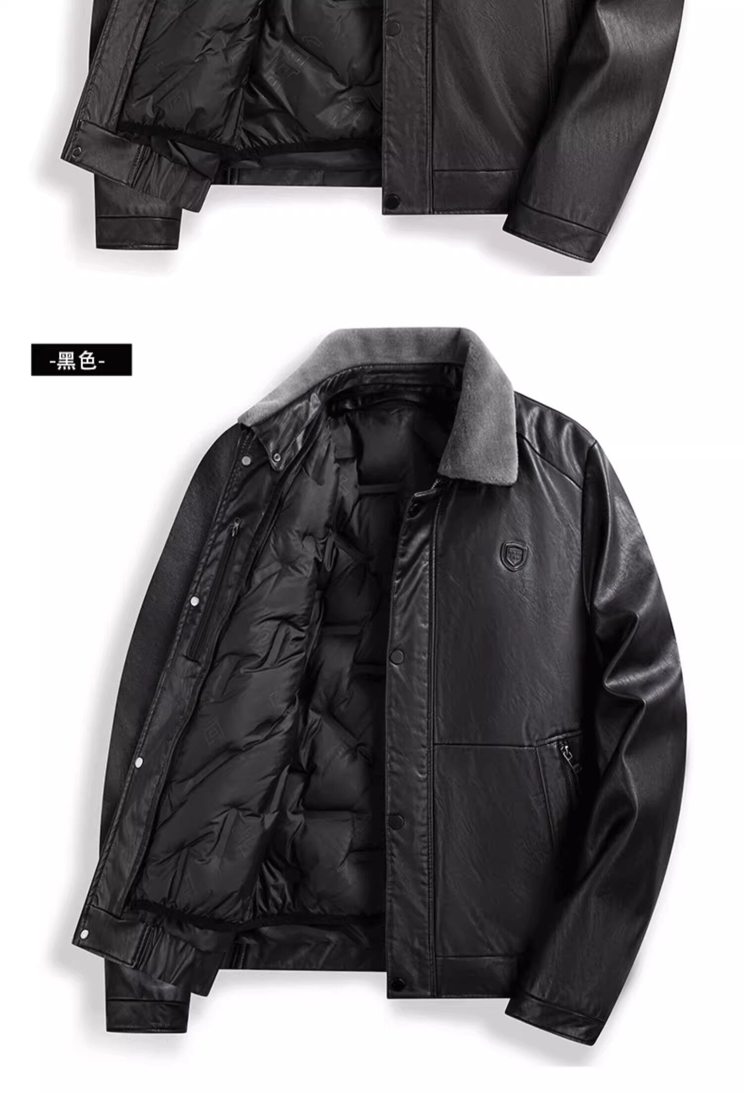 【Leather down Jacket】Romon Dad's Winter Leather Coat for Men, Middle-Aged and Elderly Men's Duck down Leather Jacket, Thick