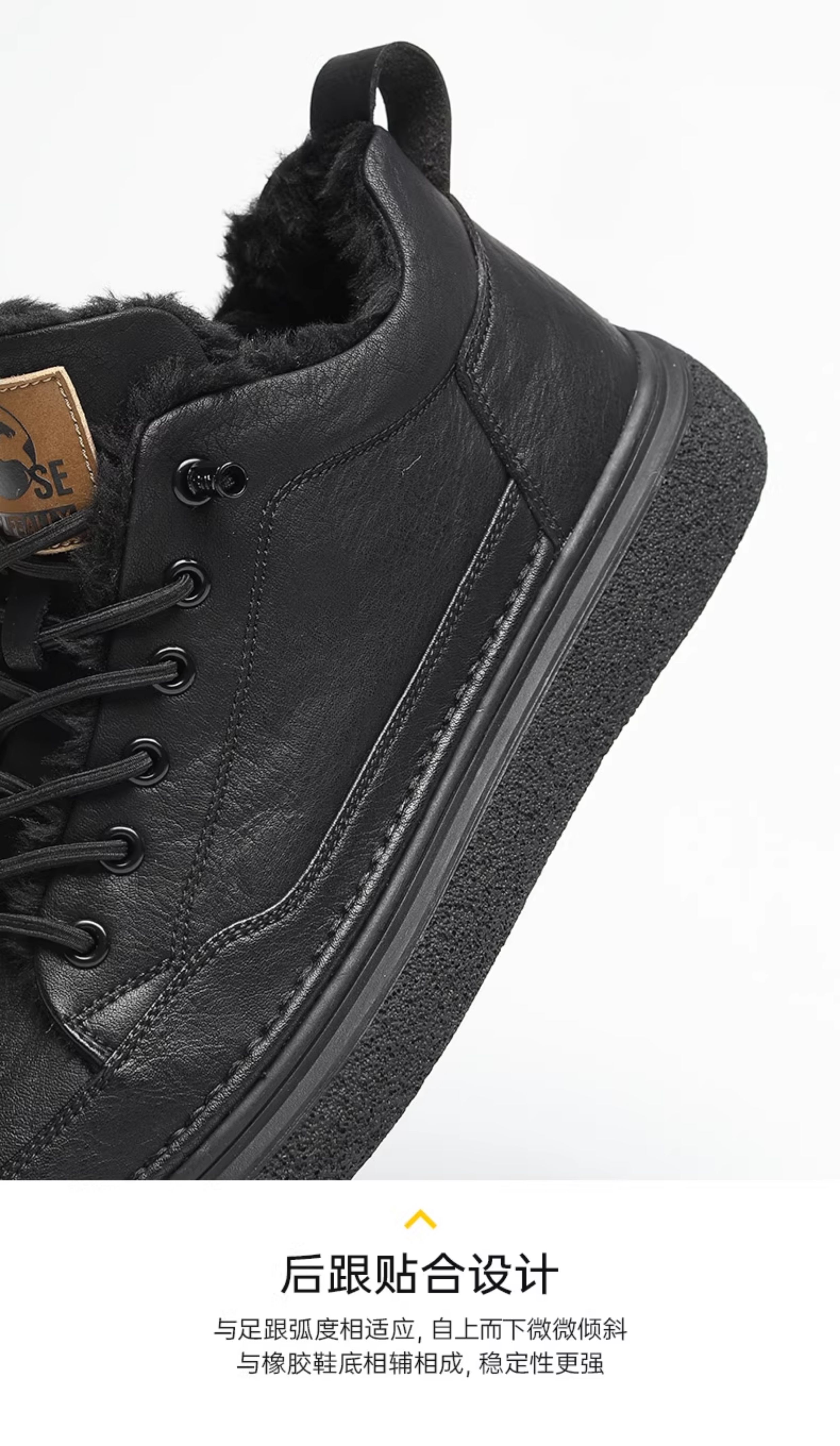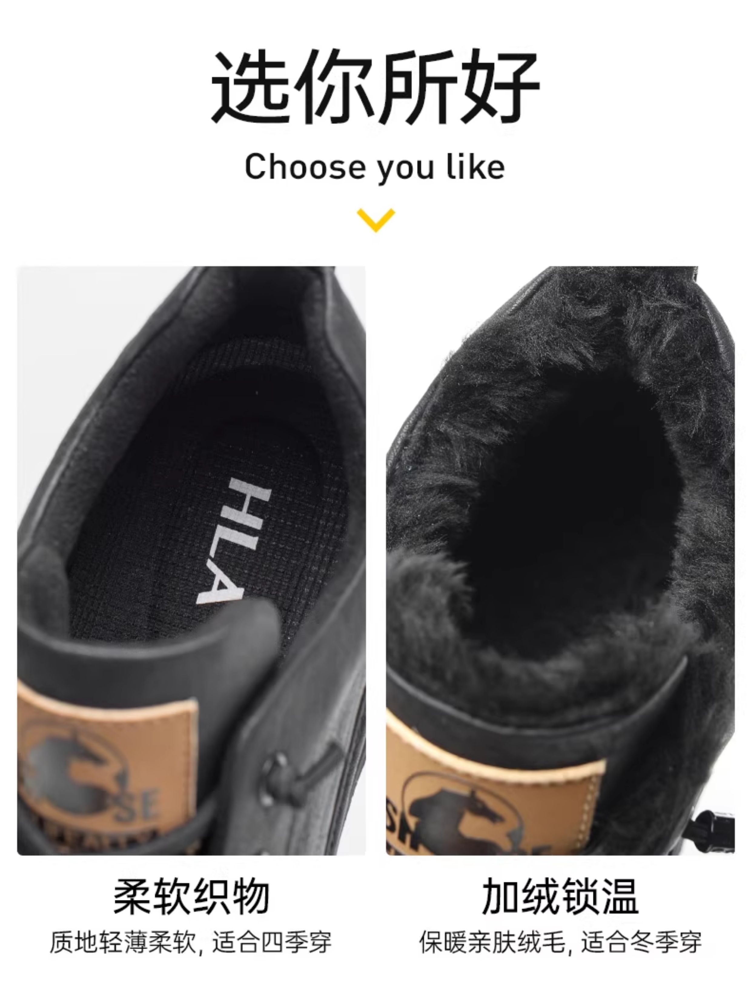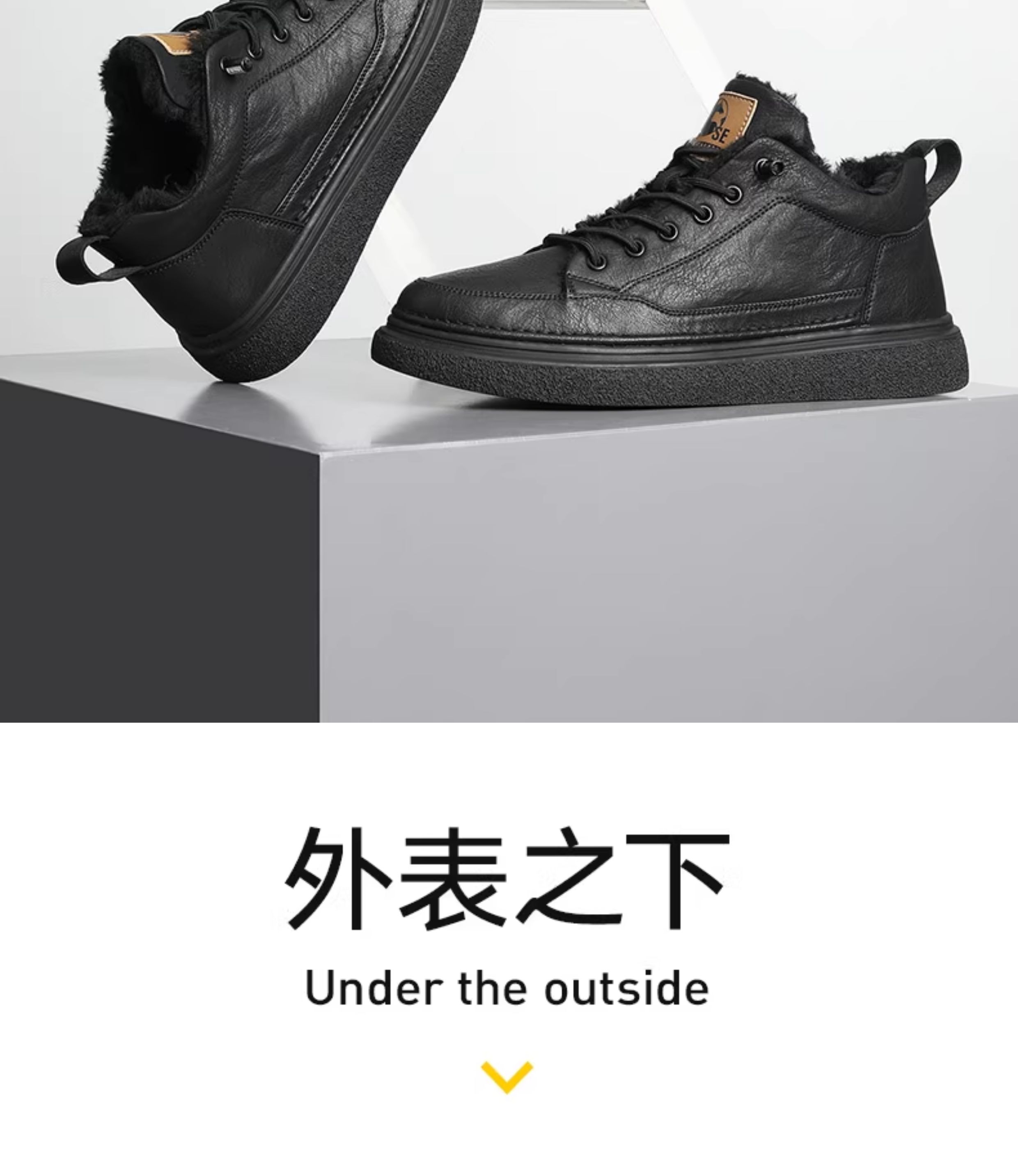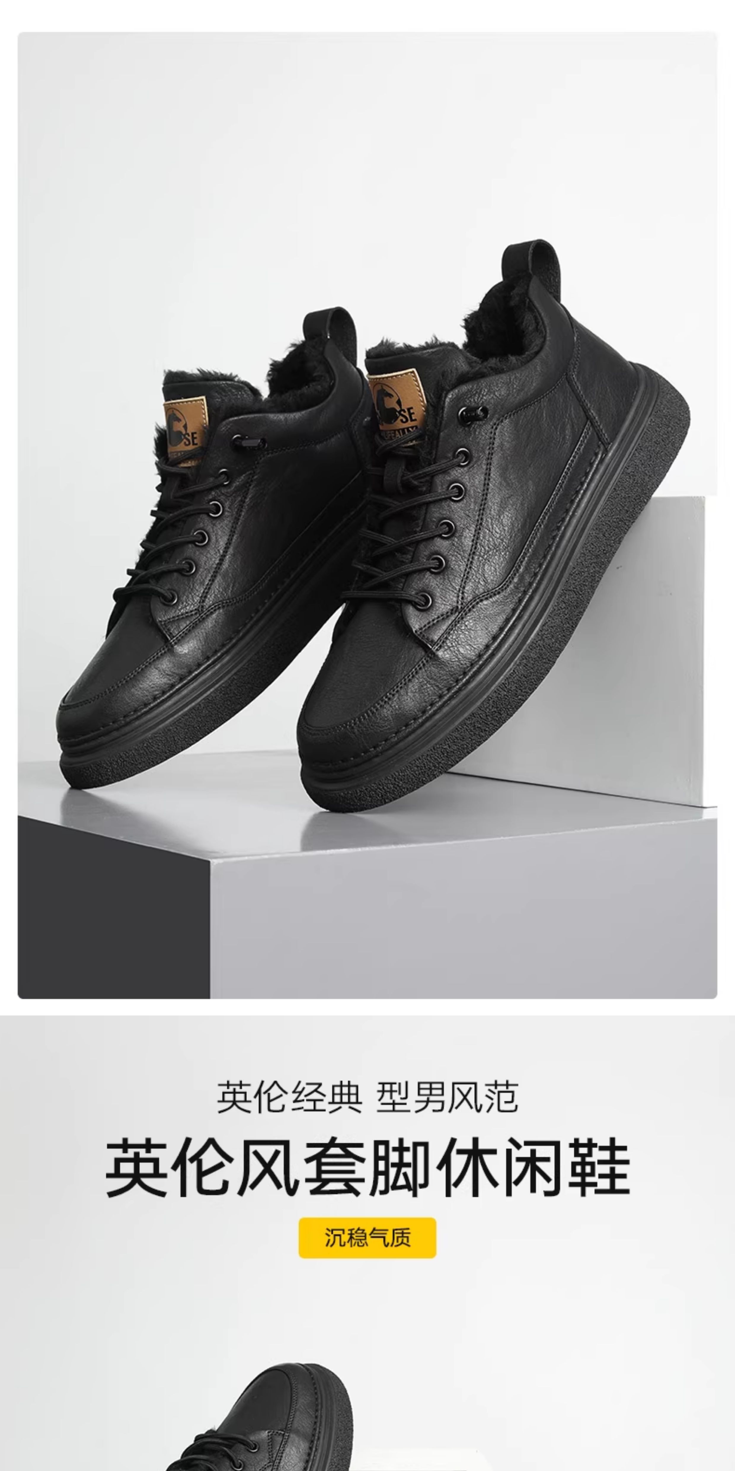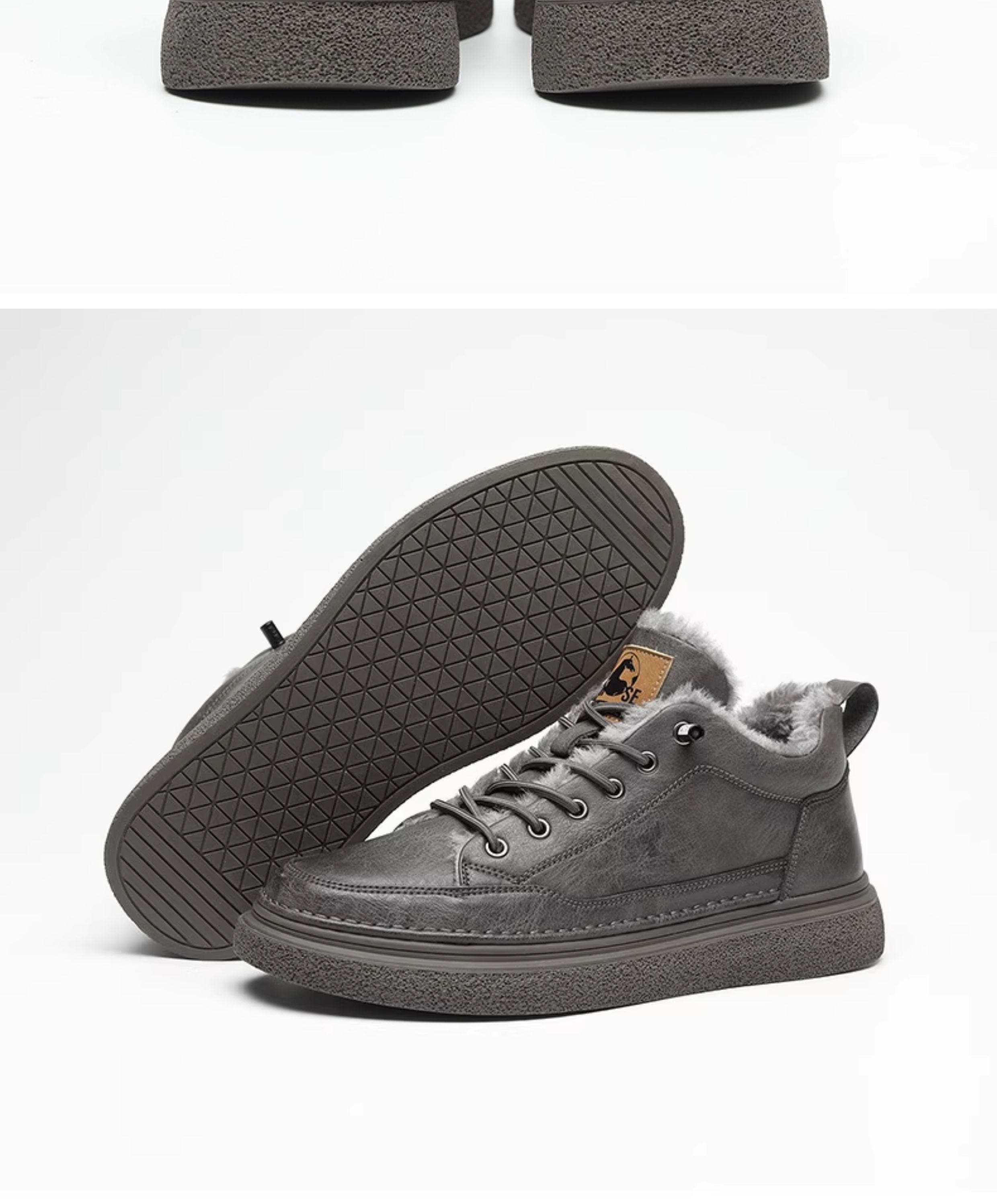 Heilan Home Men's Shoes Winter High-Top Sneakers Men's Fleece-Lined Warm Cotton Shoes Men's Mid-Top Casual Leather Shoes