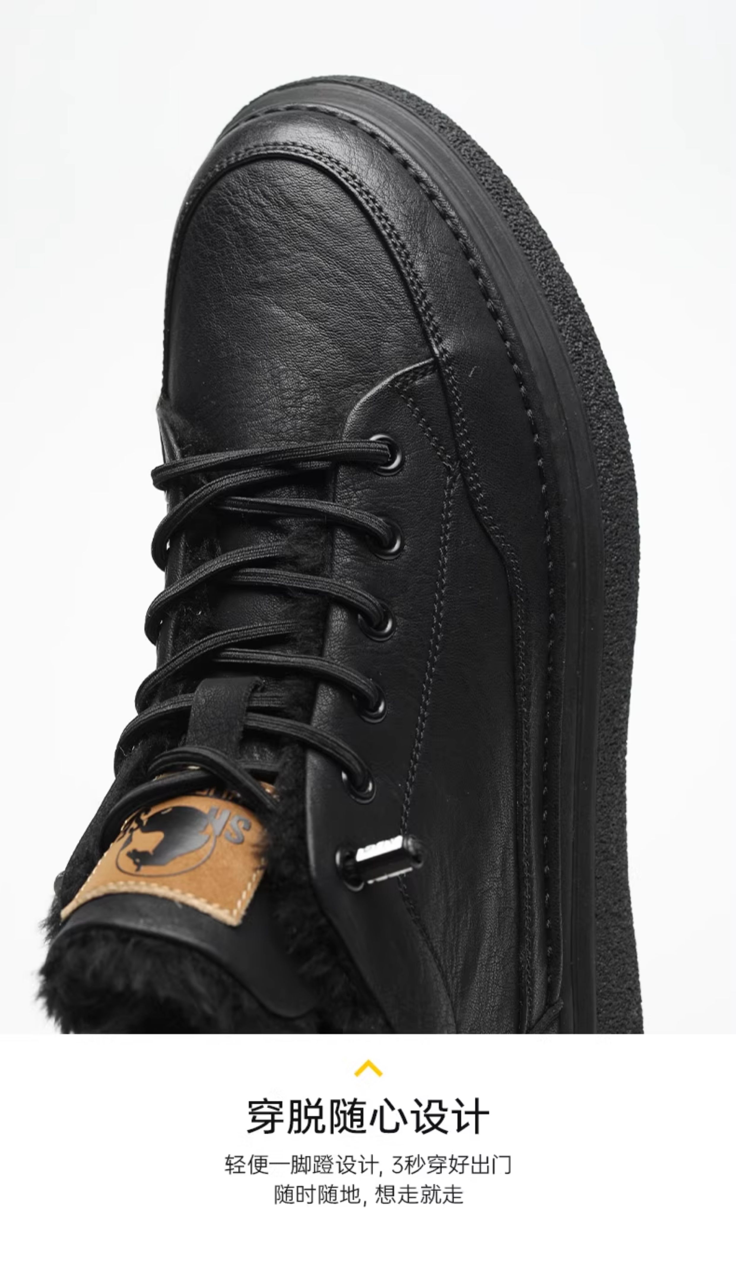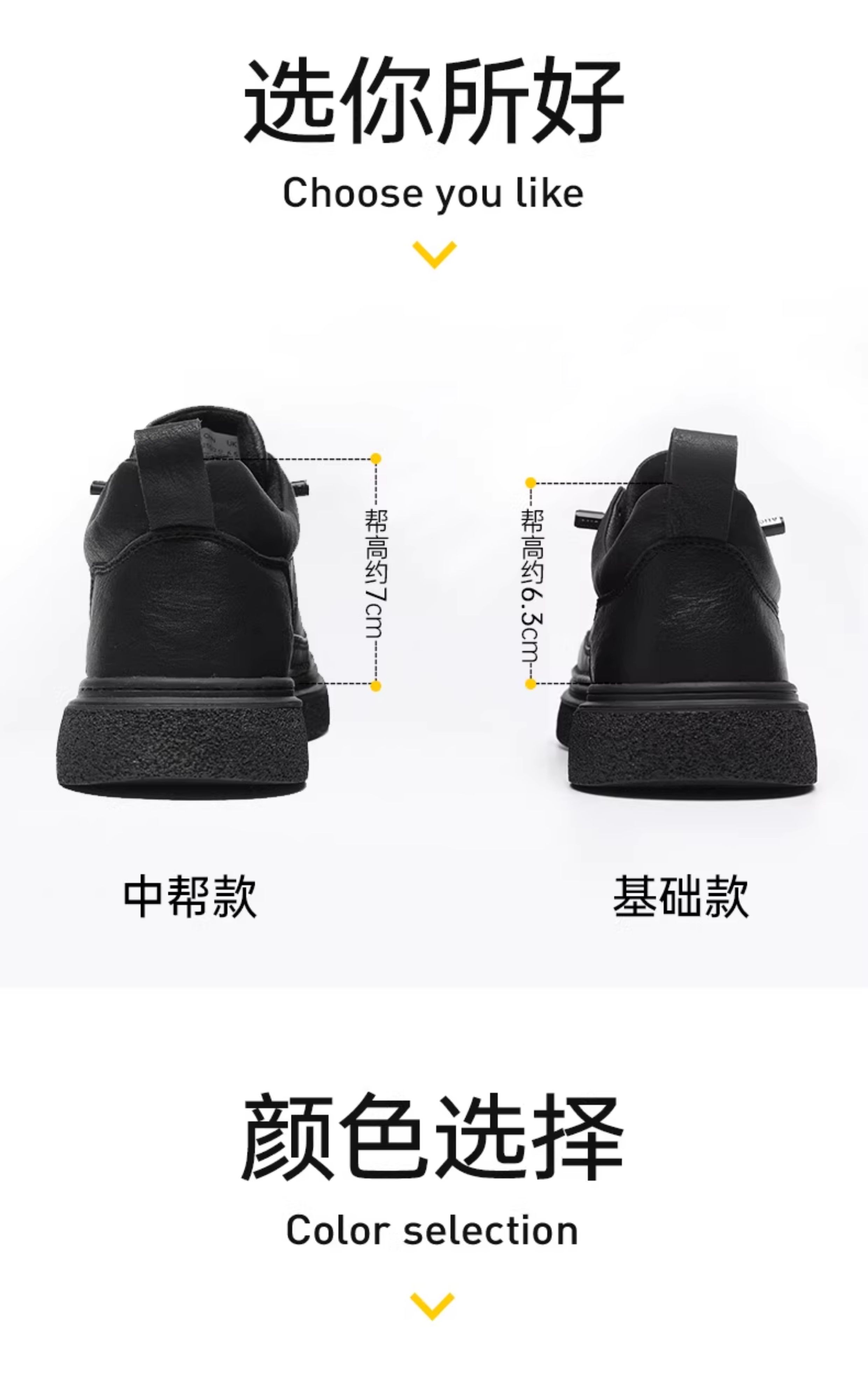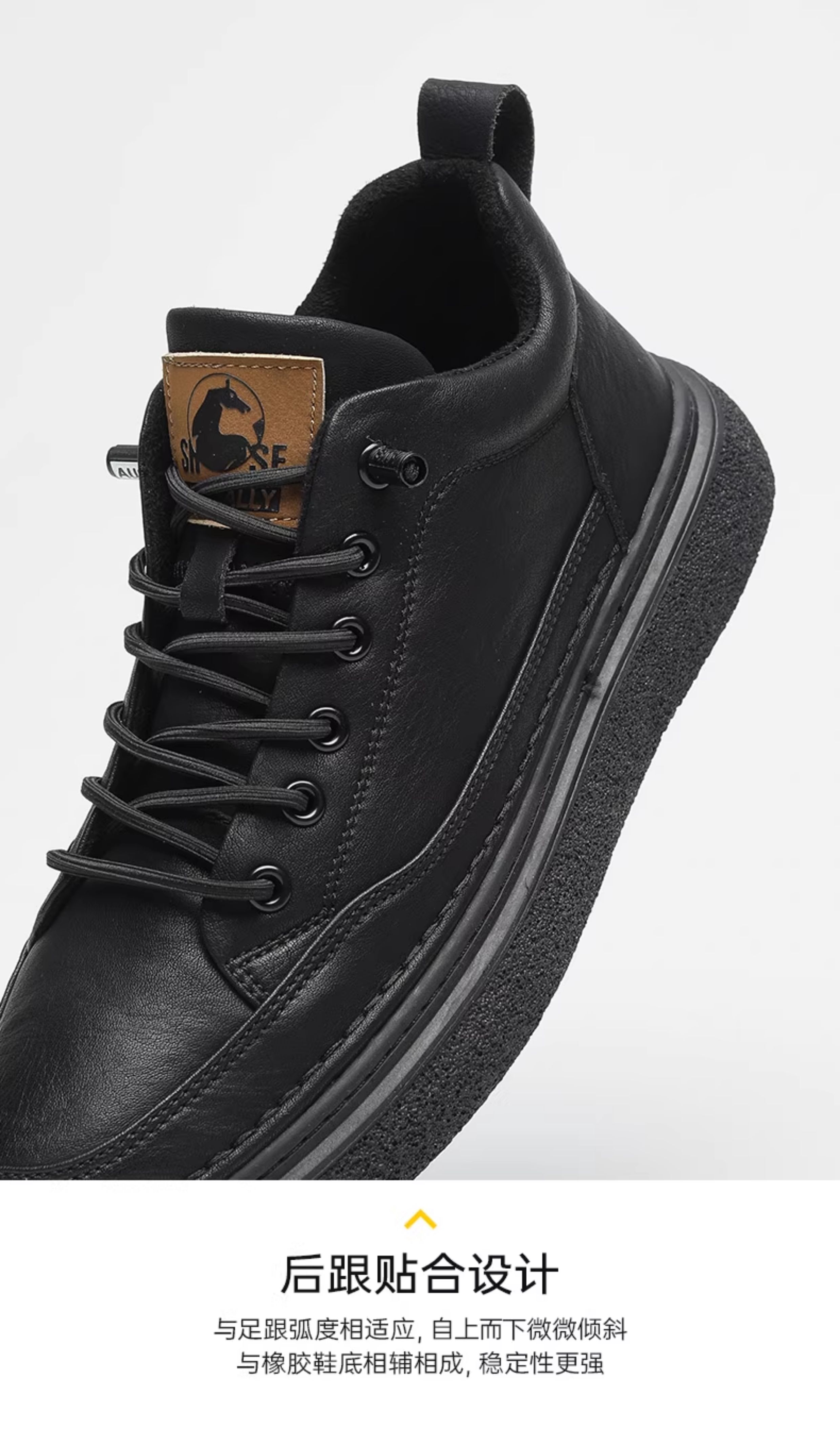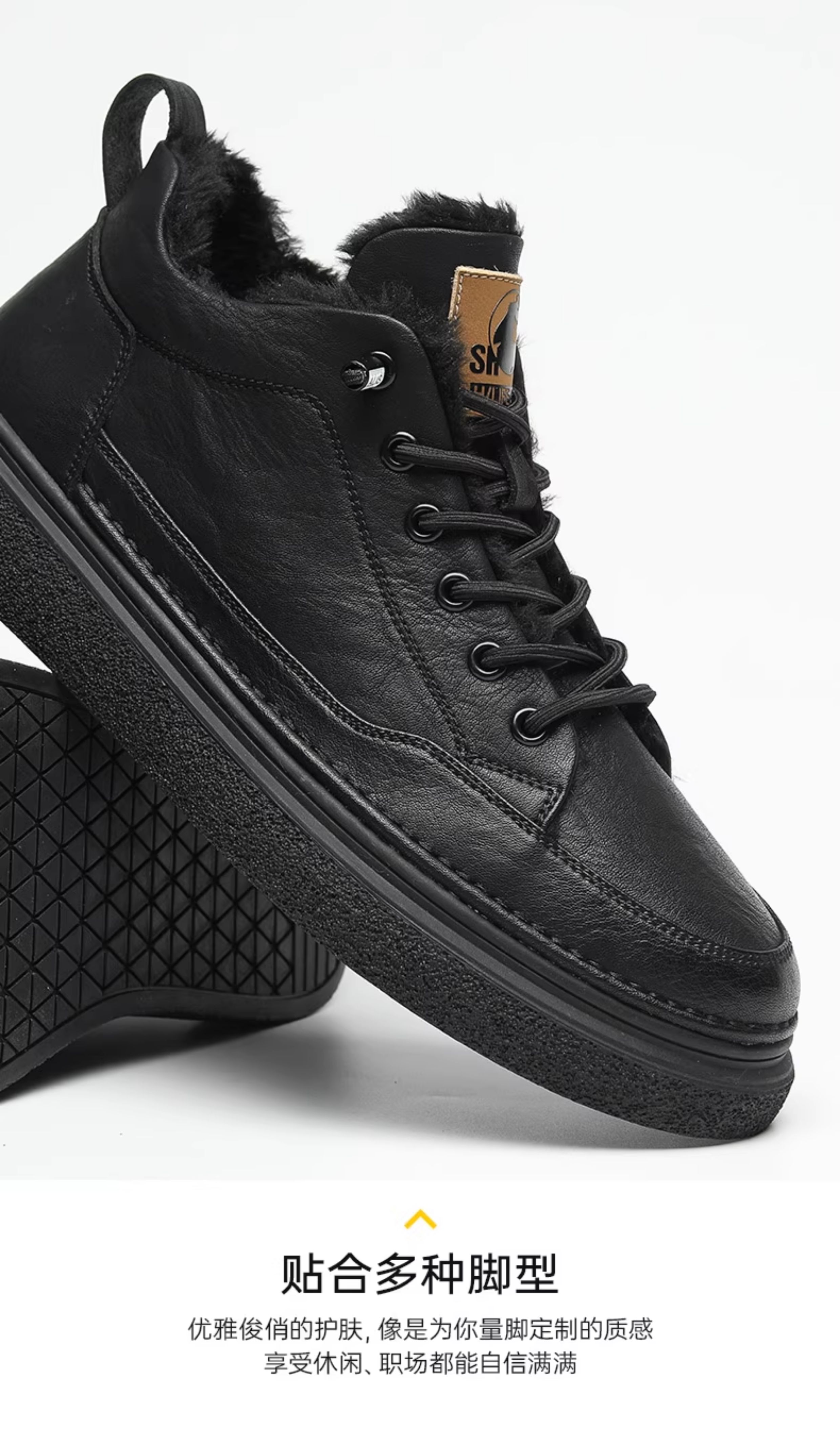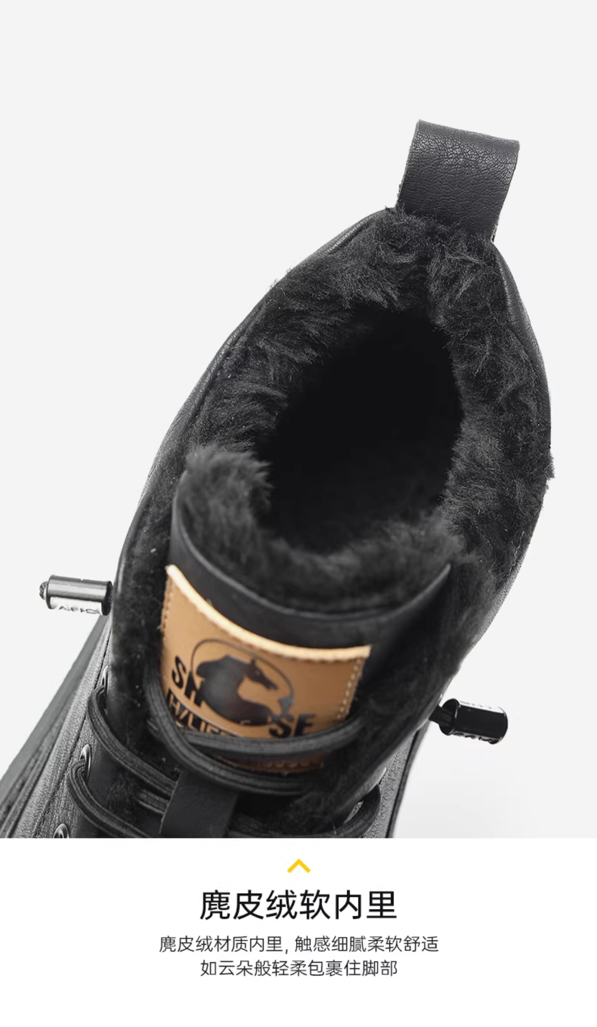 Heilan Home Men's Shoes Winter High-Top Sneakers Men's Fleece-Lined Warm Cotton Shoes Men's Mid-Top Casual Leather Shoes