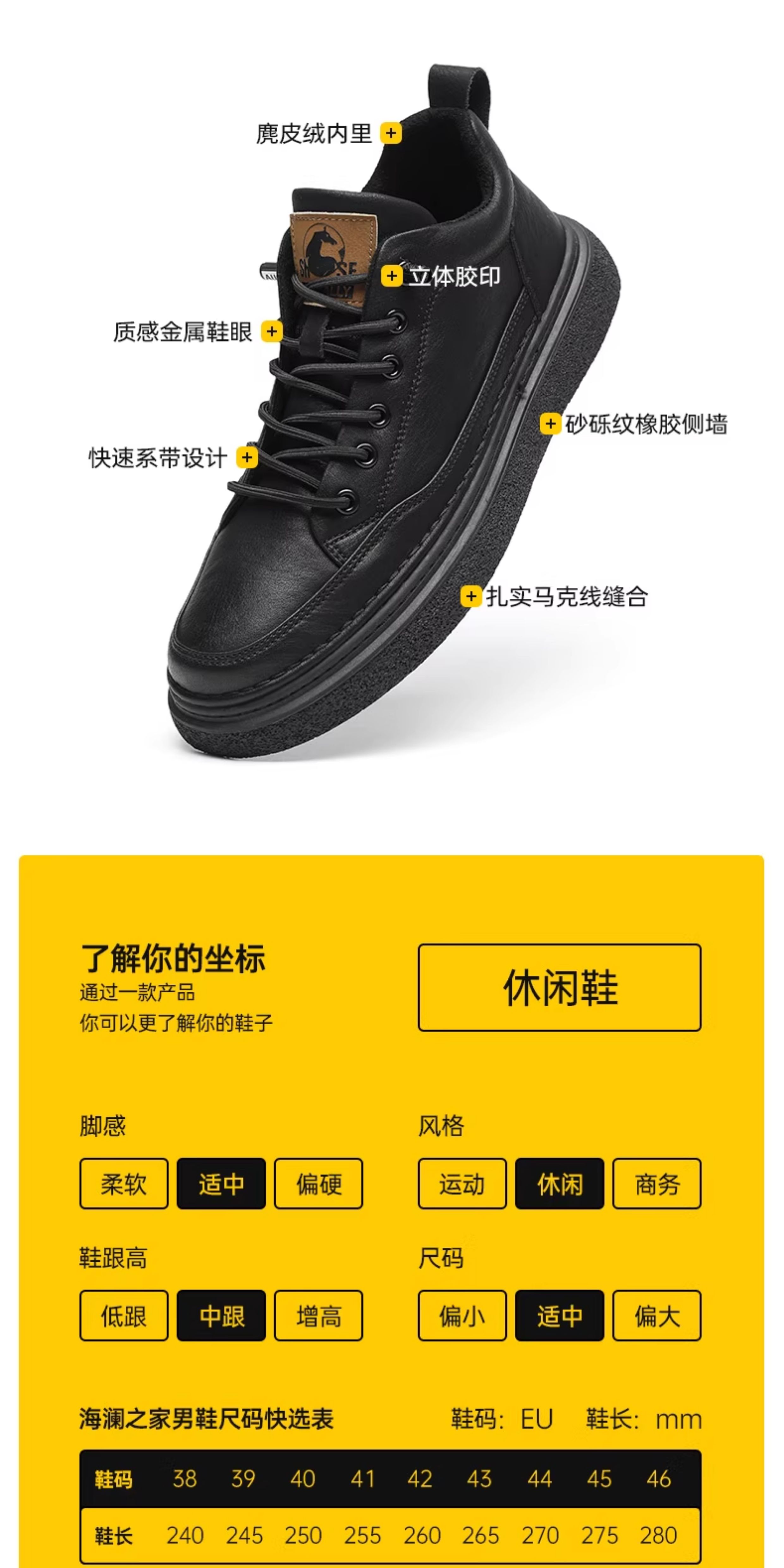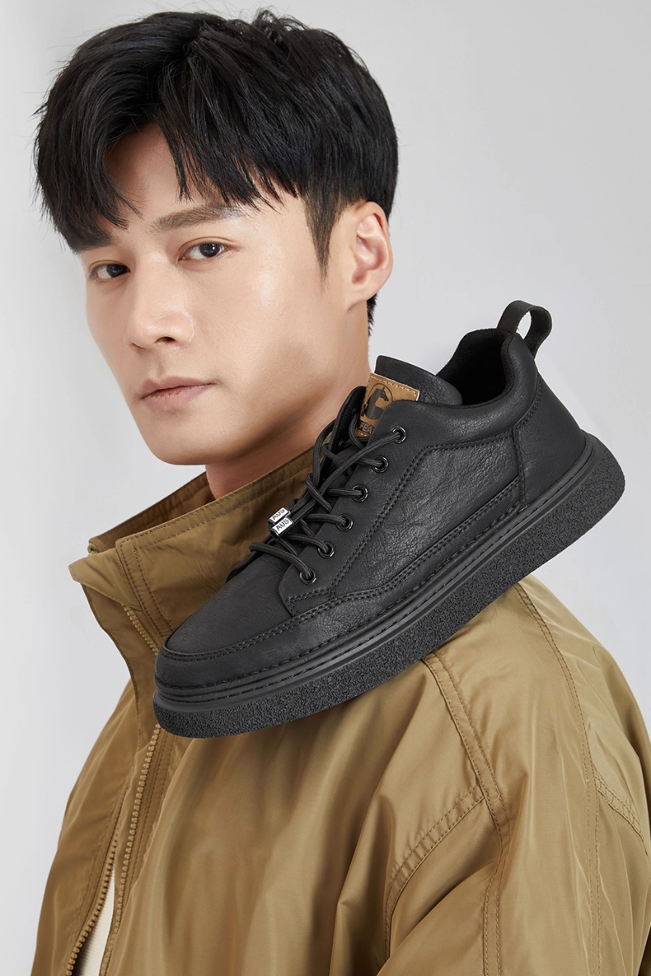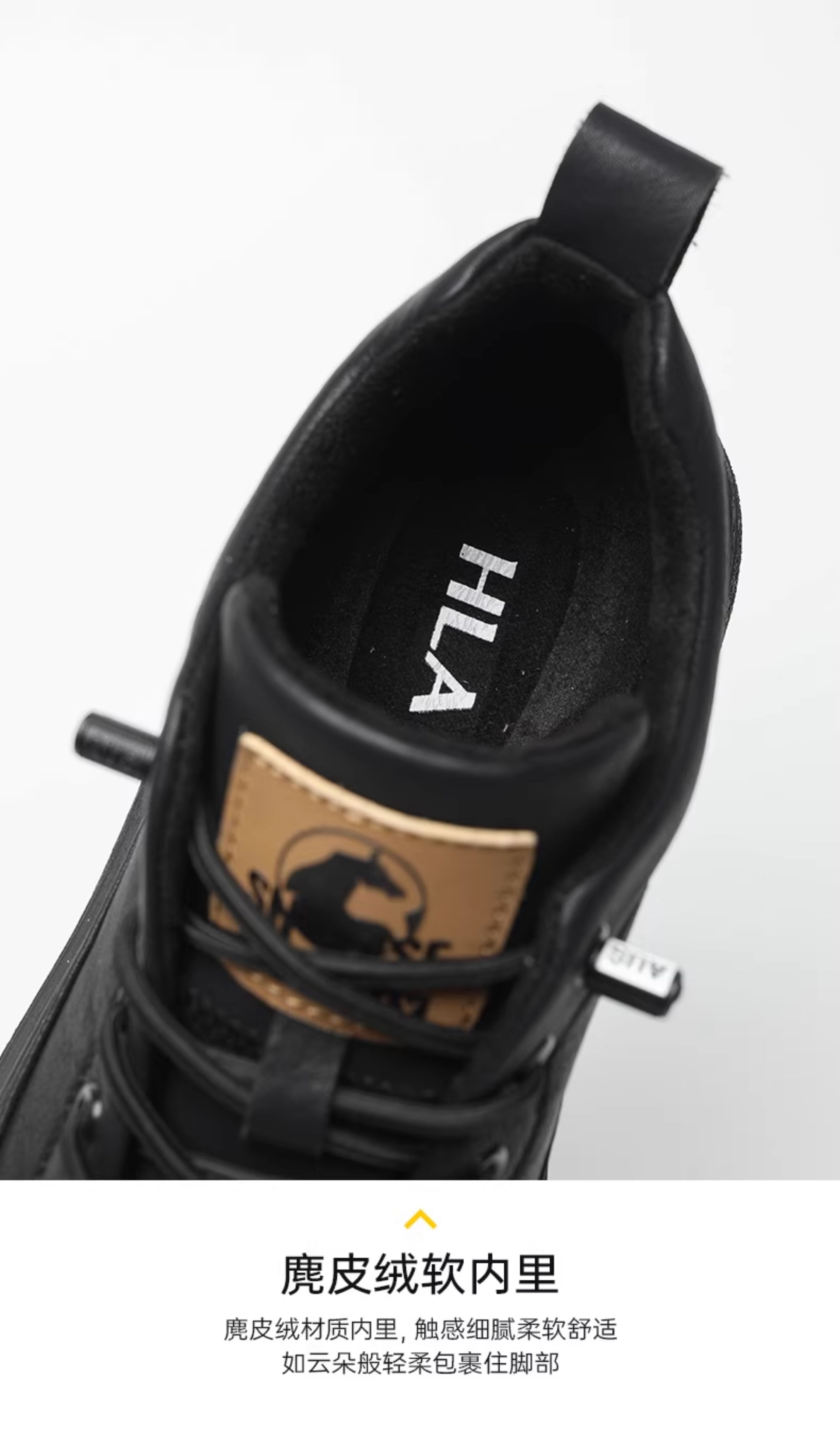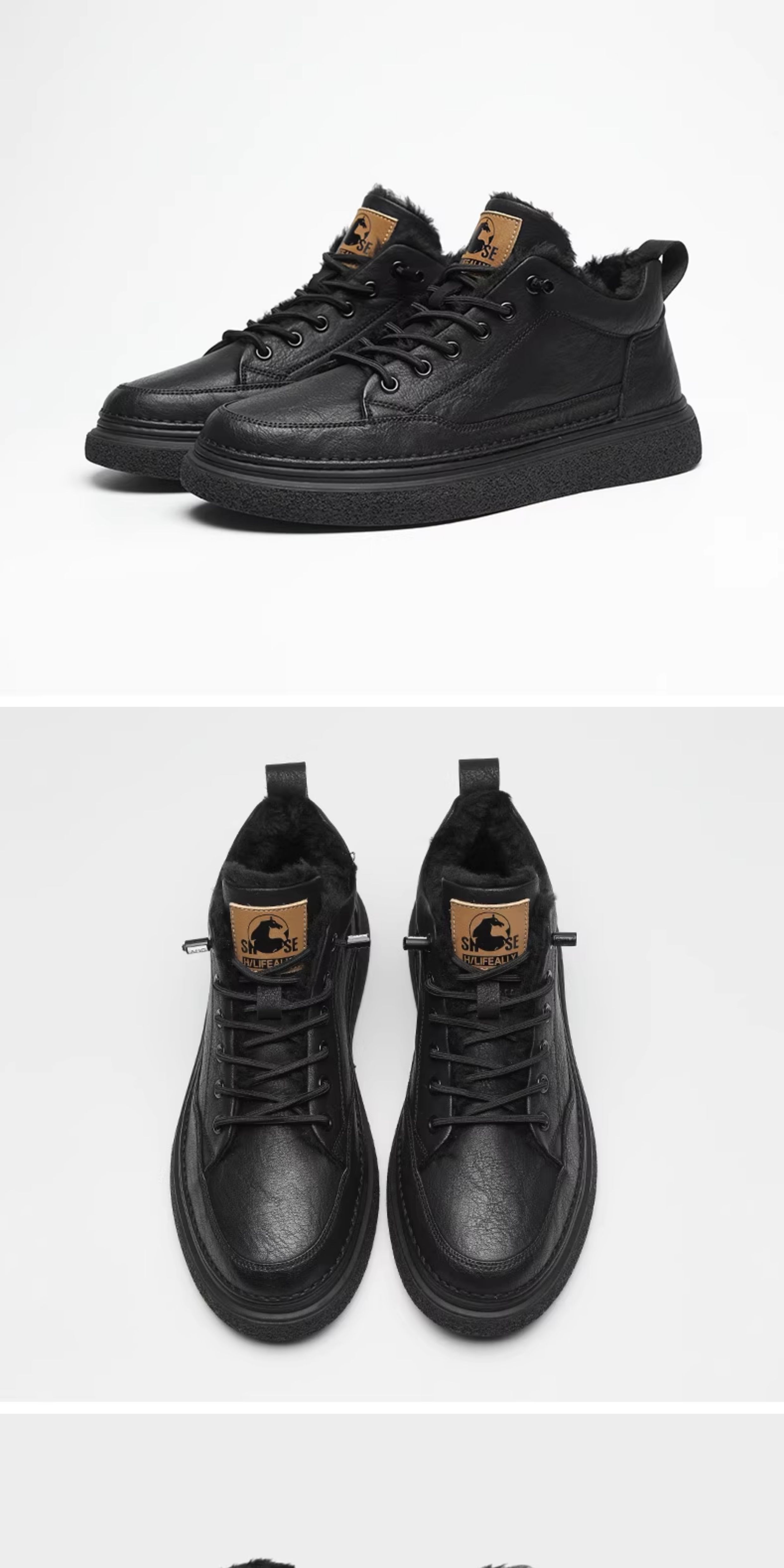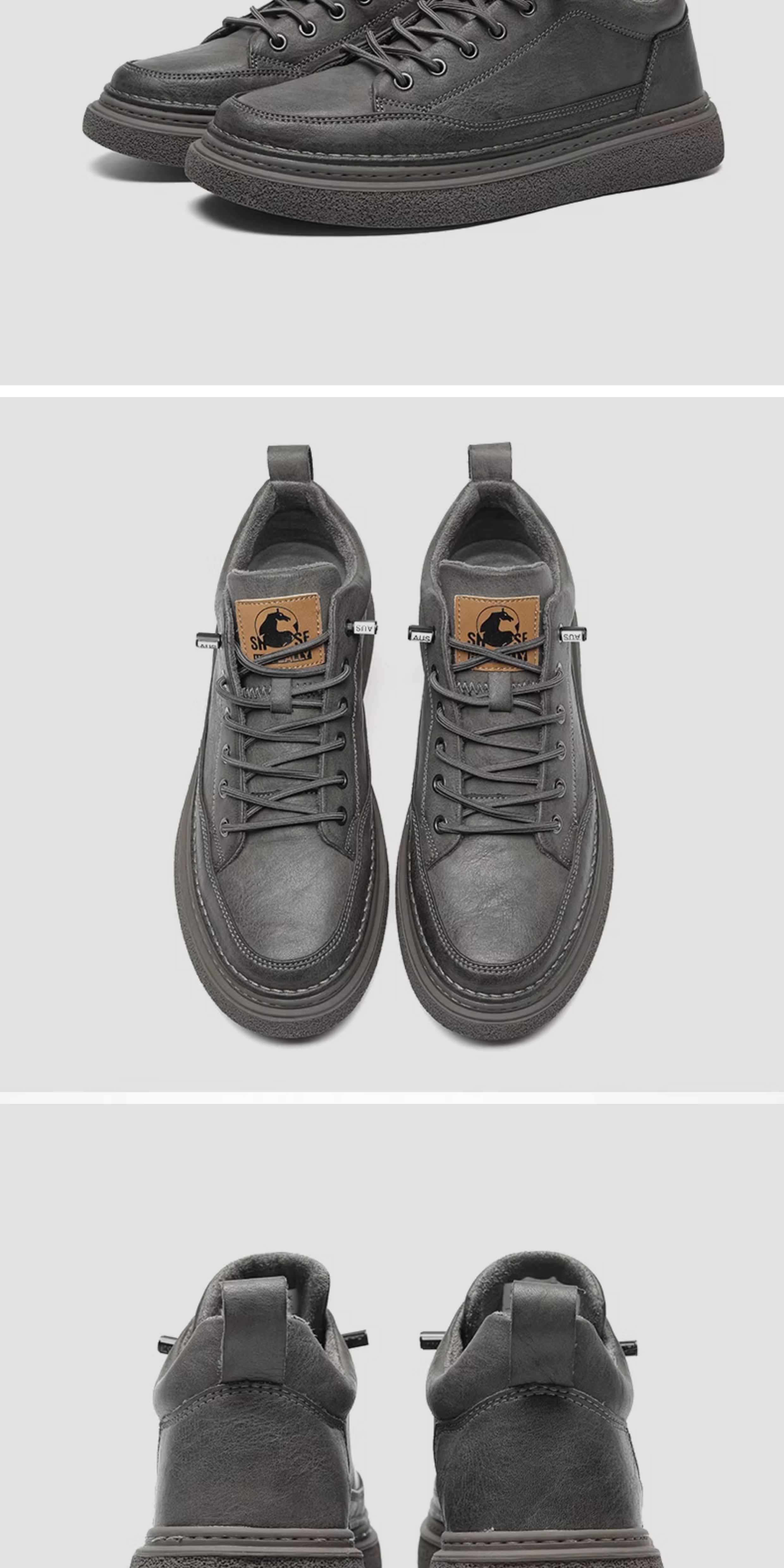 Heilan Home Men's Shoes Winter High-Top Sneakers Men's Fleece-Lined Warm Cotton Shoes Men's Mid-Top Casual Leather Shoes