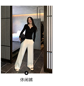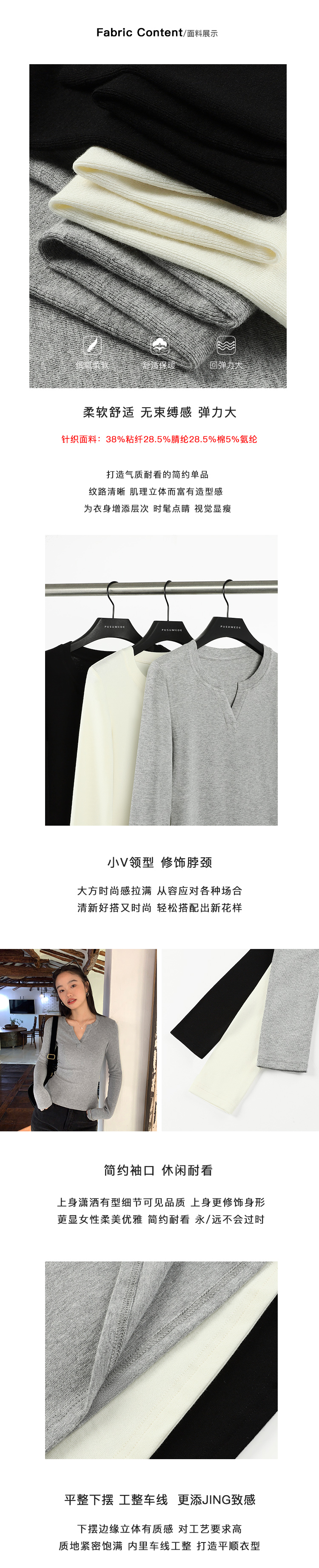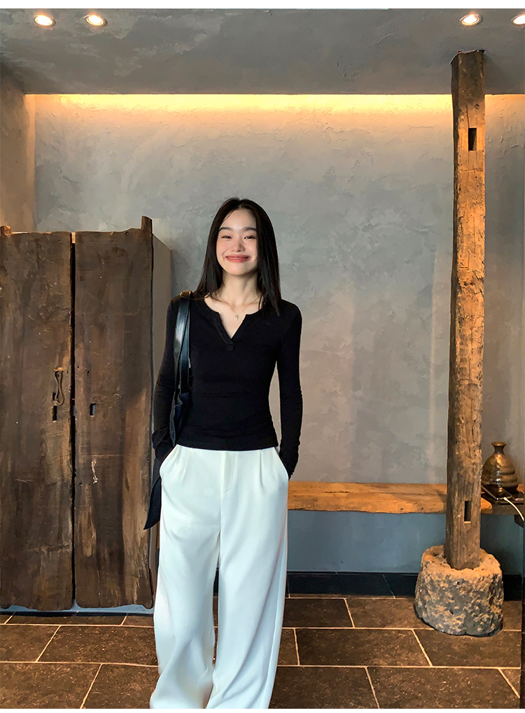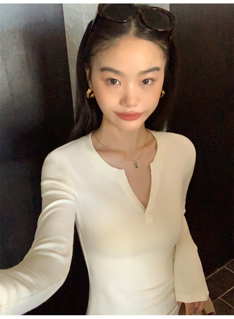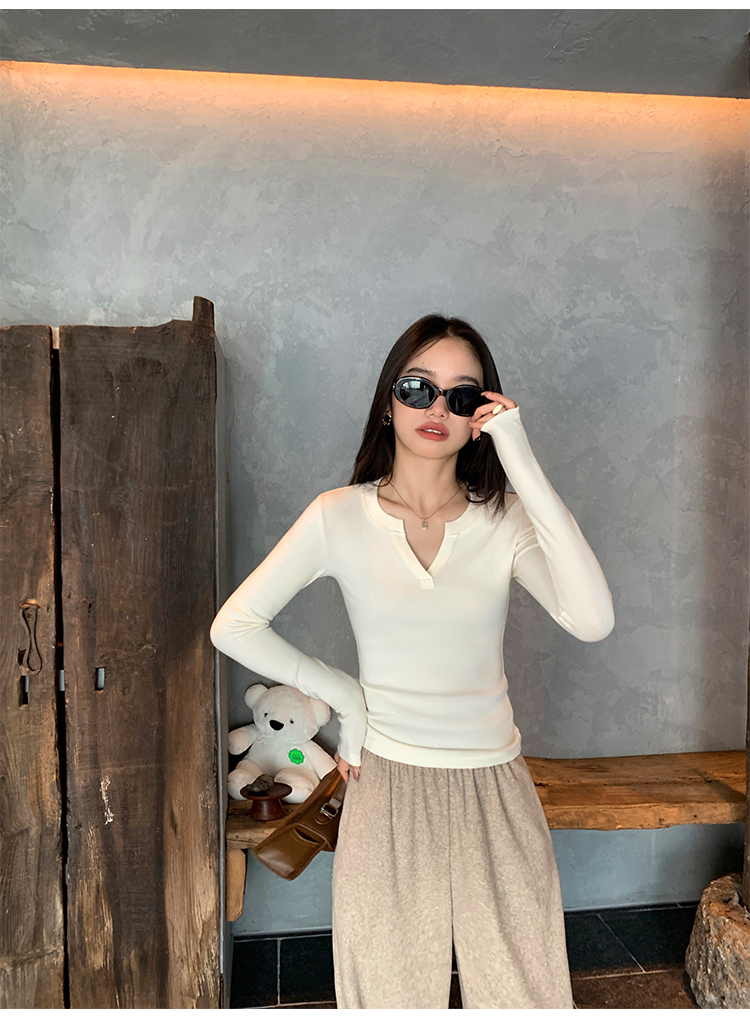 Pusumede Weekend Date Black V-Neck Long Sleeve T-Shirt Women's Inner Layer Knitted Slim Fit Top