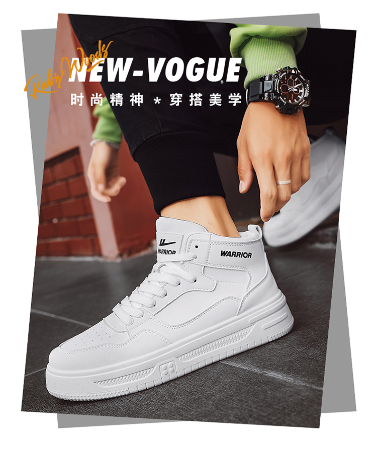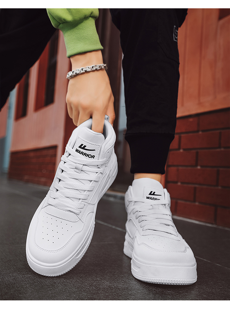 2025 Authentic Warrior Autumn Men's Sneakers Trendy High-Top Student White Shoes New Korean Style White Casual Shoes