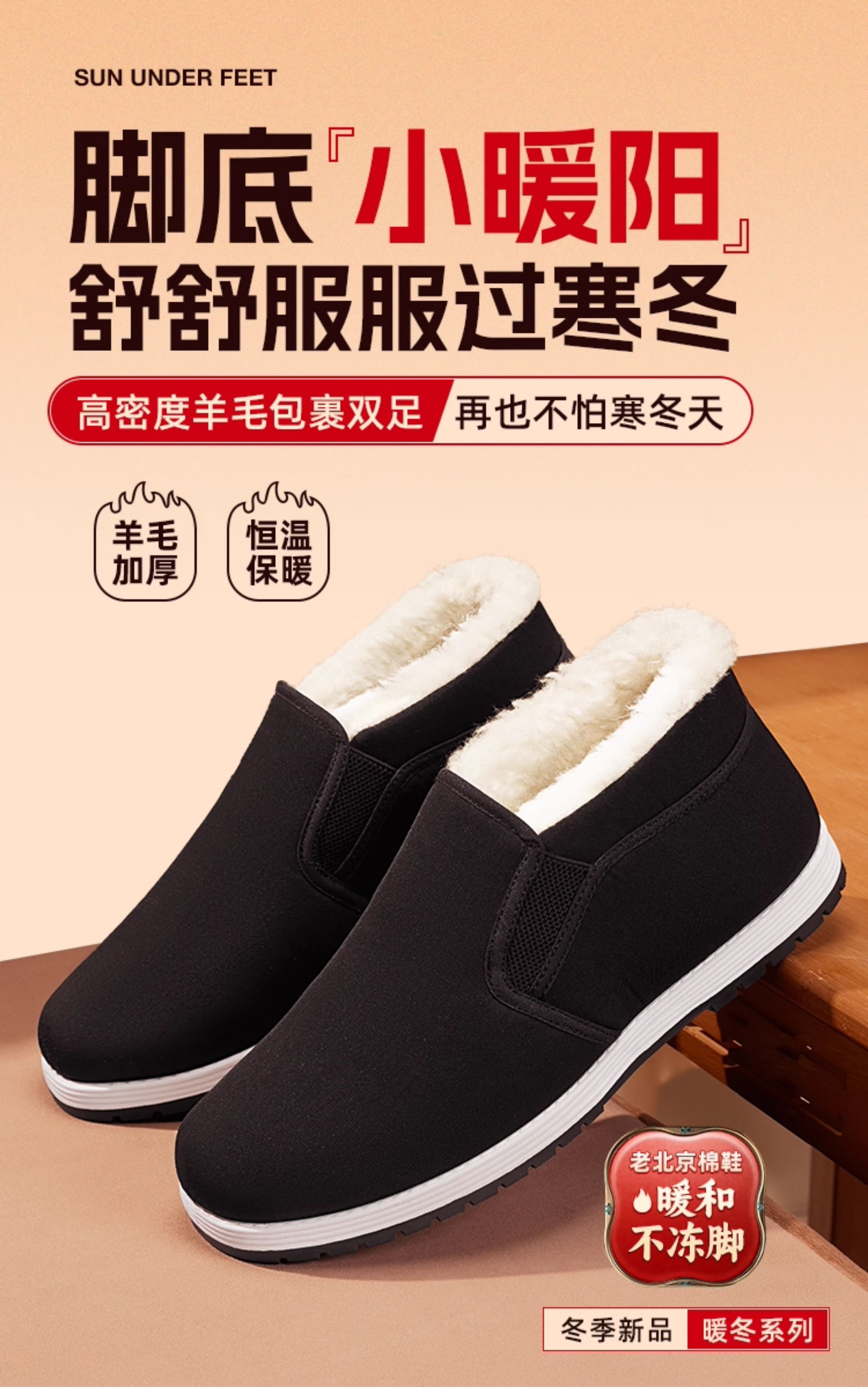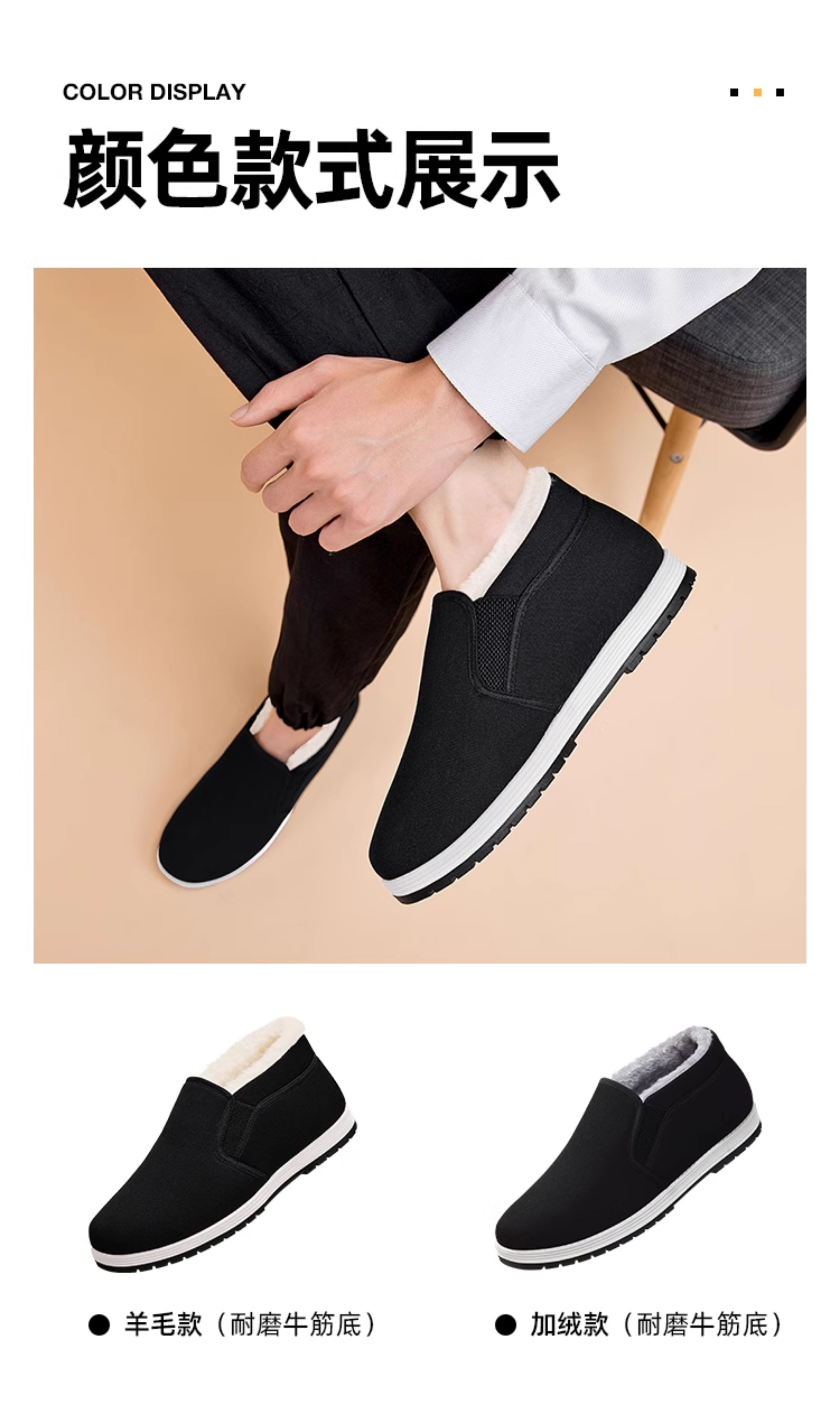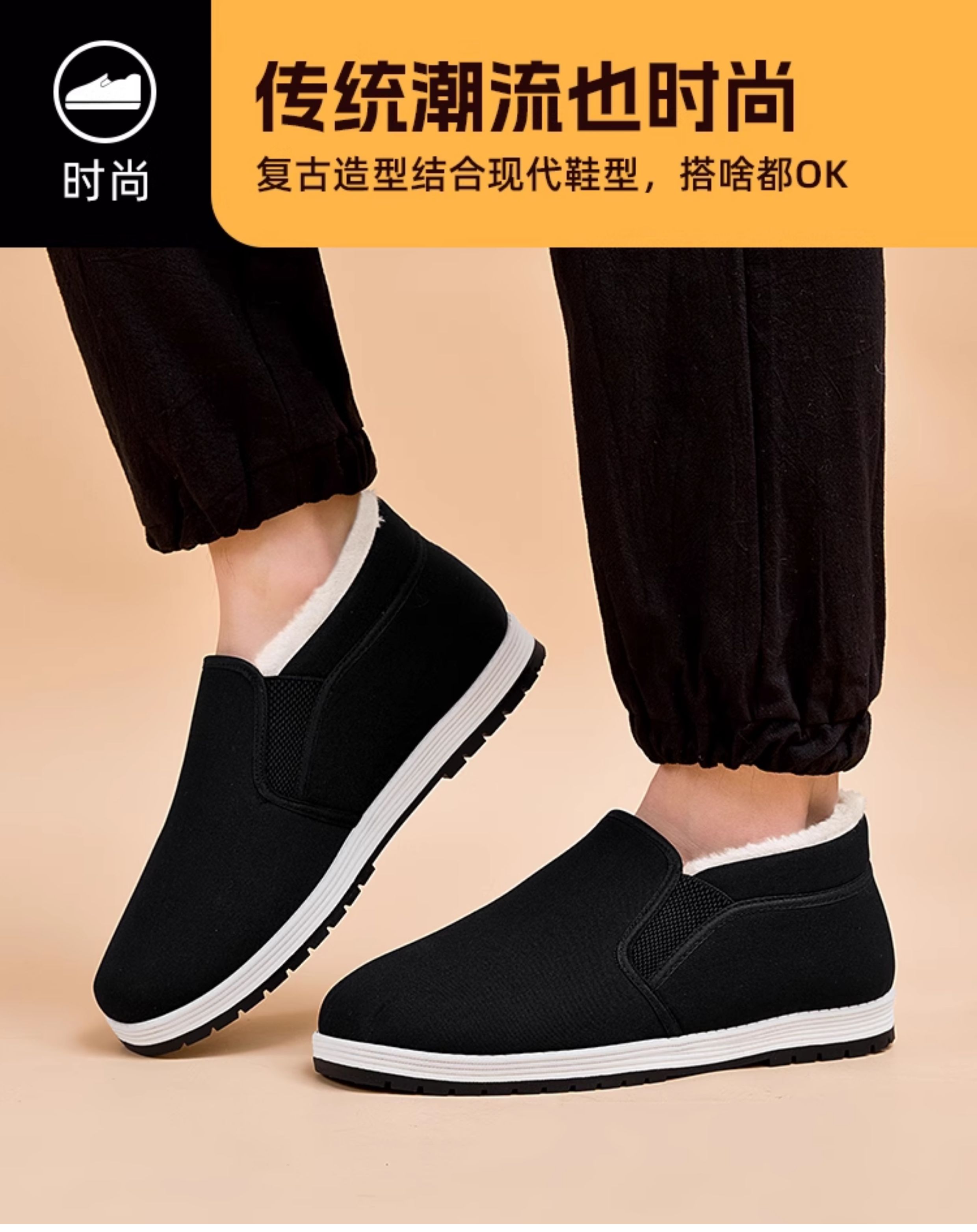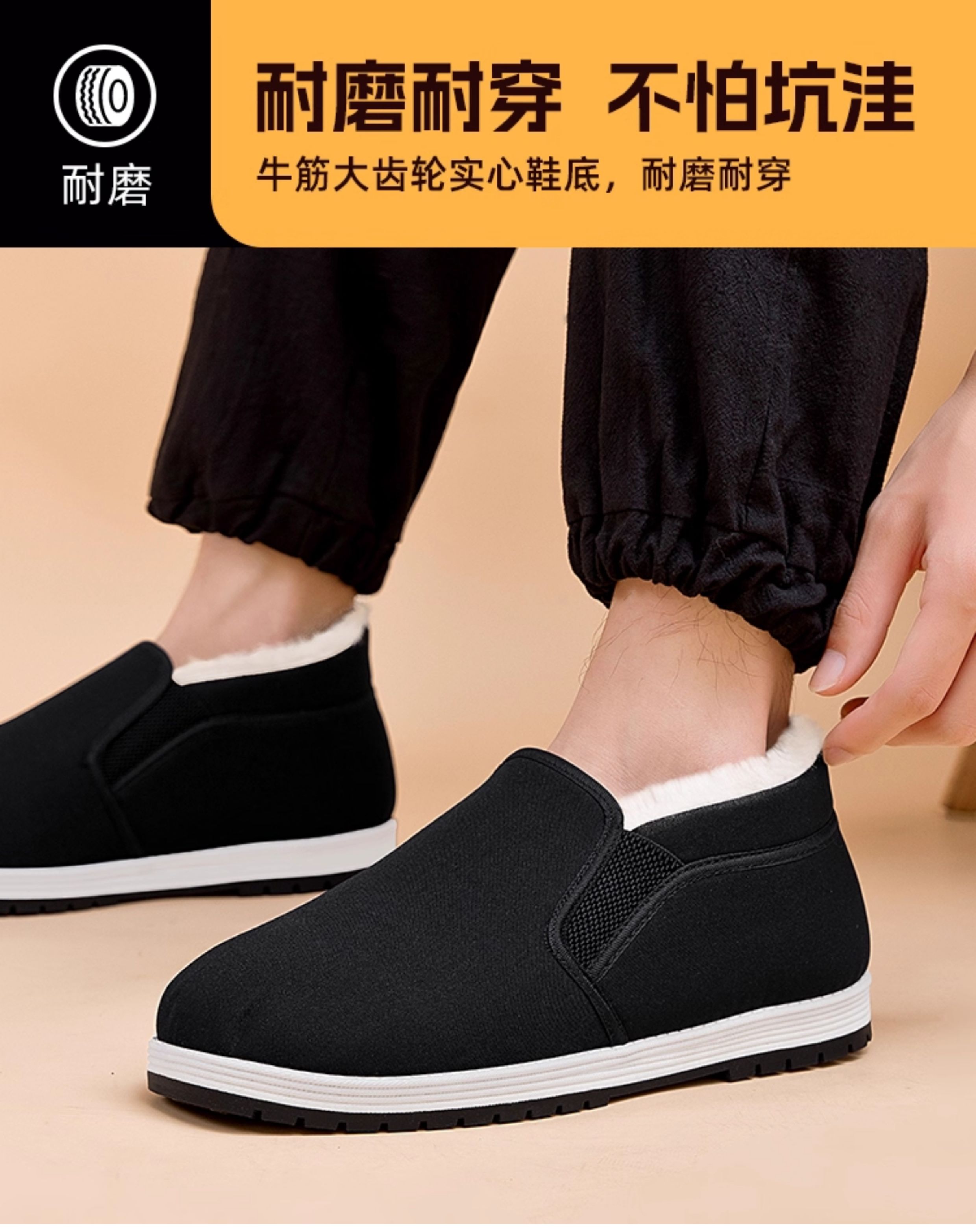 Old Beijing Cloth Shoes Men's Official Flagship Store Winter Fleece-lined Heattech Wool 2025 Autumn Elderly New arrival Thick Cotton Shoes