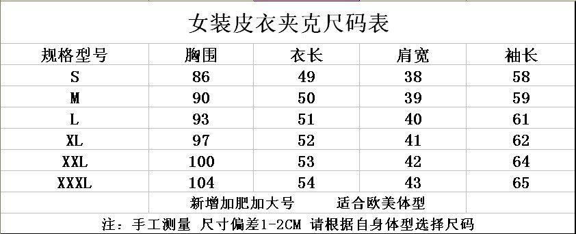 European and American Style Zipper Motorcycle Pu Leather Jacket S-3Xl Jacket Women Fur Coat Leather