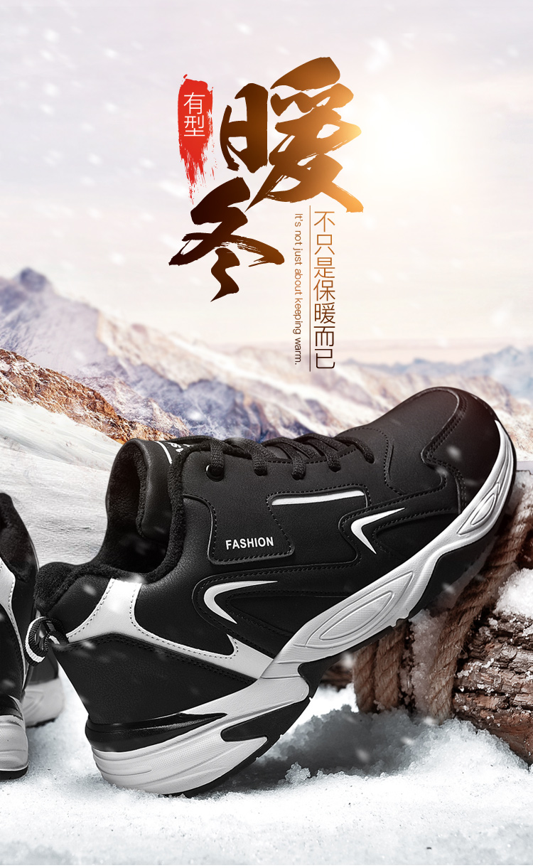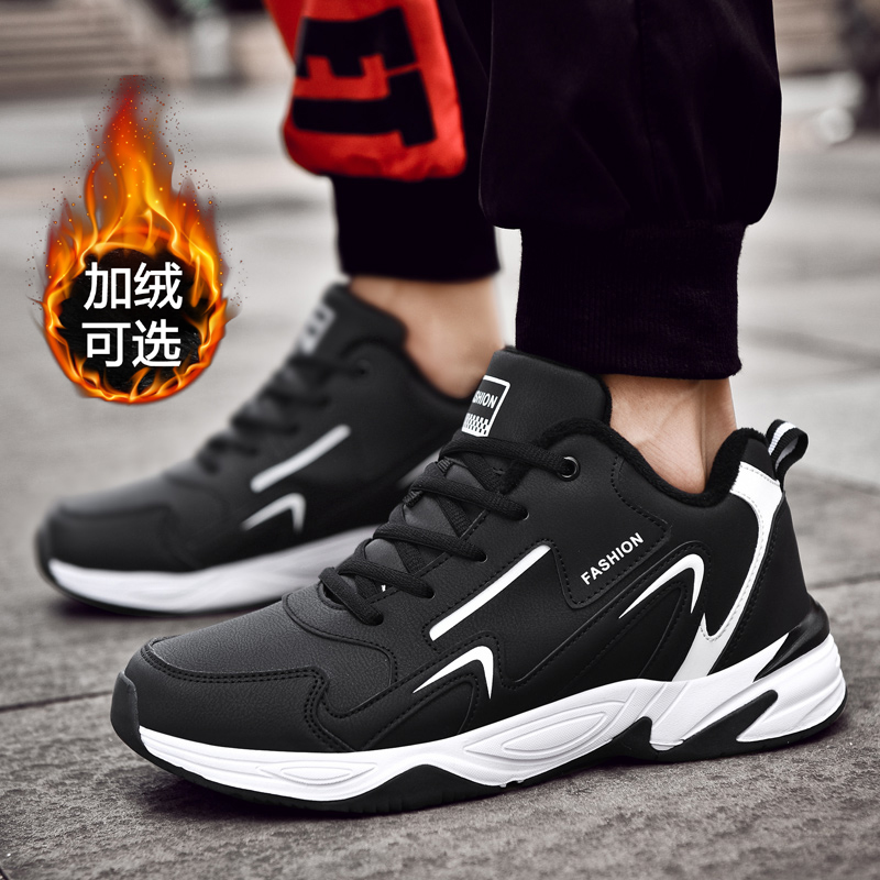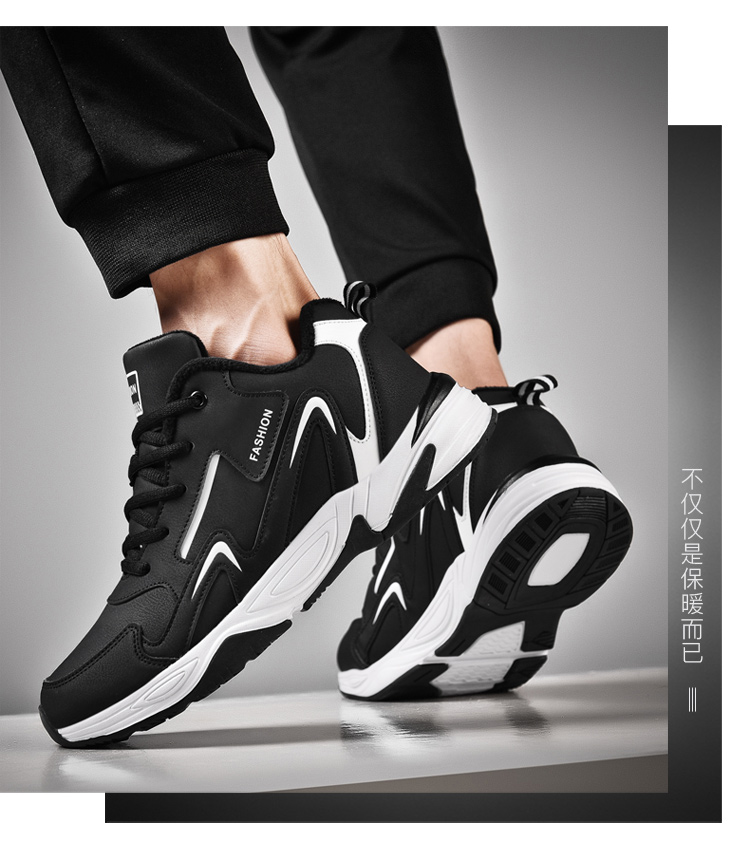 Men's Winter Fleece-Lined Cotton Shoes, Leather Surface, Waterproof Travel Shoes, Large Size 45, 46, 47, 48, Sports Warm Running Shoes