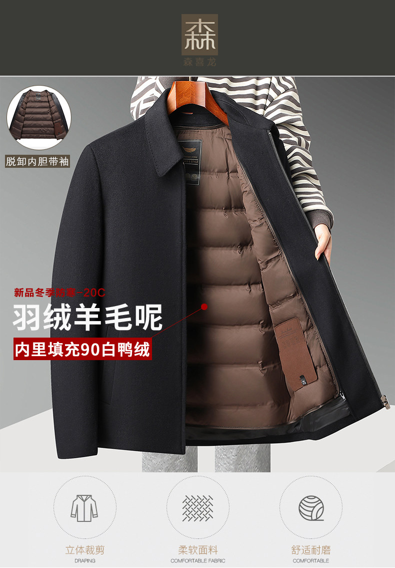 2025 Winter Style Woolen Coat for Middle-Aged and Elderly Men, Detachable down Jacket, Casual Winter Coat for Grandpa and Dad