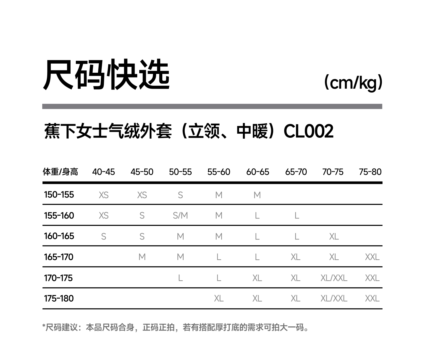 Banana down Padded Jacket for Women Cl00225 New Autumn and Winter Warm Loose Puffer Jacket Thin Cotton Coat with Inner Cotton Lining