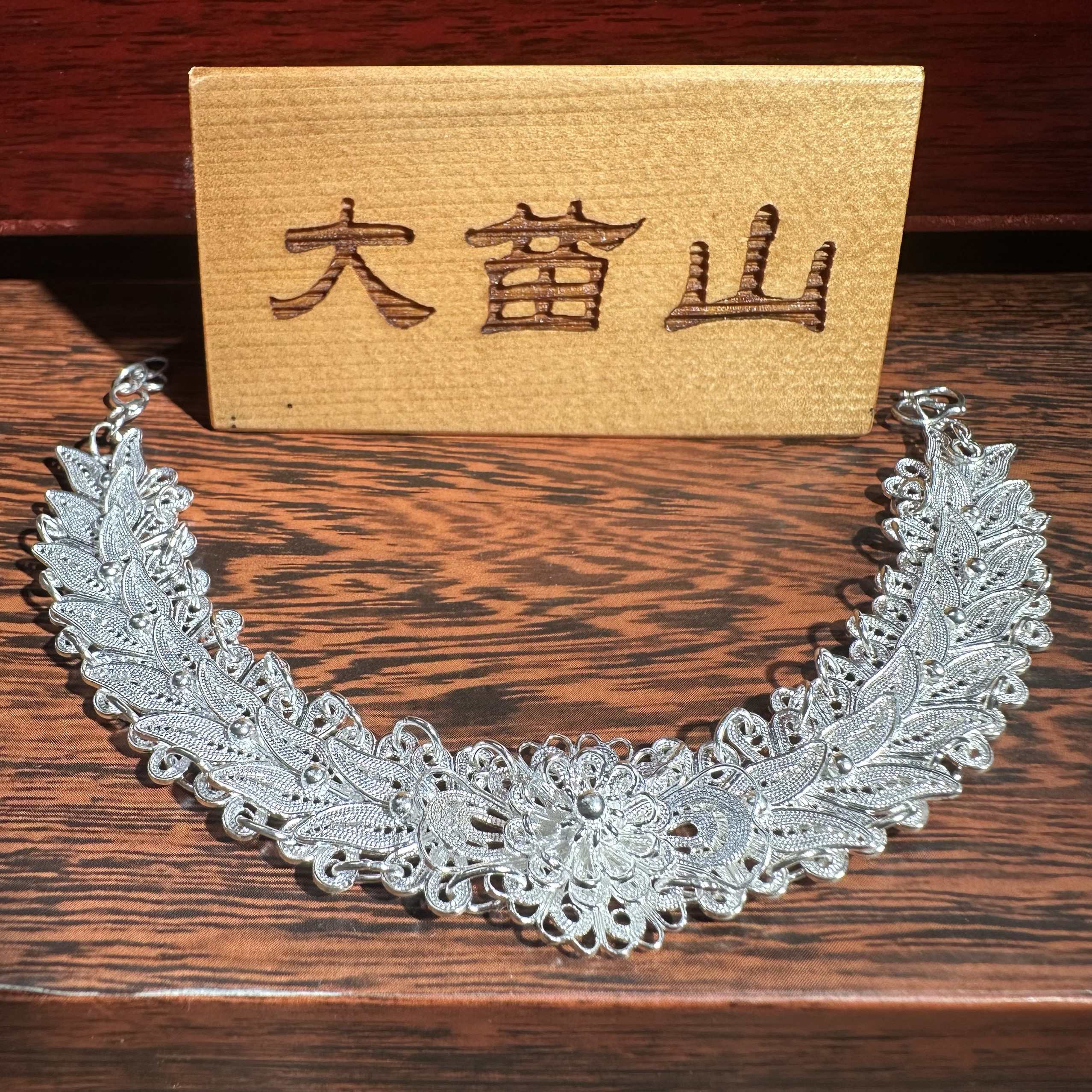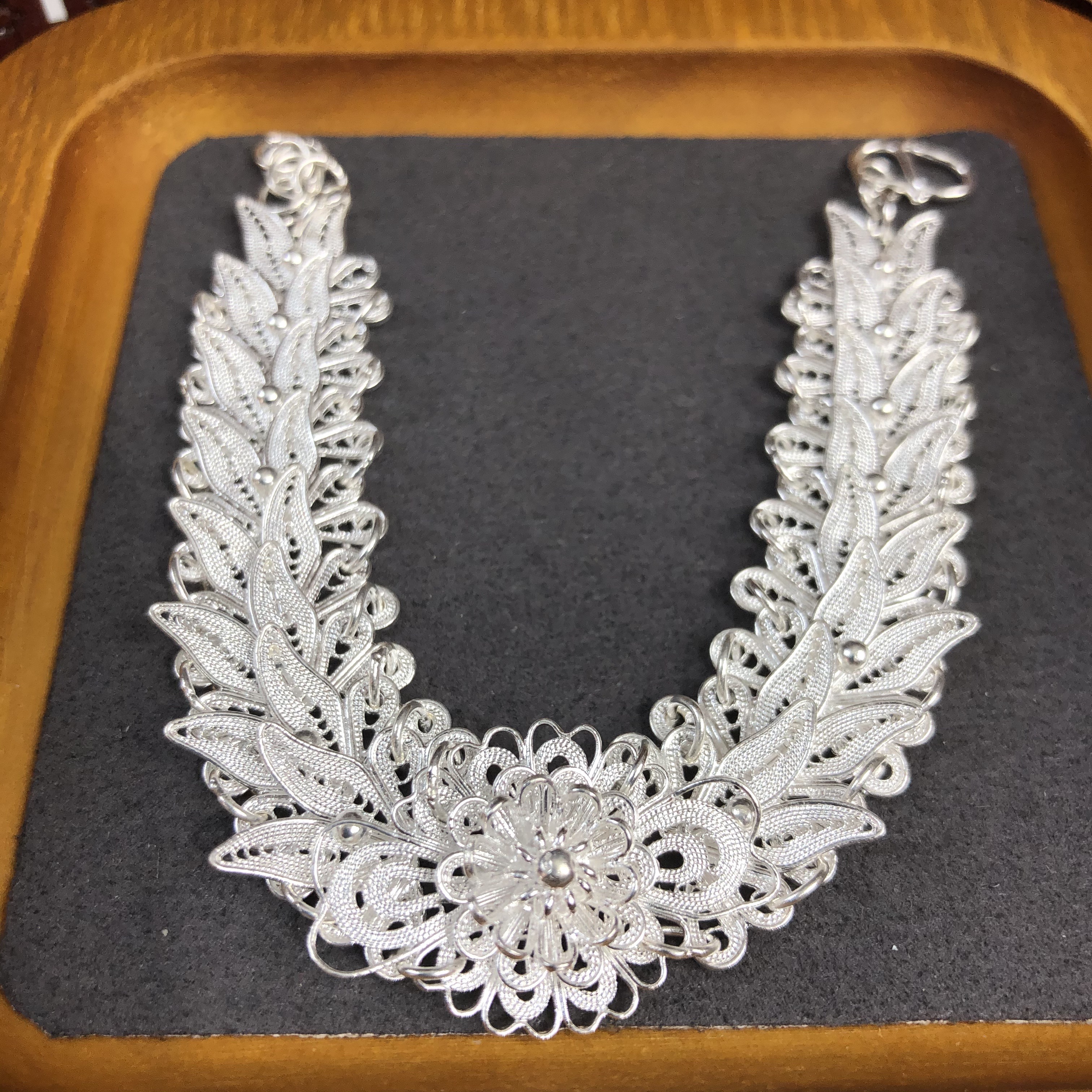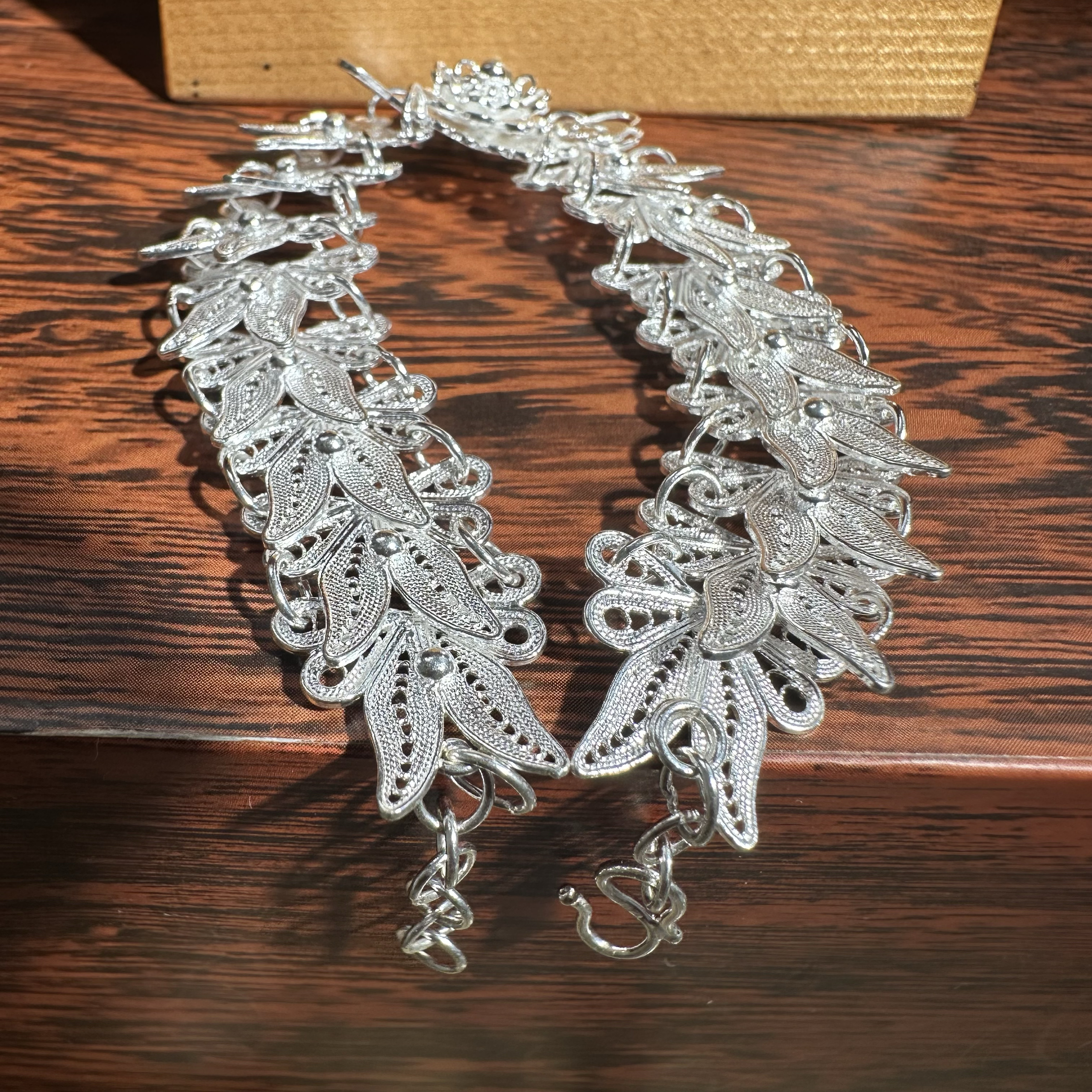 Peony Flower Bracelet, Pure Silver Bracelet, about 13 Grams, 17+ 2cm