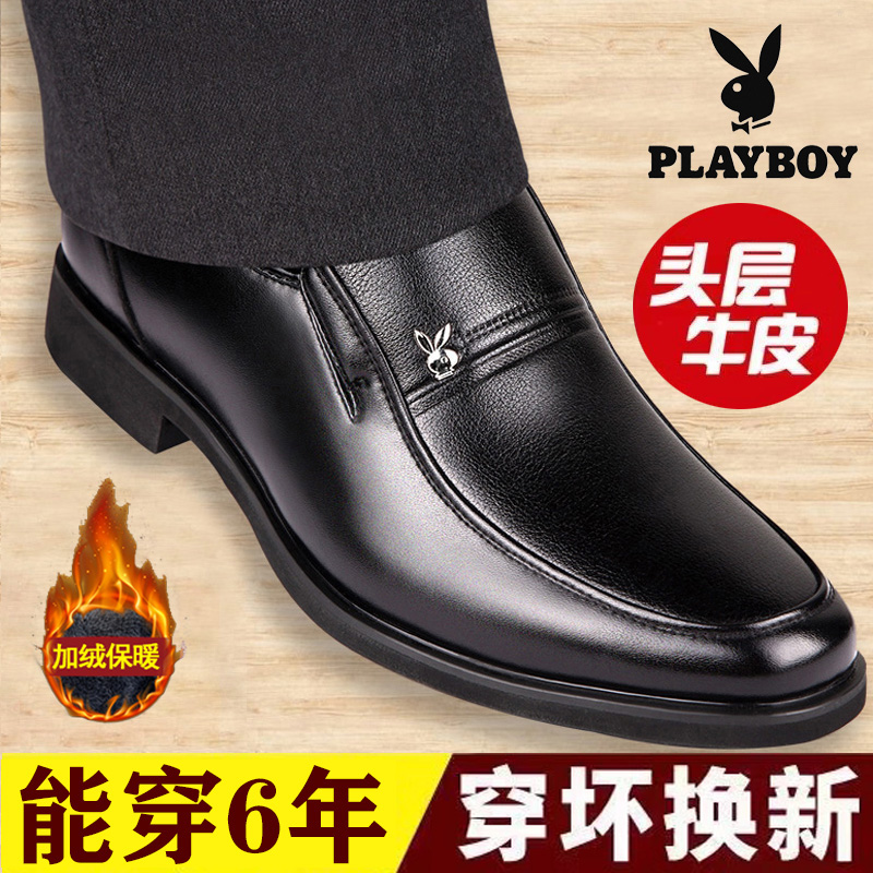 Playboy Leather Shoes for Men, Spring and Autumn Genuine Leather Men's Business Formal Shoes, Extra Large Size Soft Leather Slip-On Dad Shoes