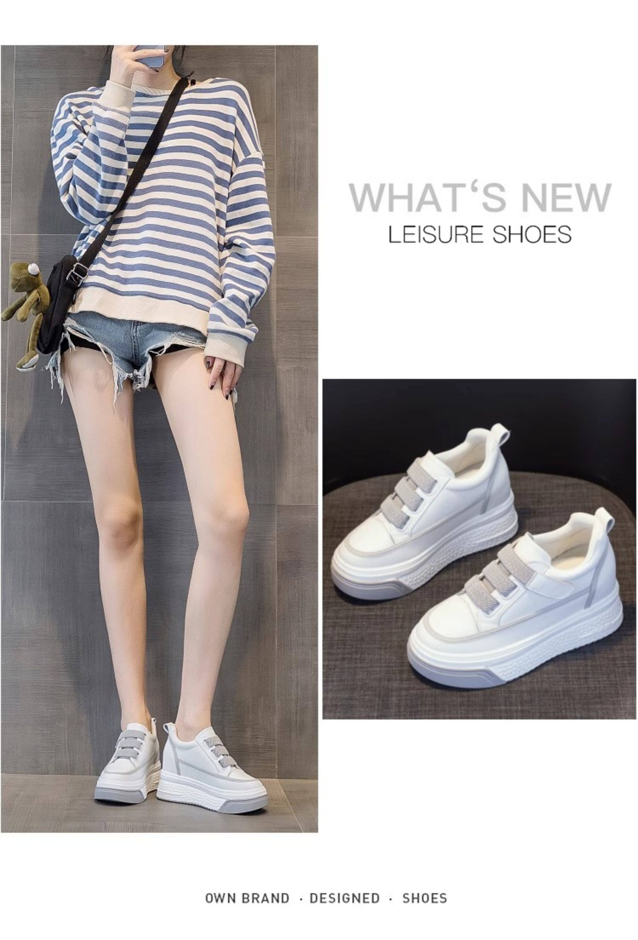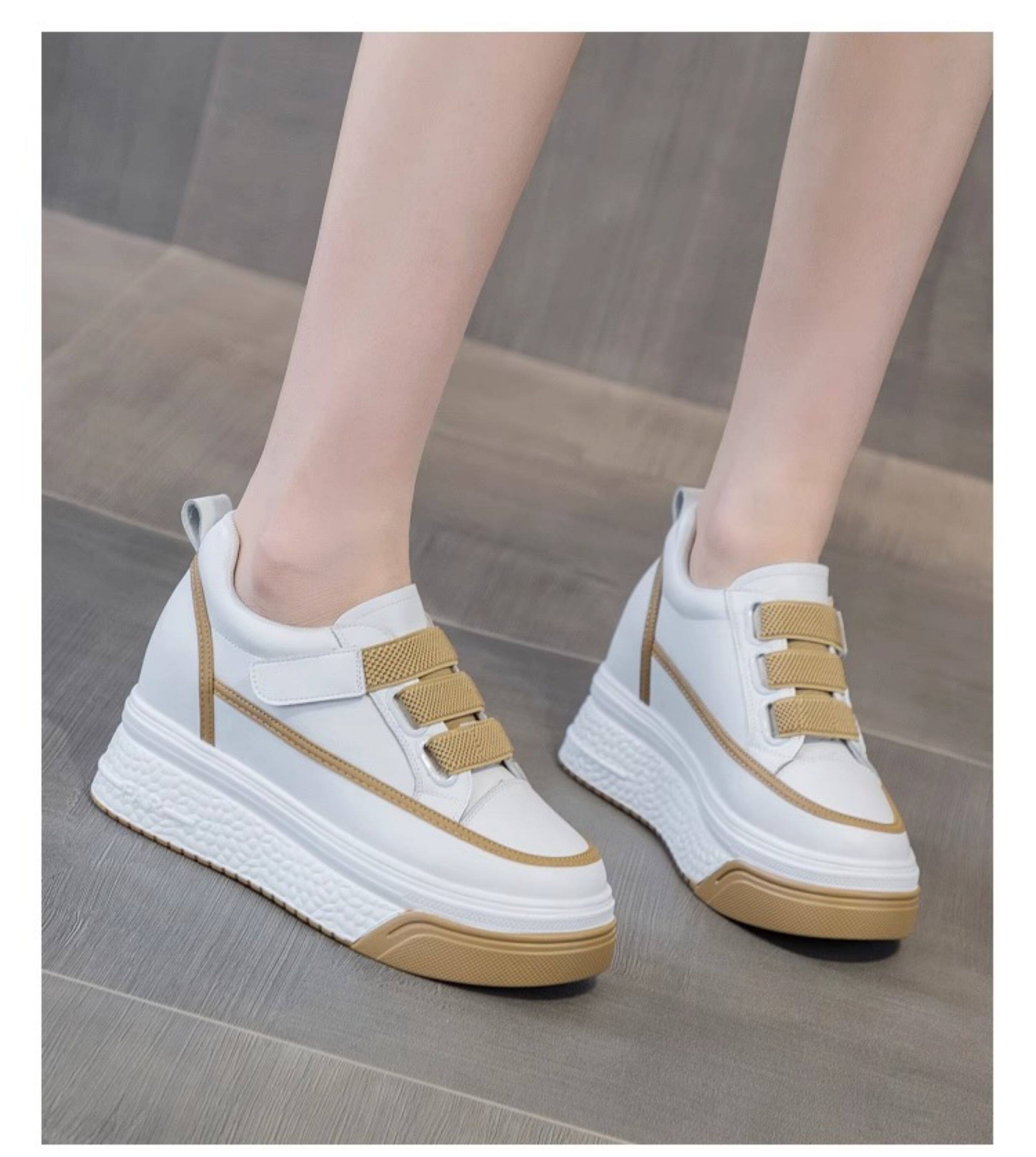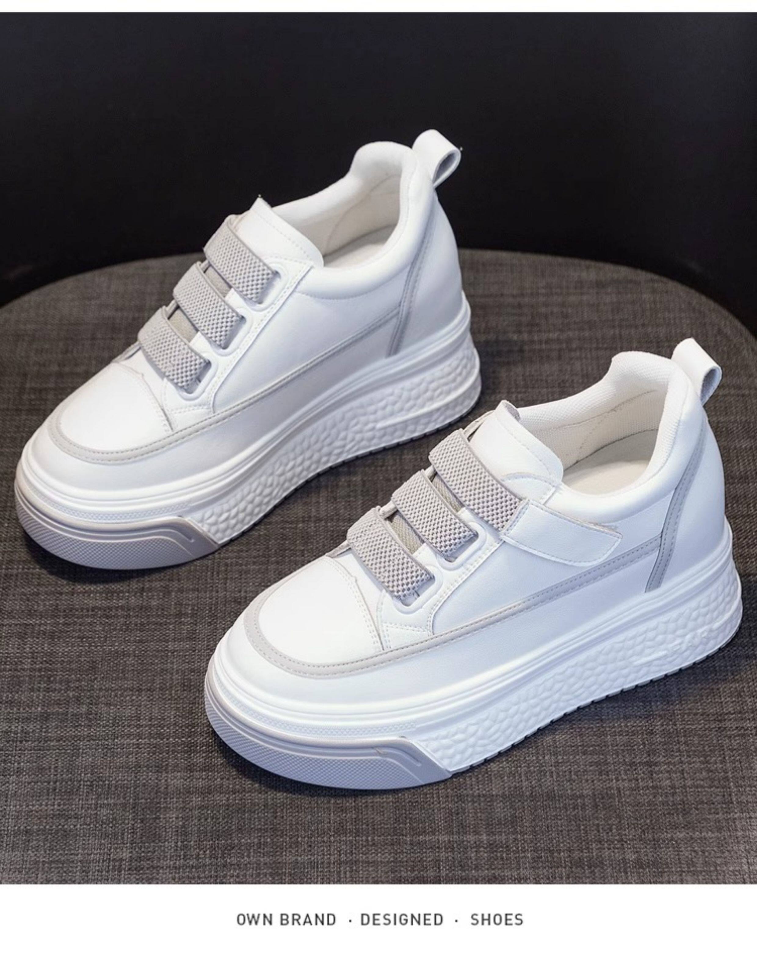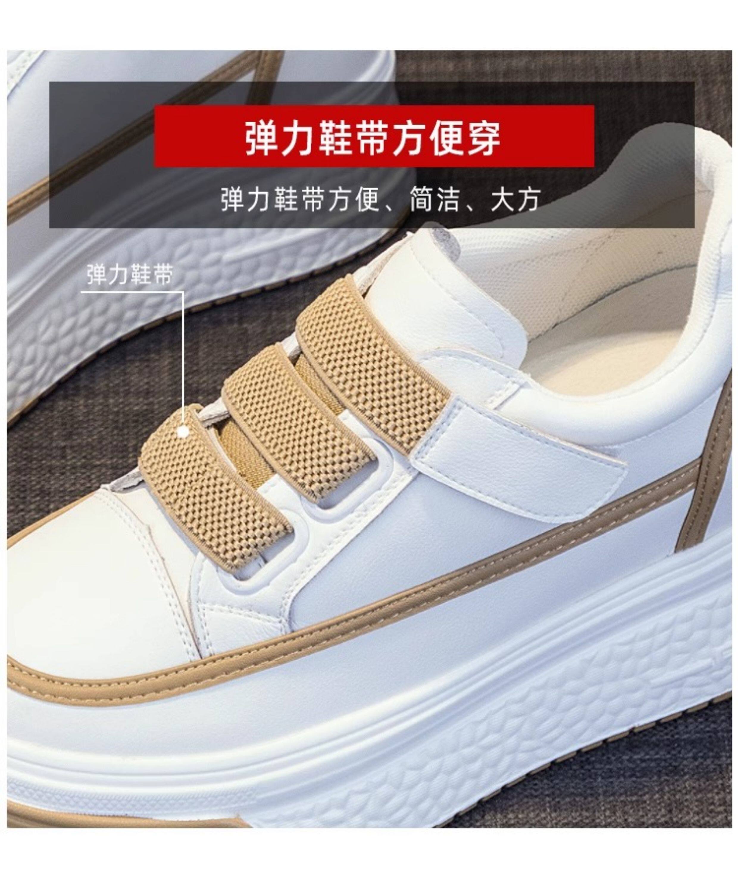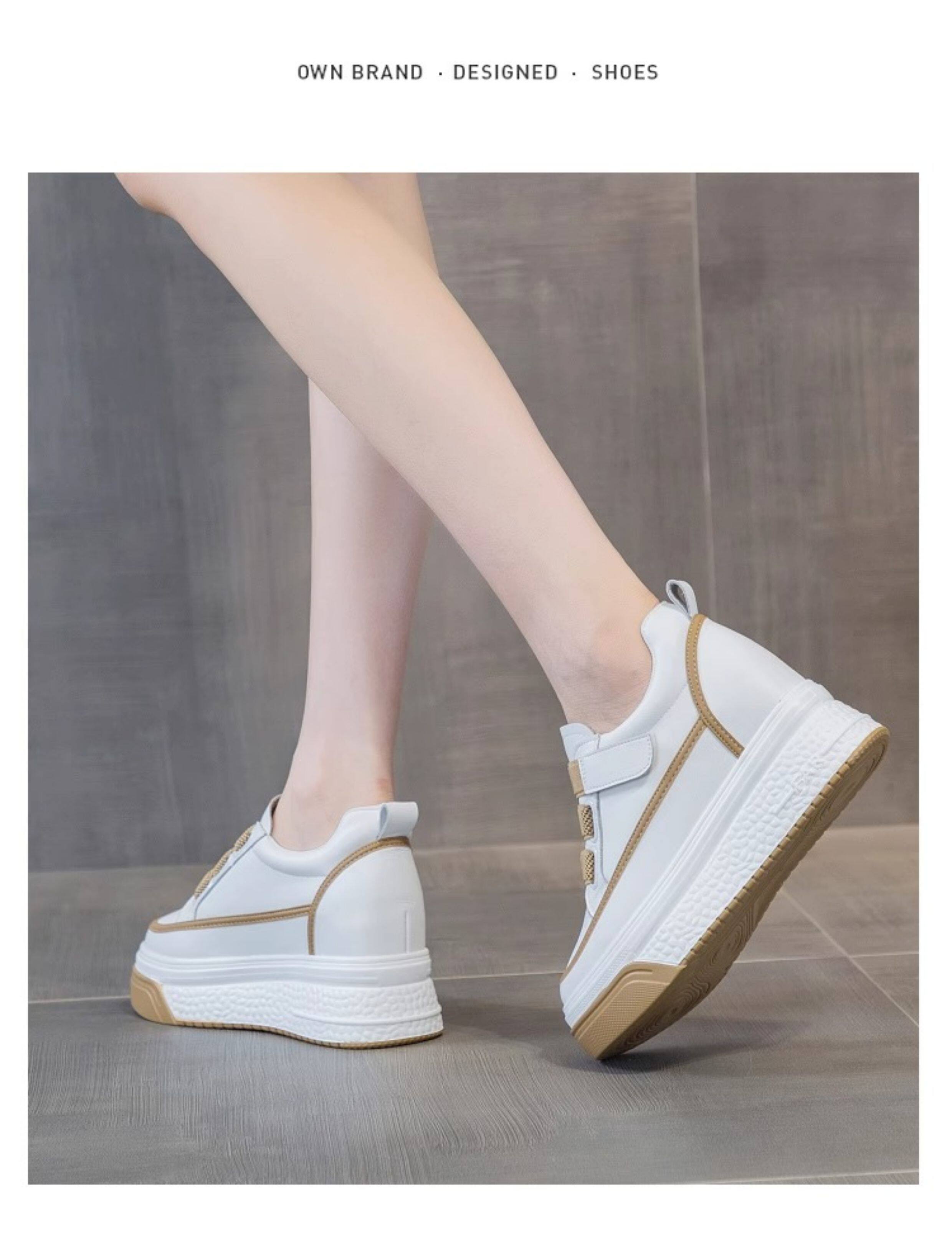 Hong Kong Genuine Leather White Sneakers for Women, 2026 Spring and Autumn New Style, Thick-Soled Slip-On Shoes with Hidden Height Increase for Petite Individuals, Platform Shoes