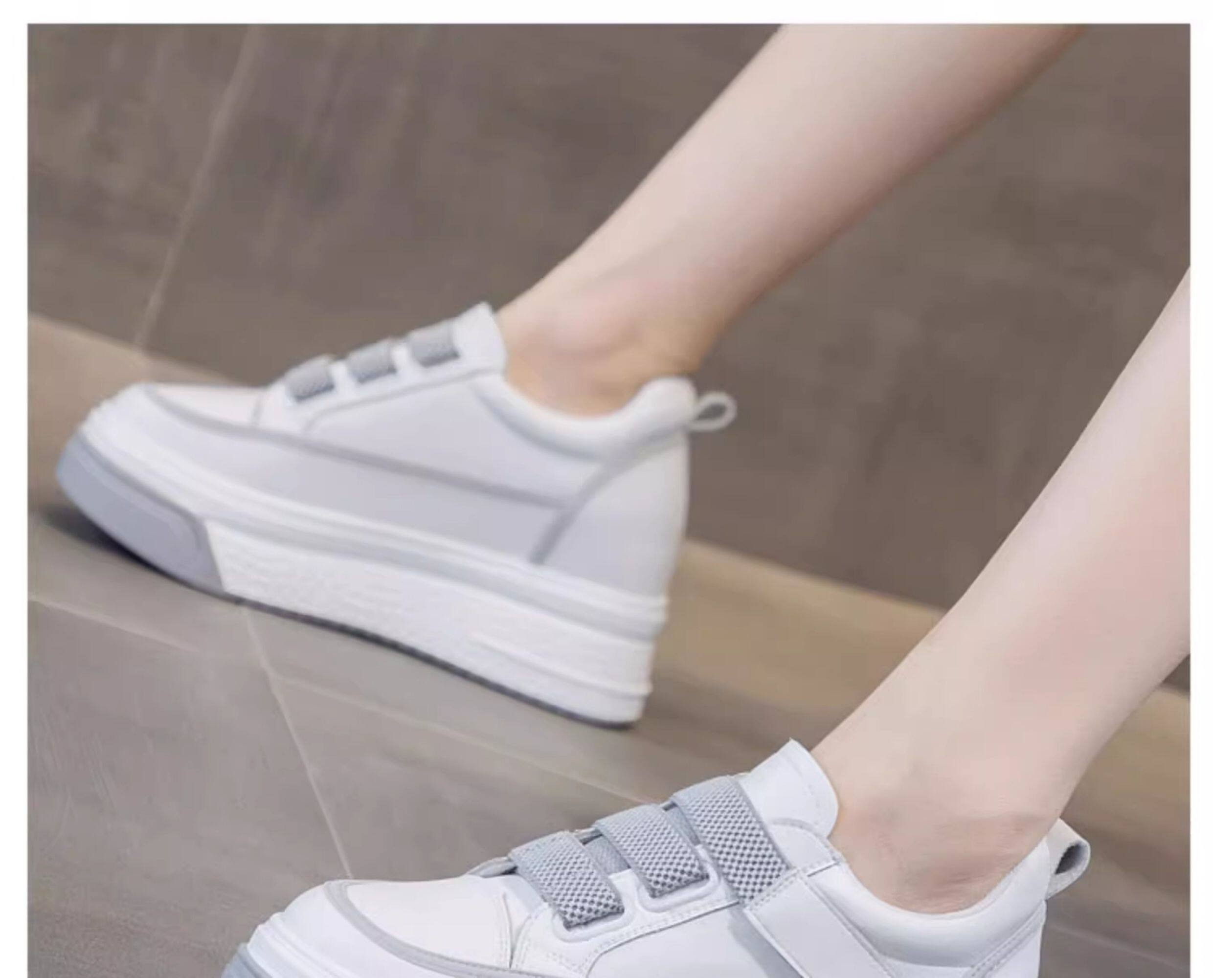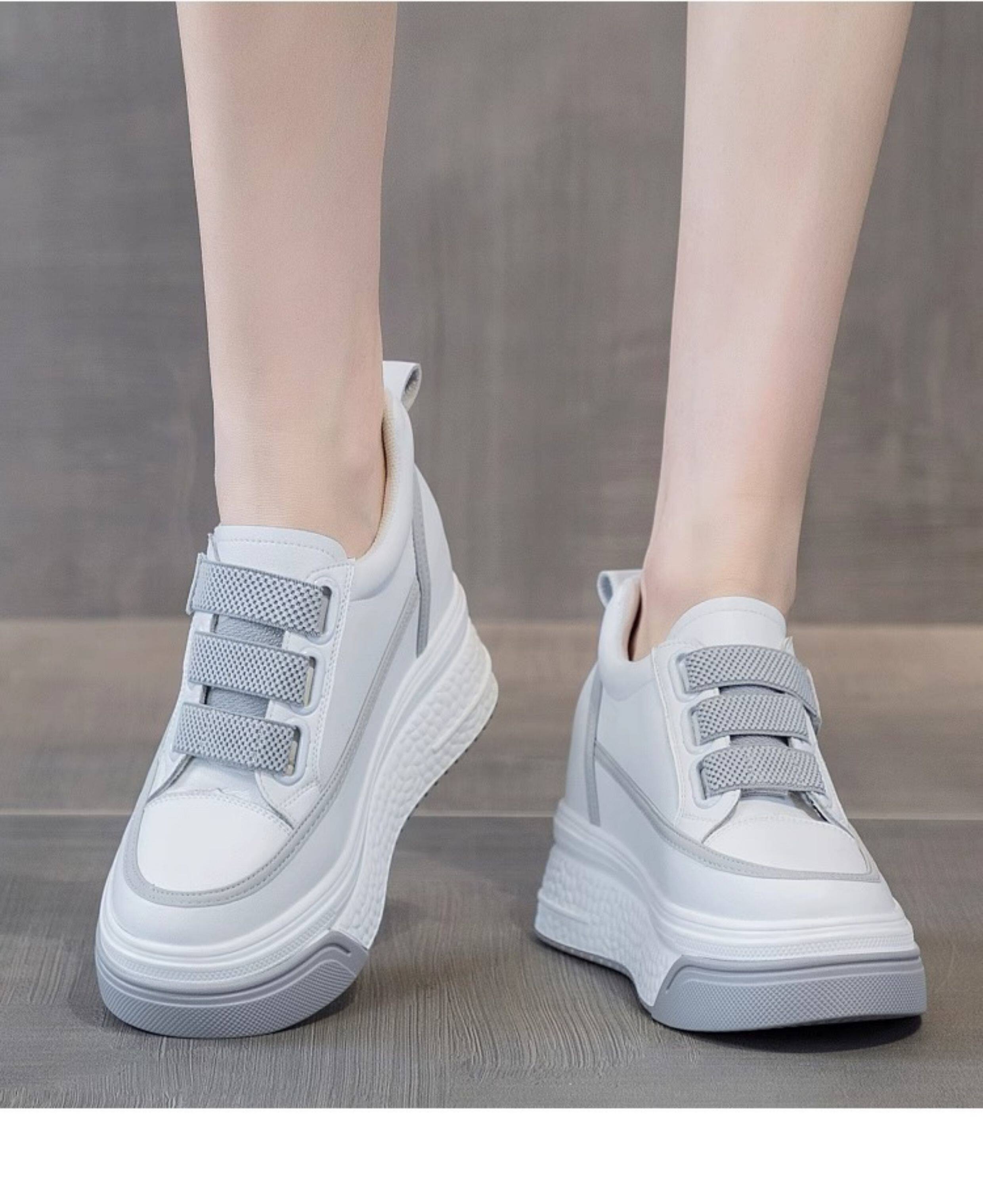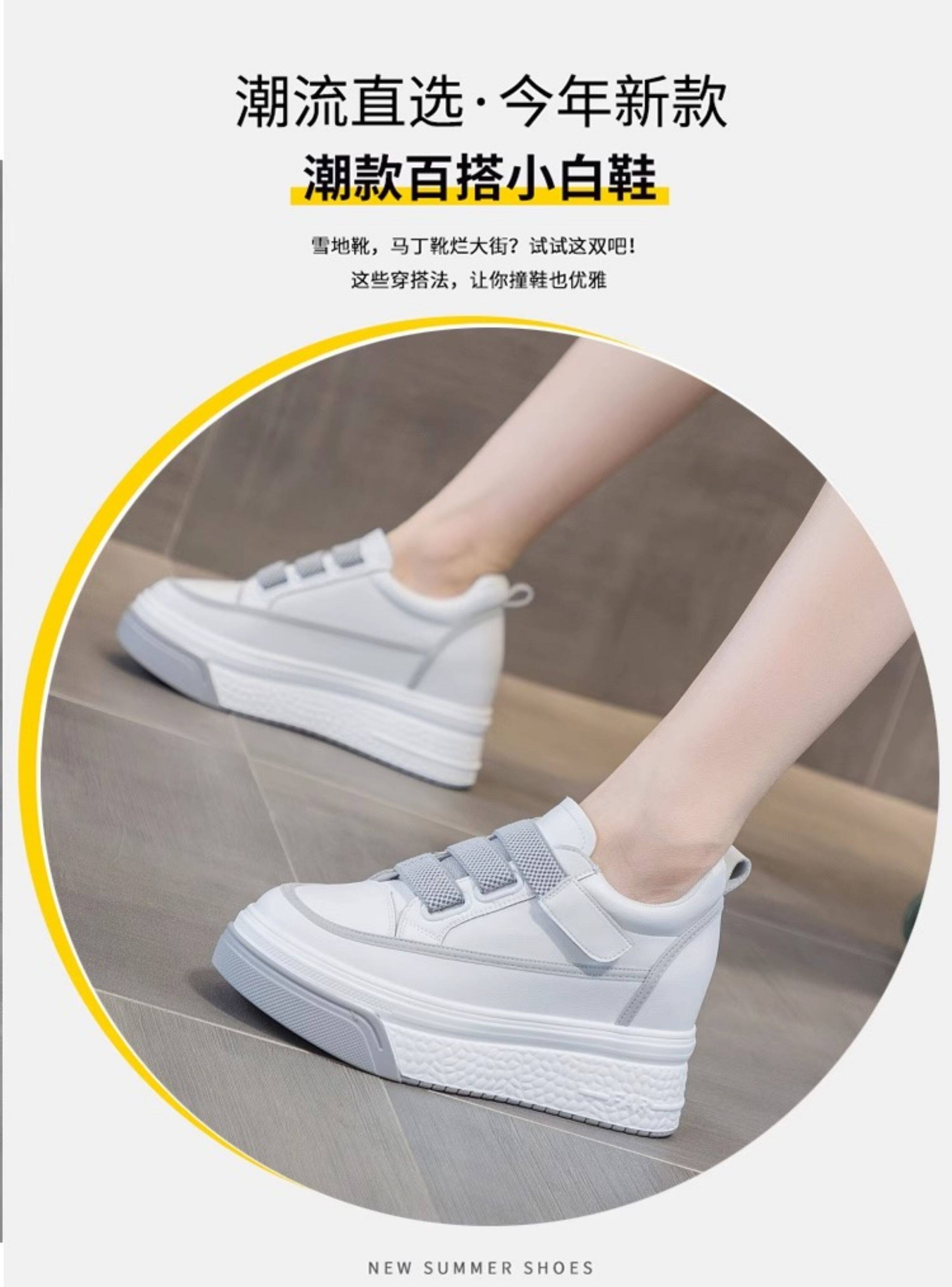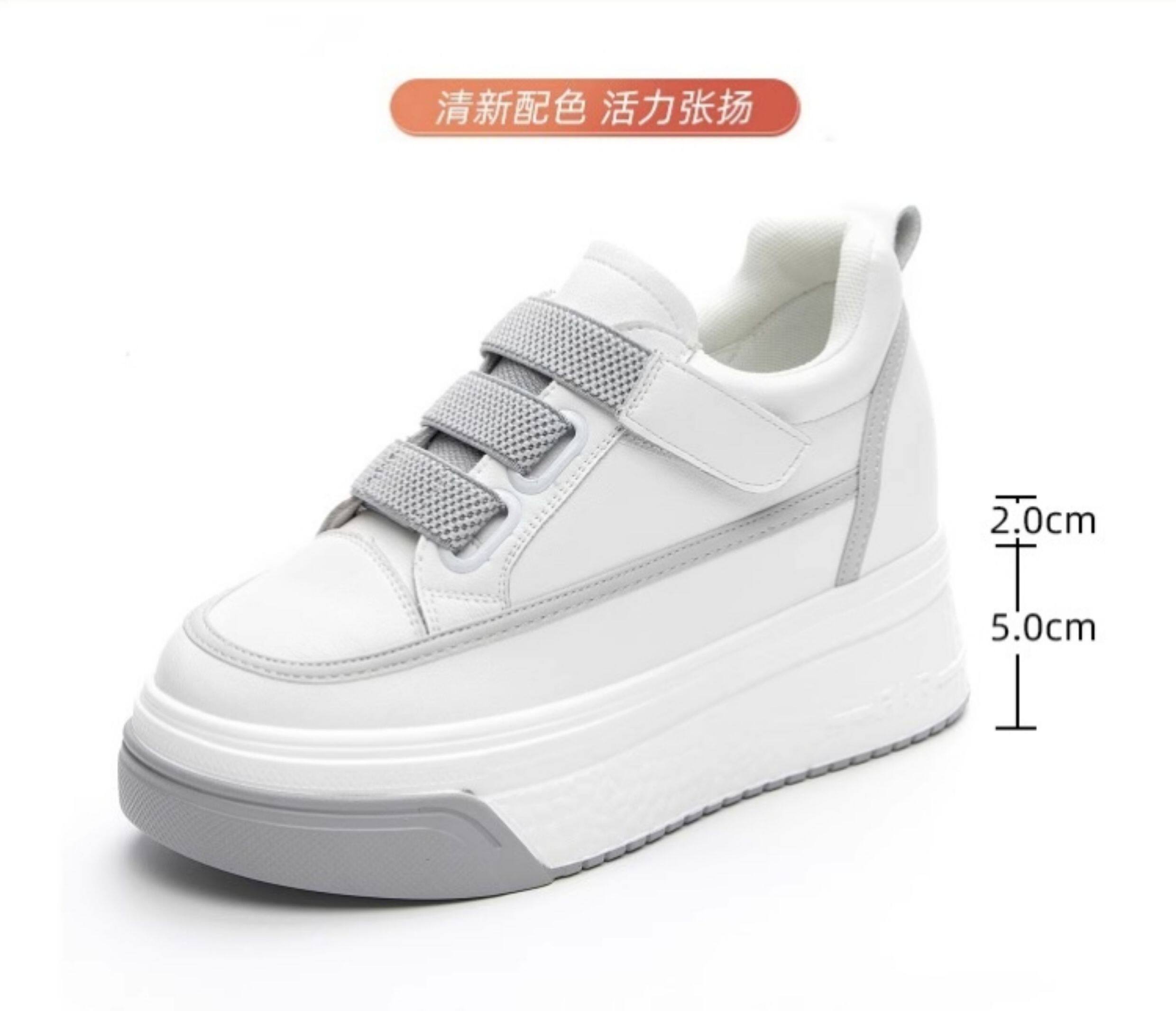 Hong Kong Genuine Leather White Sneakers for Women, 2026 Spring and Autumn New Style, Thick-Soled Slip-On Shoes with Hidden Height Increase for Petite Individuals, Platform Shoes