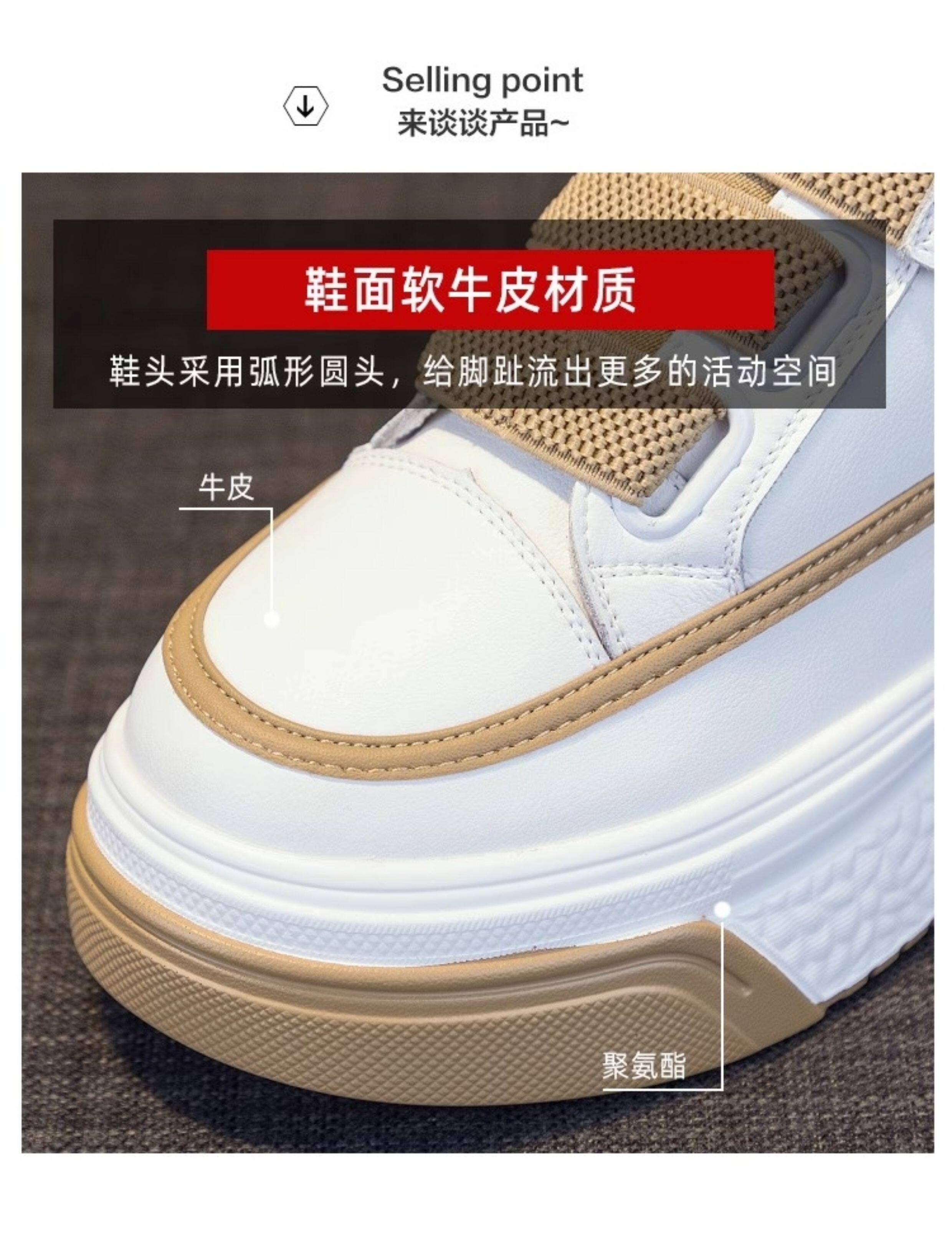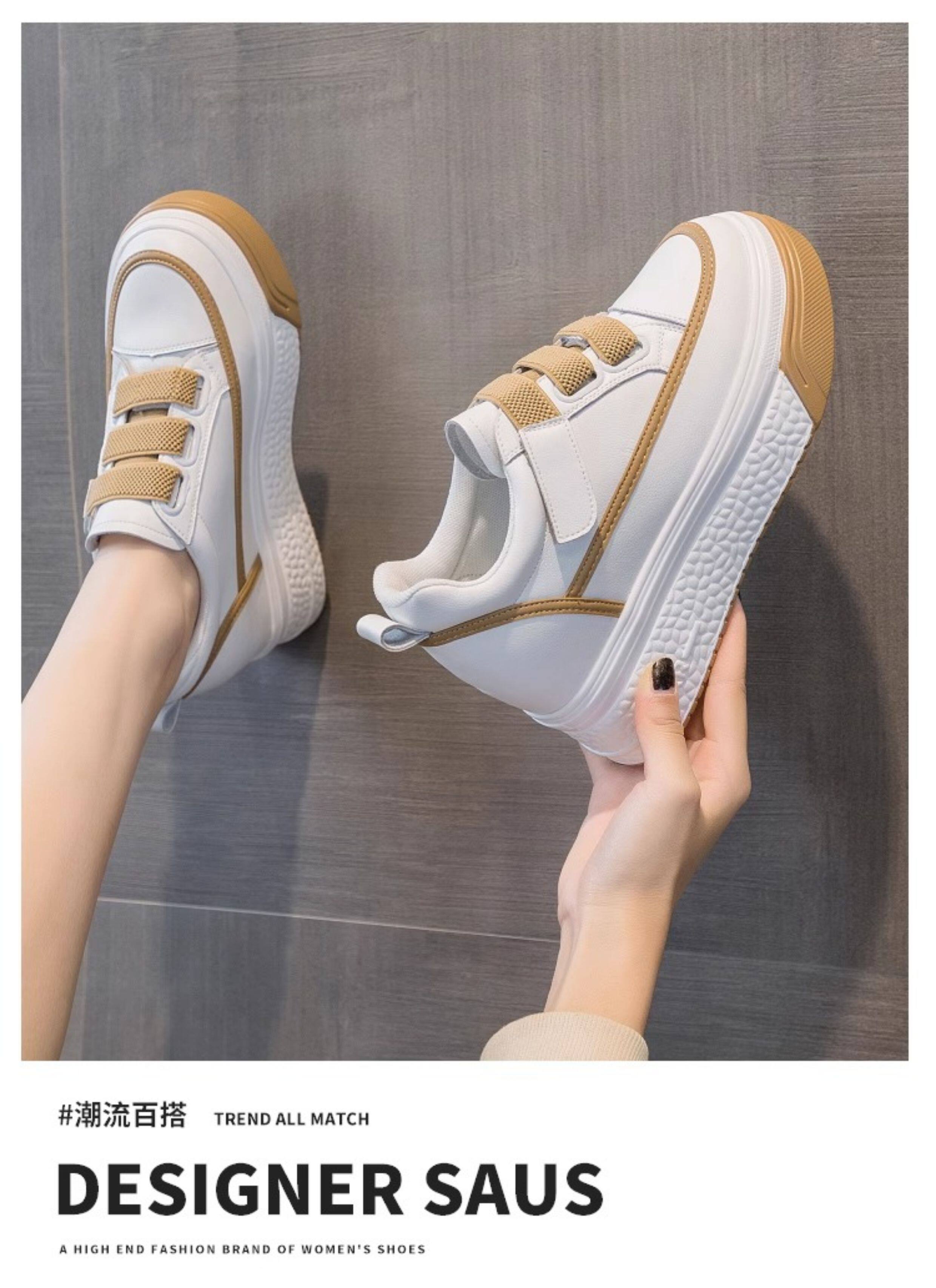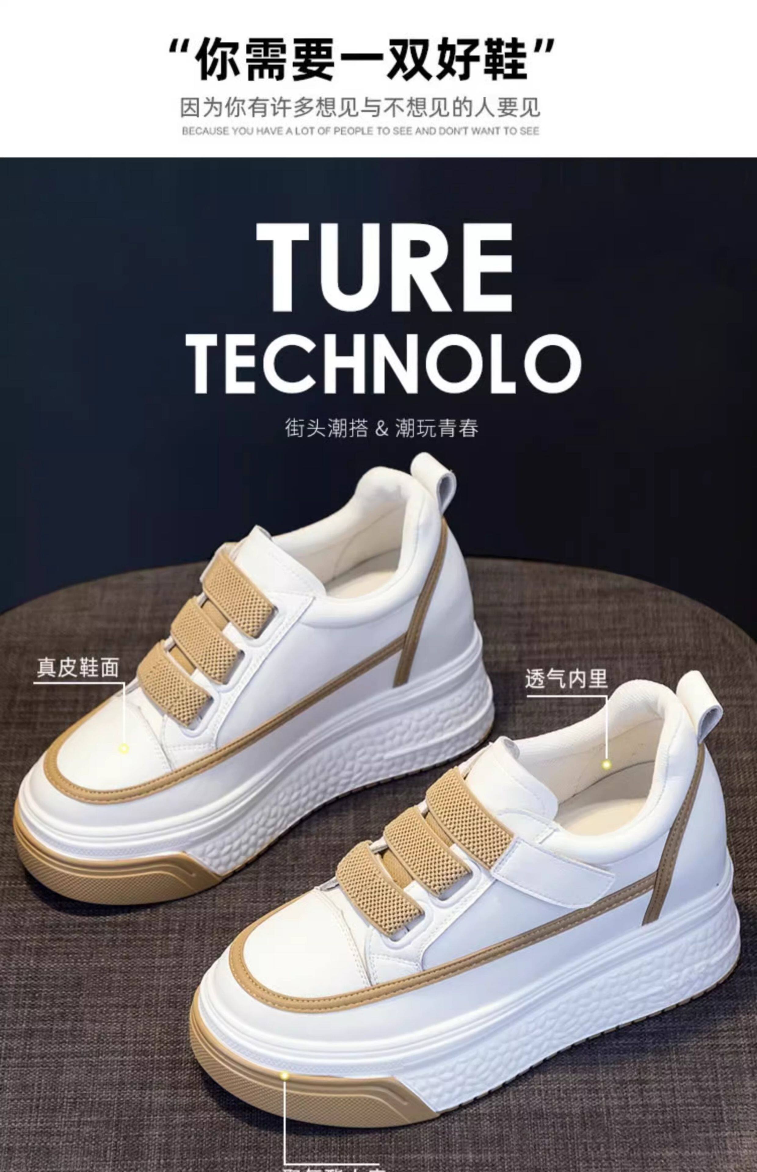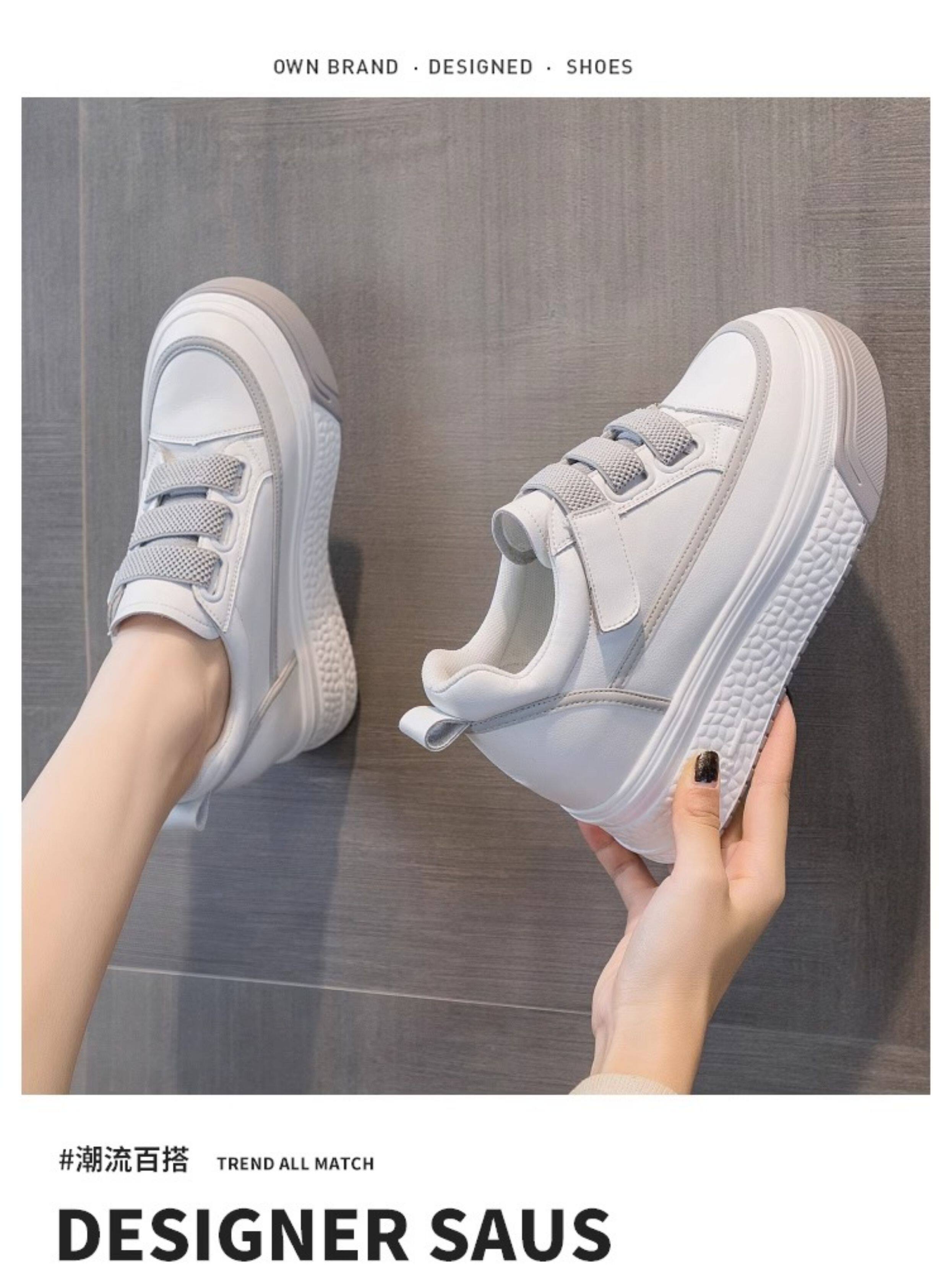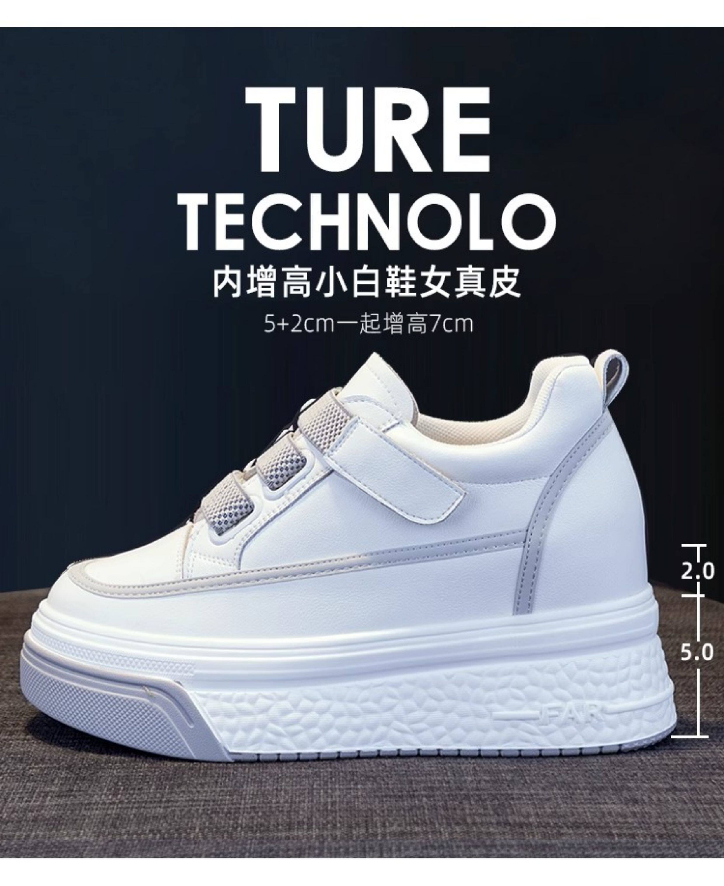 Hong Kong Genuine Leather White Sneakers for Women, 2026 Spring and Autumn New Style, Thick-Soled Slip-On Shoes with Hidden Height Increase for Petite Individuals, Platform Shoes