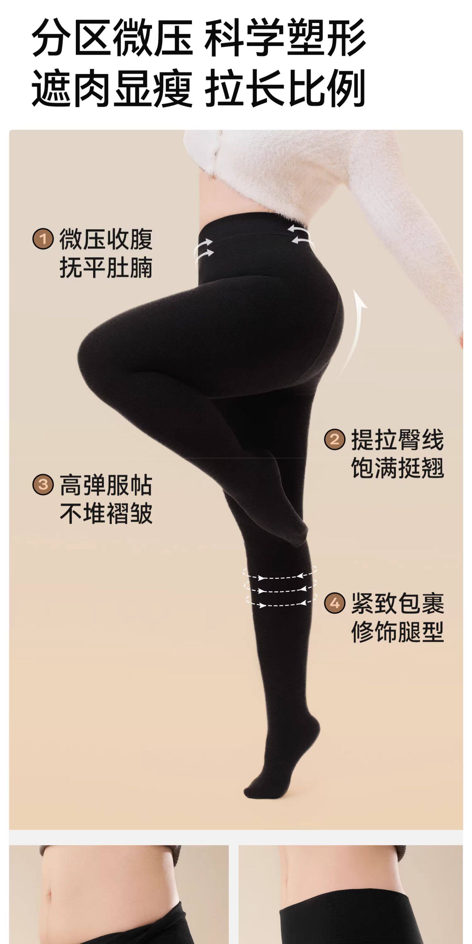 Gumujia Hot-Pressed Pantyhose High-Thread-Count Cotton Wool Gray Leggings for Women Plus Size Autumn and Winter Black Warm Slimming Socks