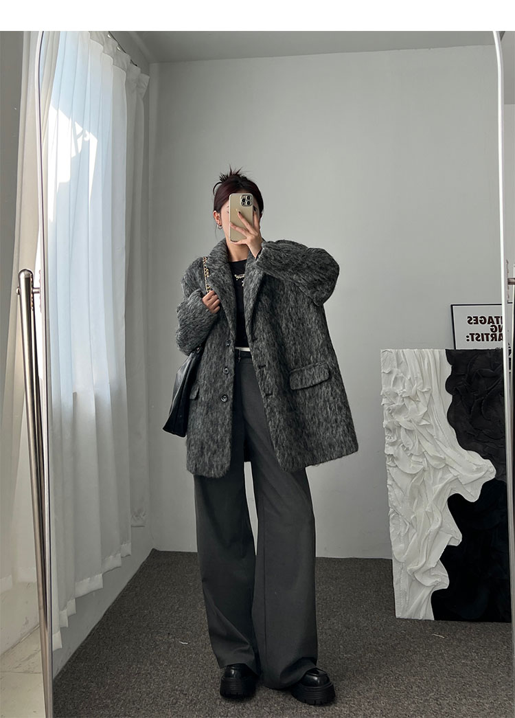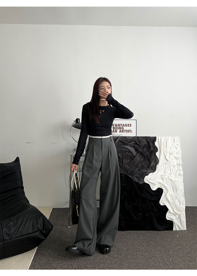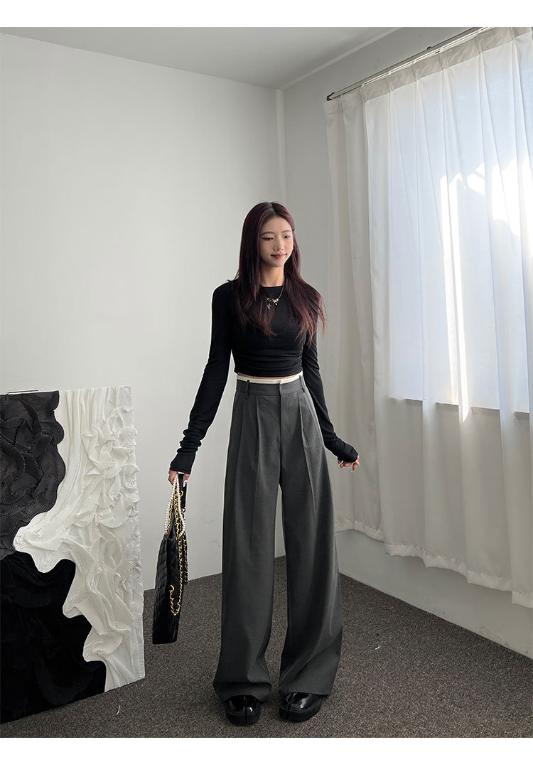 Gray Stylish Wide-Leg Suit Pants for Women, New Autumn and Winter Loose Slimming Straight-Leg Pants, Casual Versatile Floor-Length Trousers