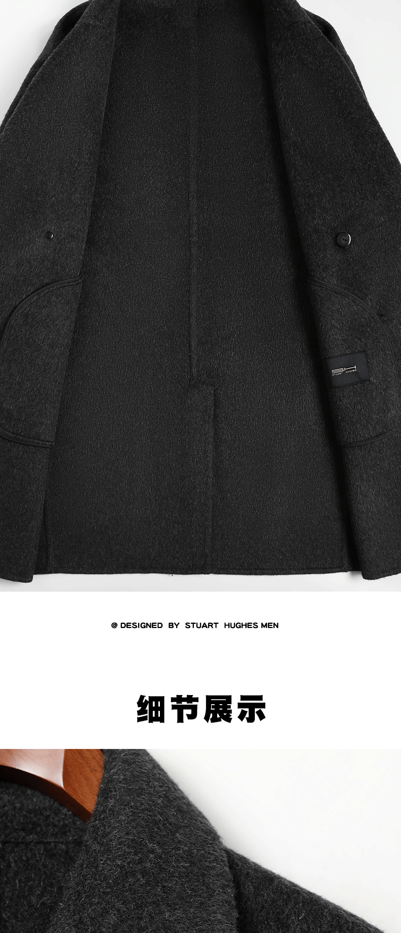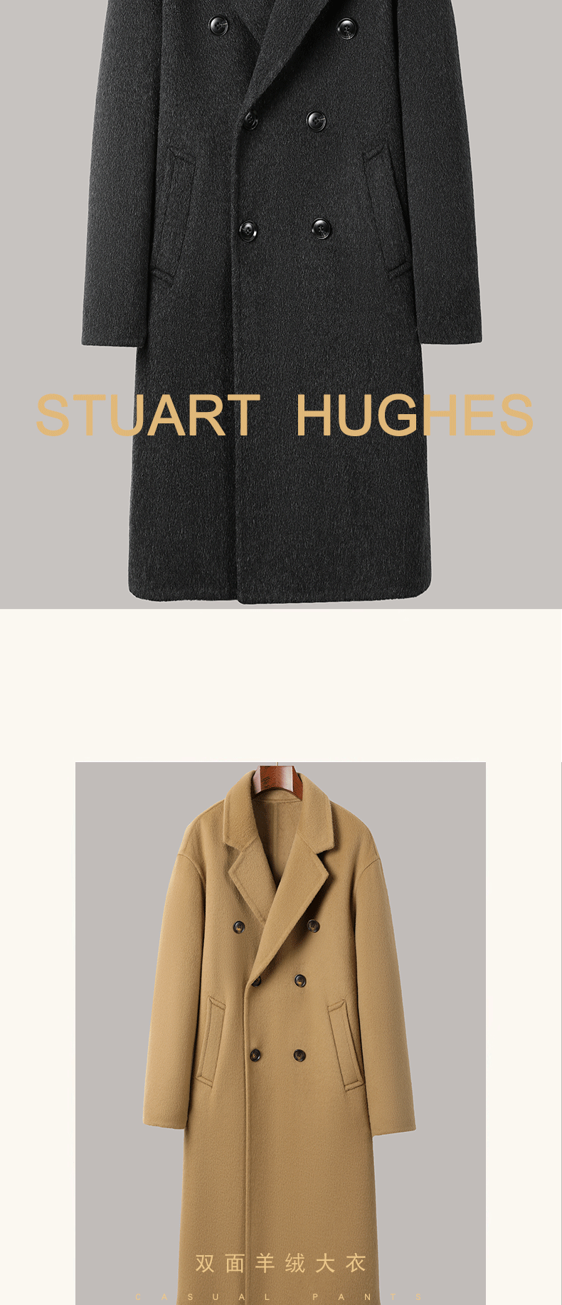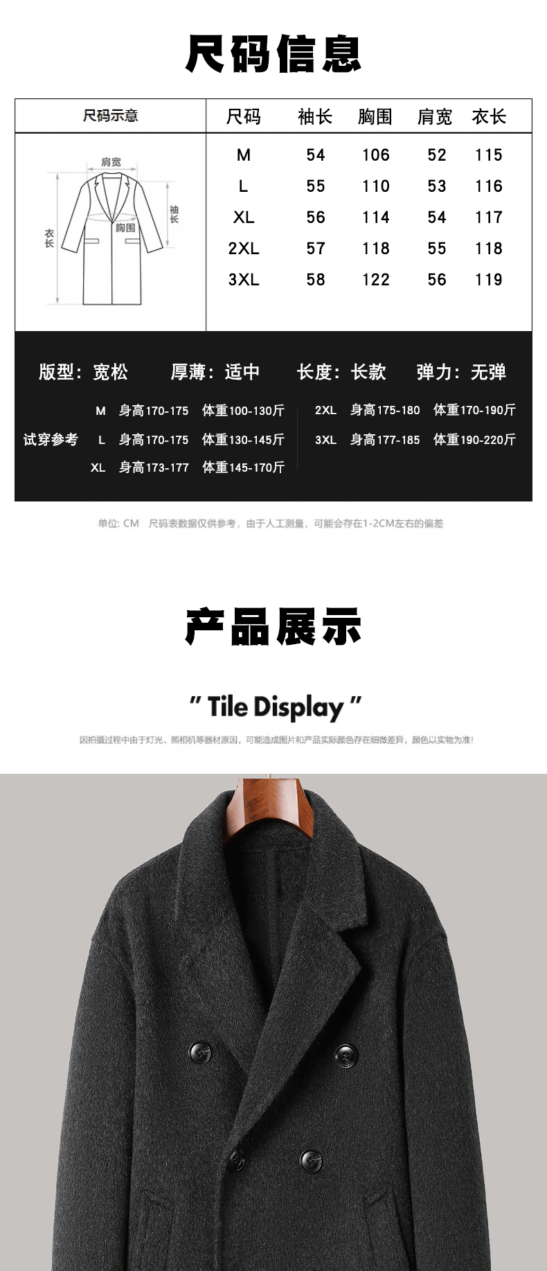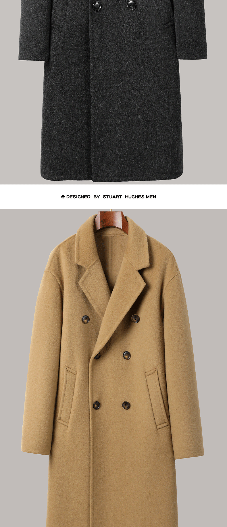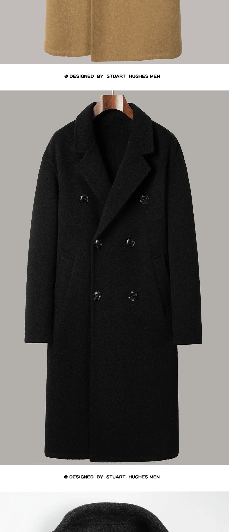 Winter Thick Cashmere Suit Collar Mid-Length Double-Breasted Over-The-Knee Drop-Shoulder Double-Sided Wool Coat Men's Trench Coat Jacket