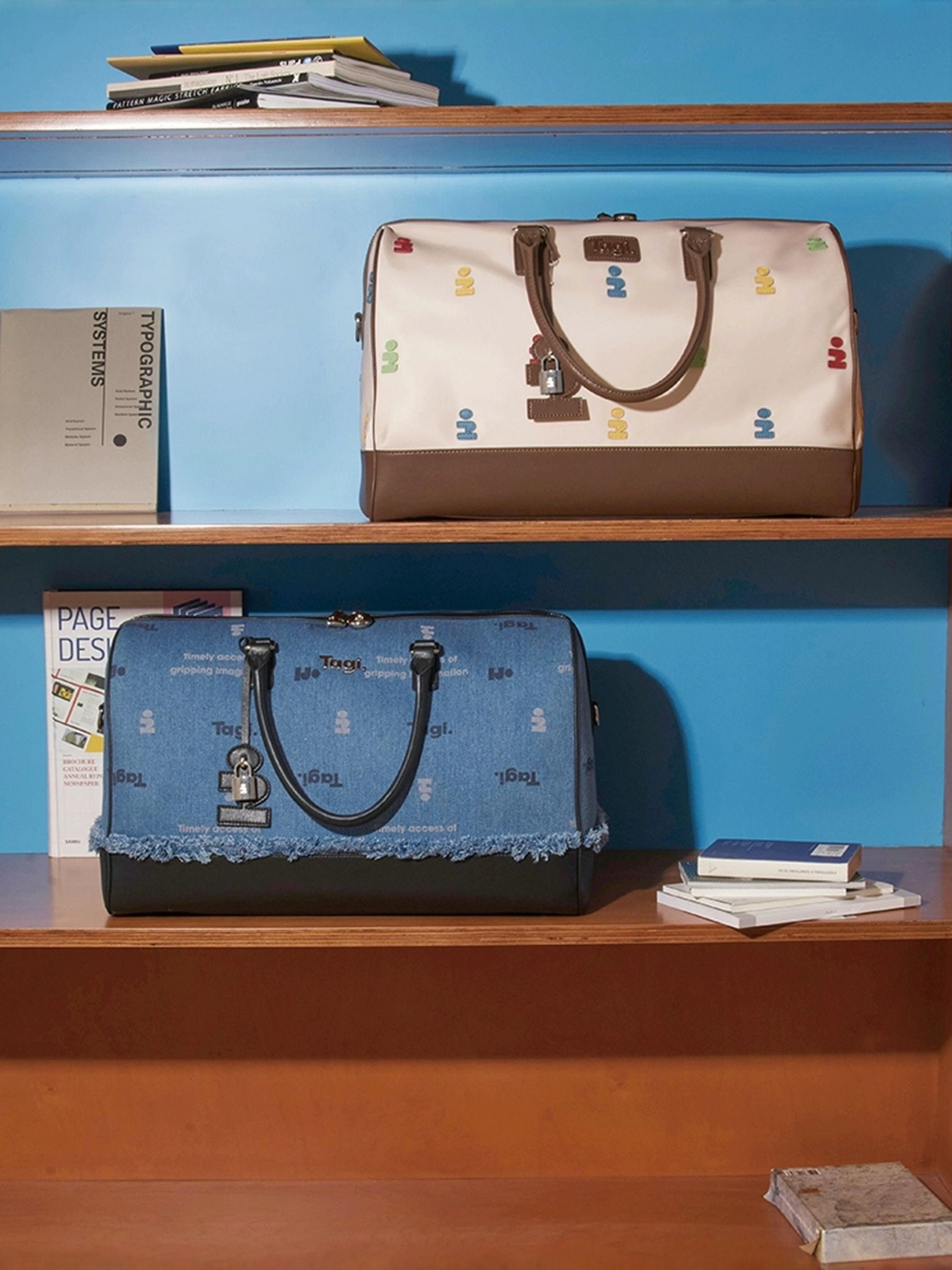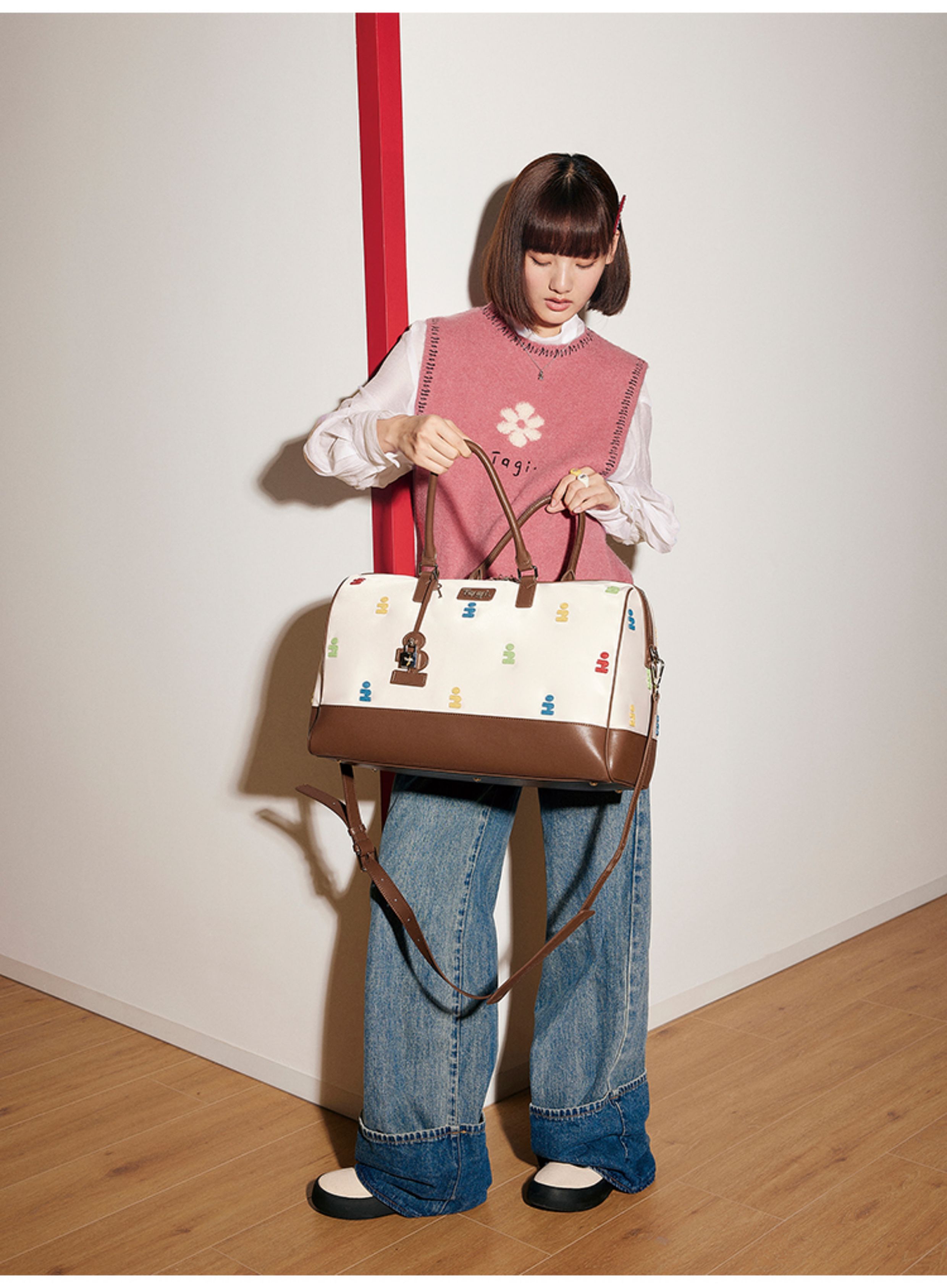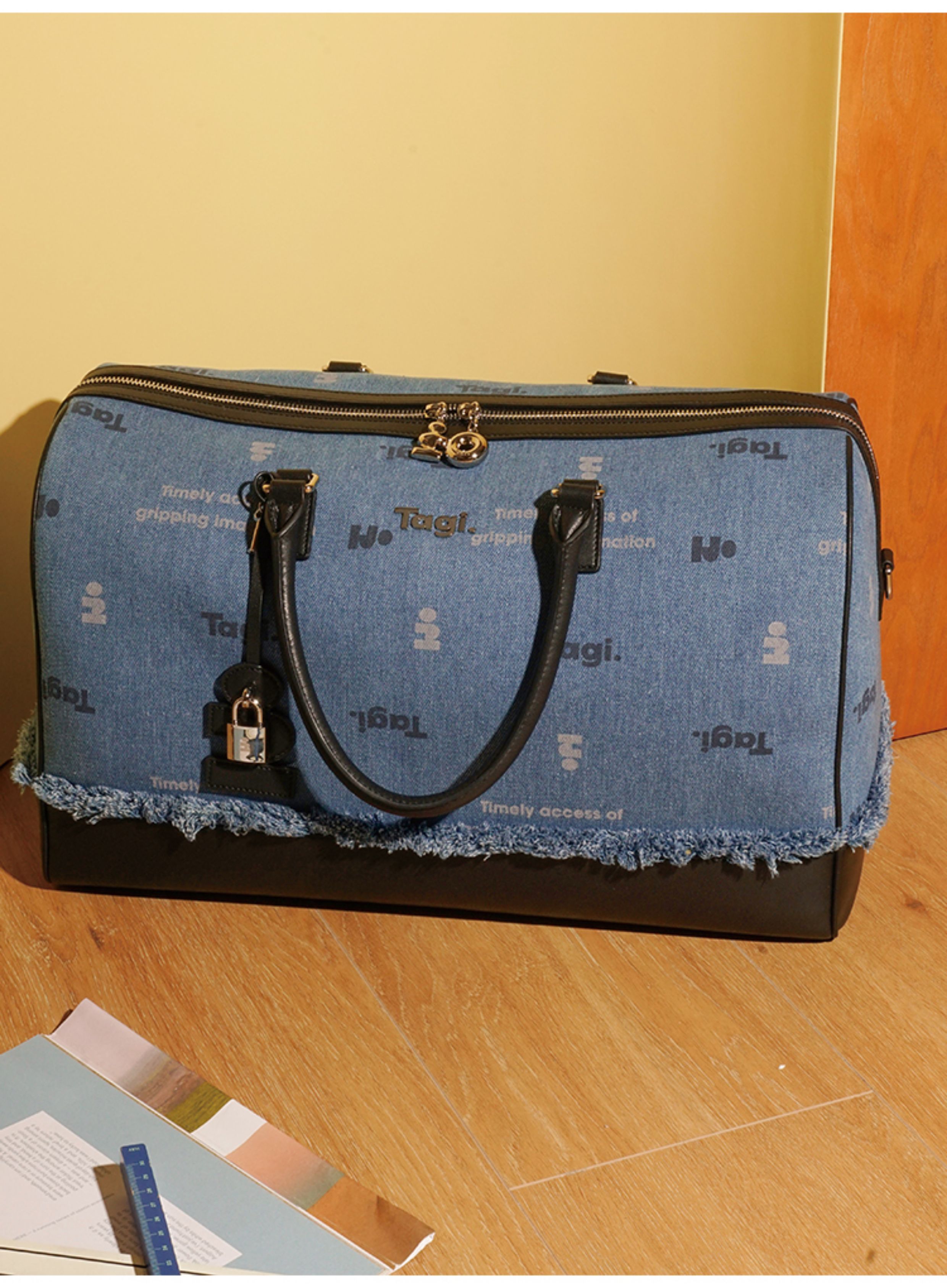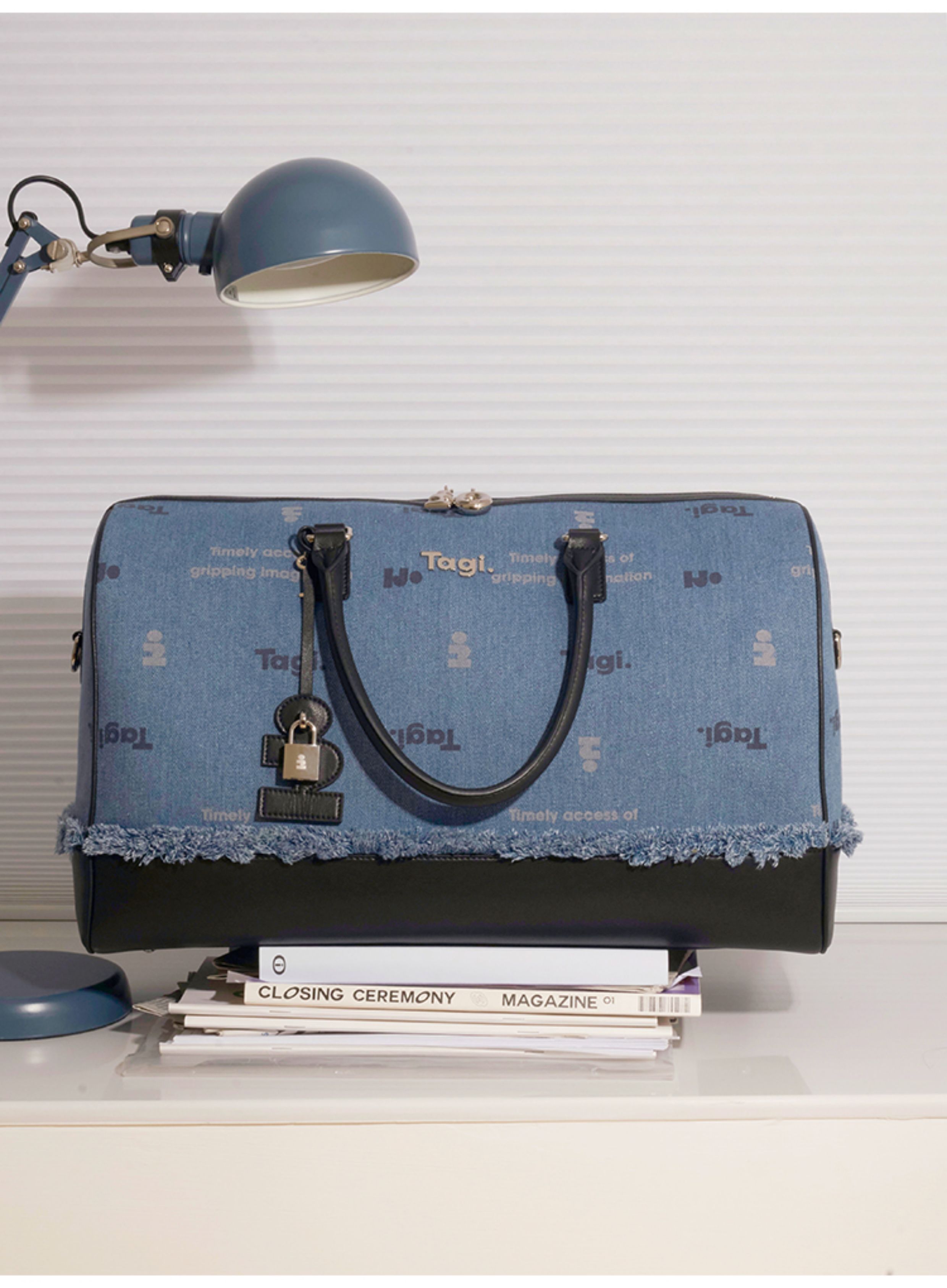 Tagi.《Treasure Chest》Travel Bag Leatherette Shoulder Handbag Crossbody Large Capacity Business Trip Travel Luggage Bag