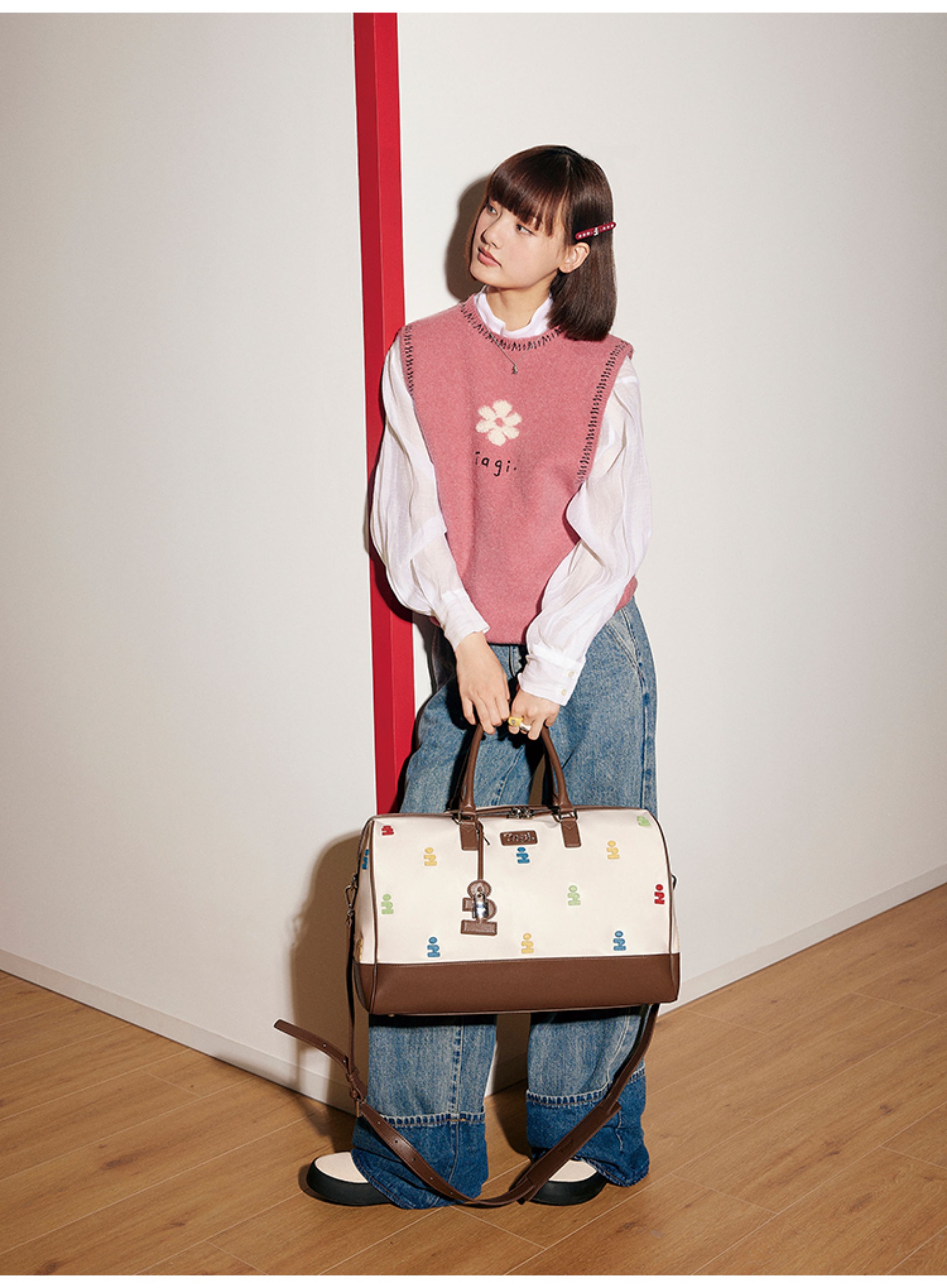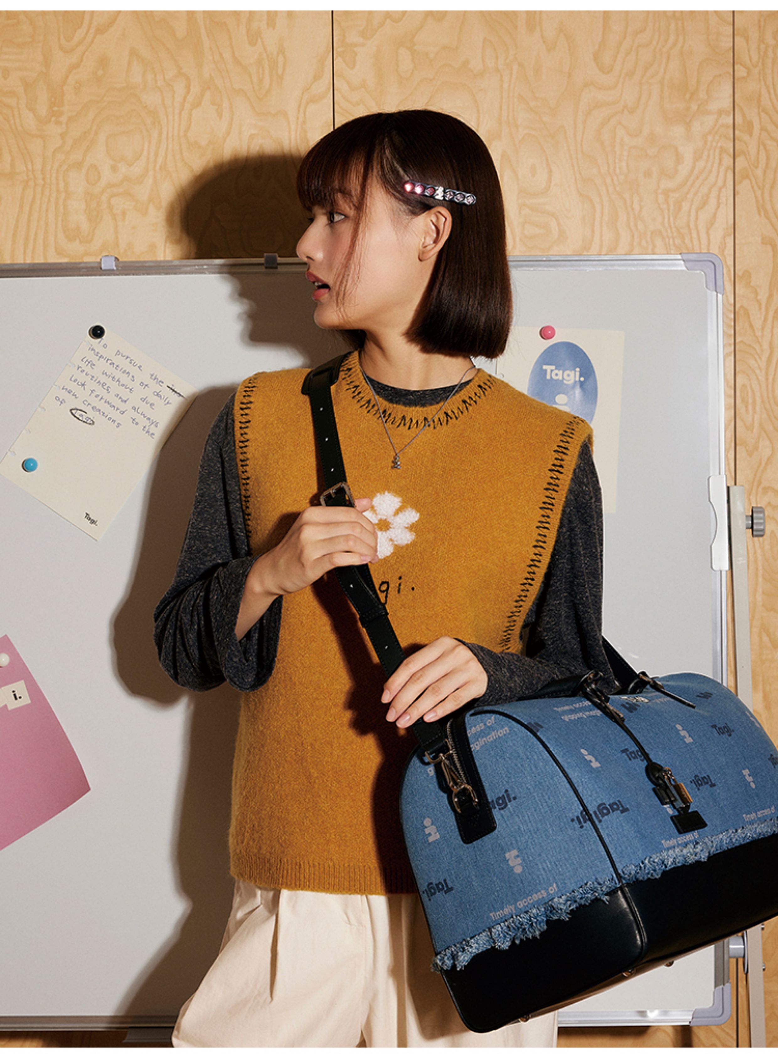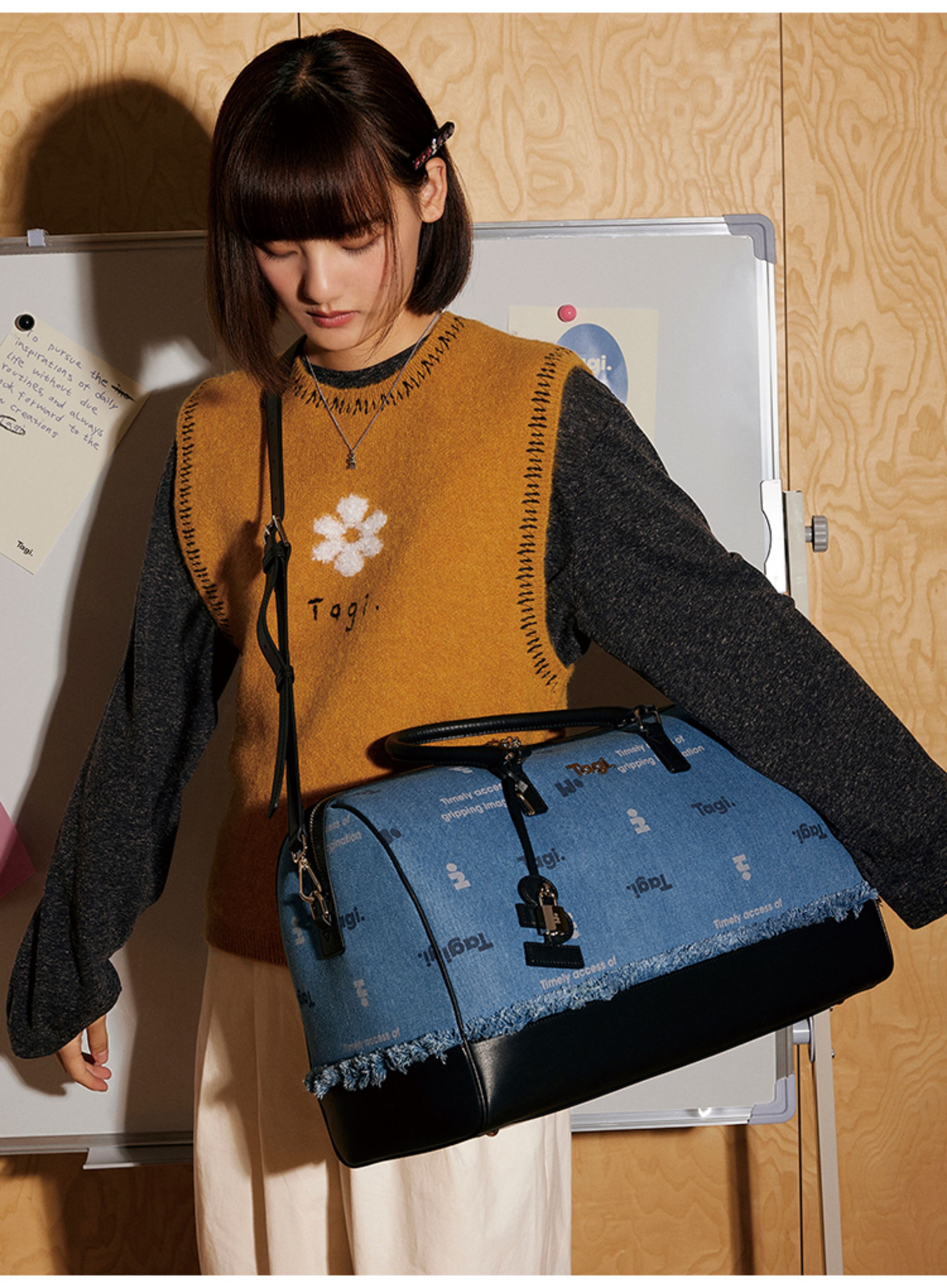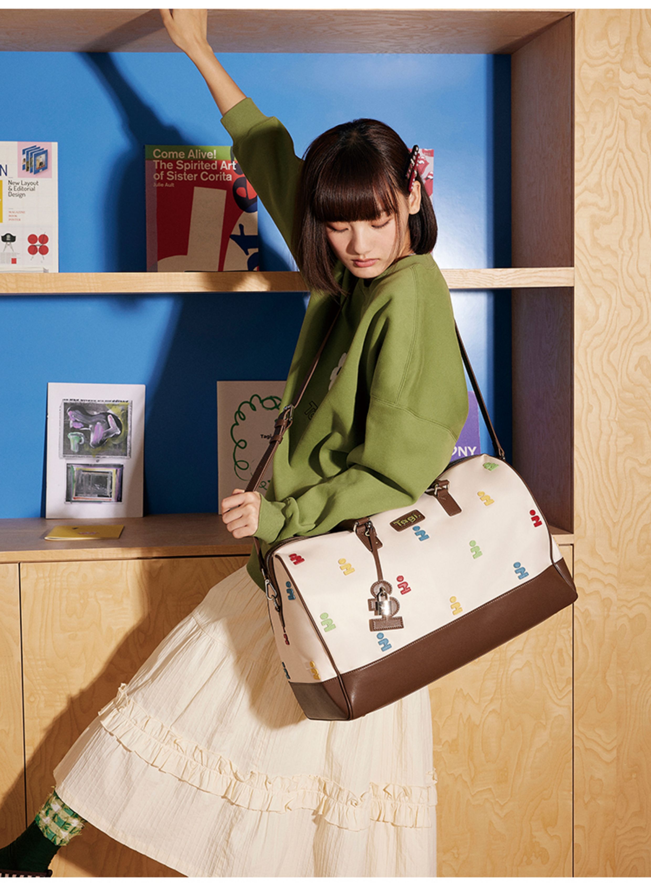 Tagi.《Treasure Chest》Travel Bag Leatherette Shoulder Handbag Crossbody Large Capacity Business Trip Travel Luggage Bag