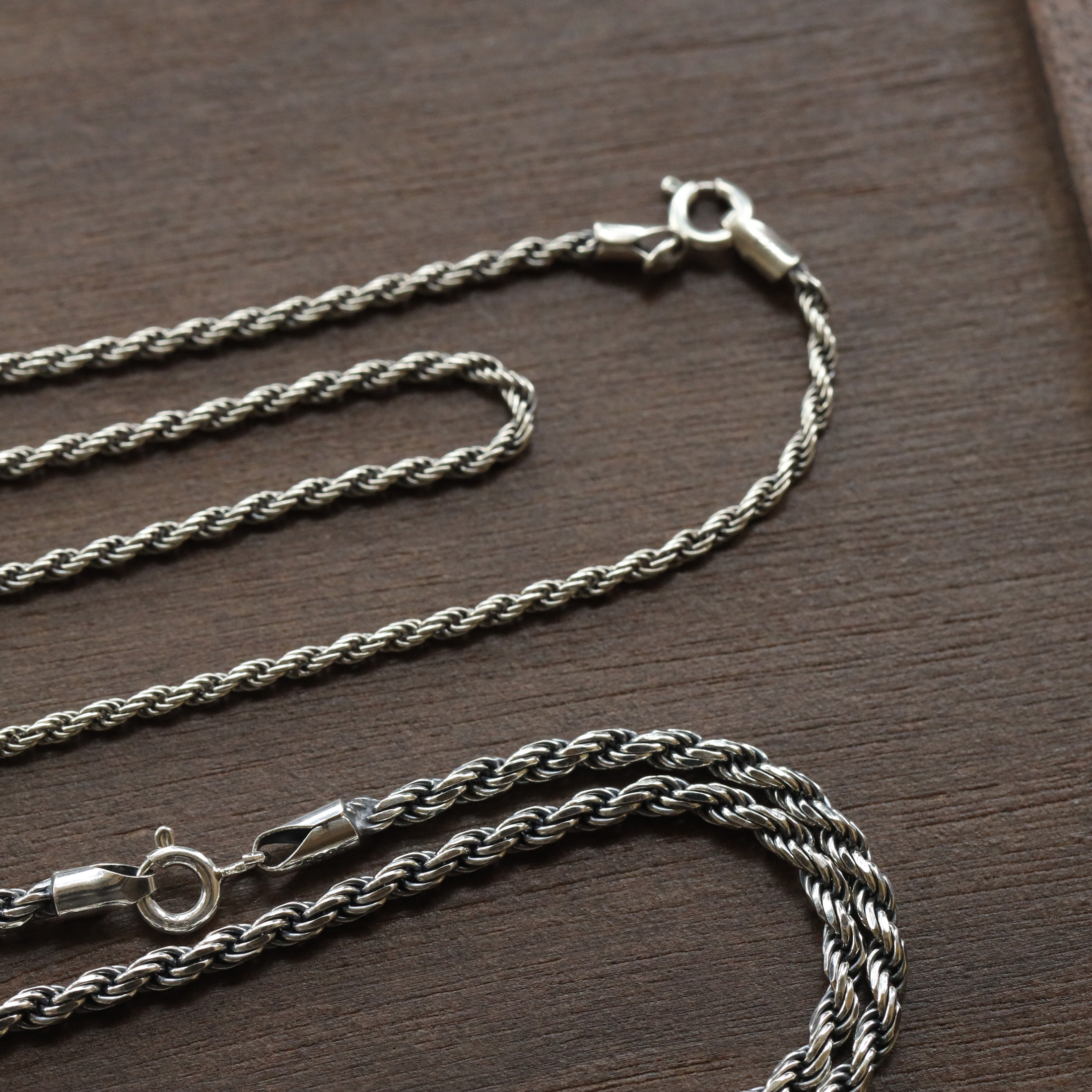 2-3mm Twist Chain 925 Sterling Silver Vintage Distressed Necklace Unisex Trendy Versatile Neutral Silver Jewelry Simple Sweater Chain