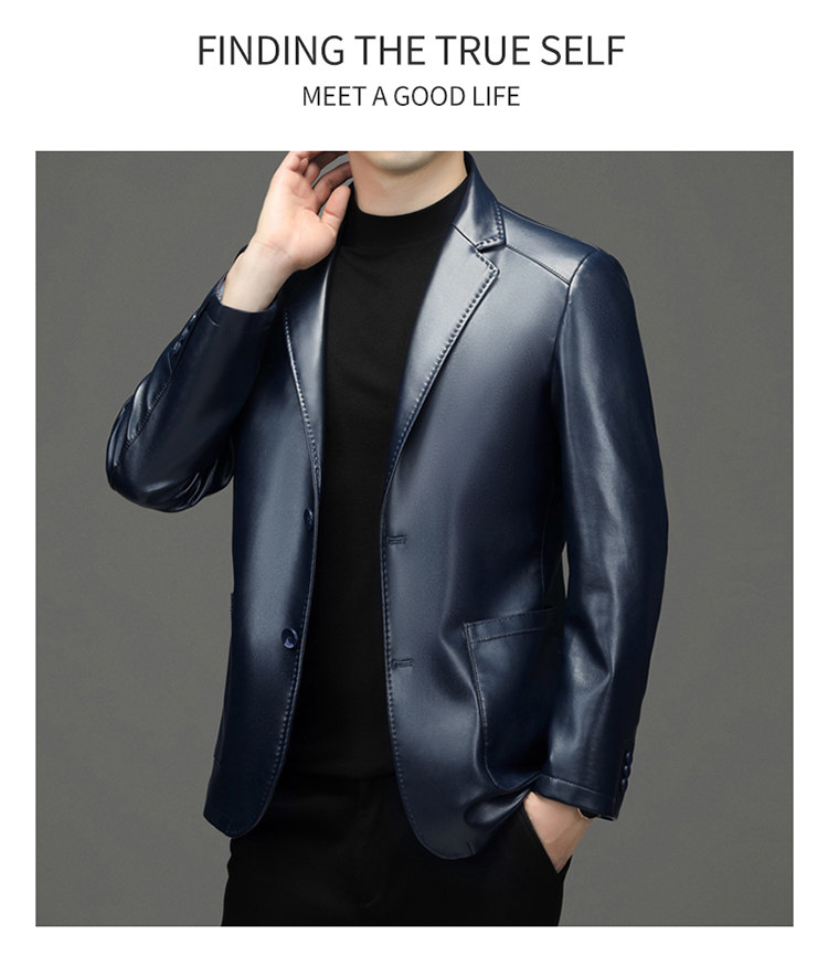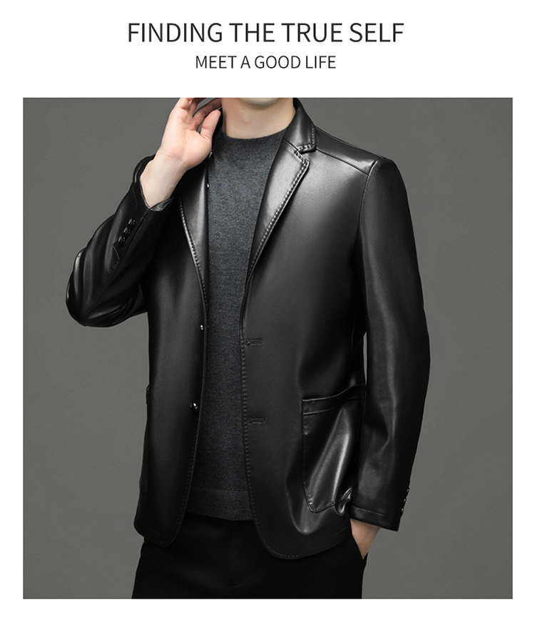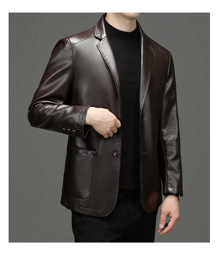 Pierre Cardin Genuine Leather Suit for Men, Autumn and Winter Leather Jacket, Fleece-Lined and Thickened Sheepskin Leather Suit, Men's Leather Jacket Coat