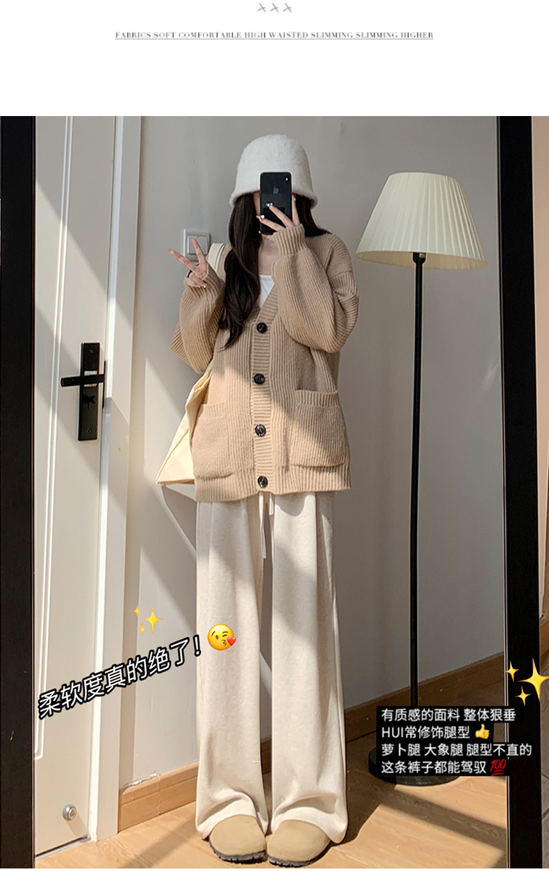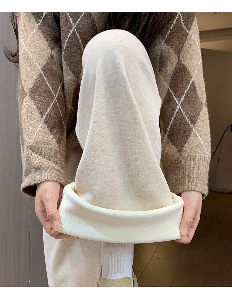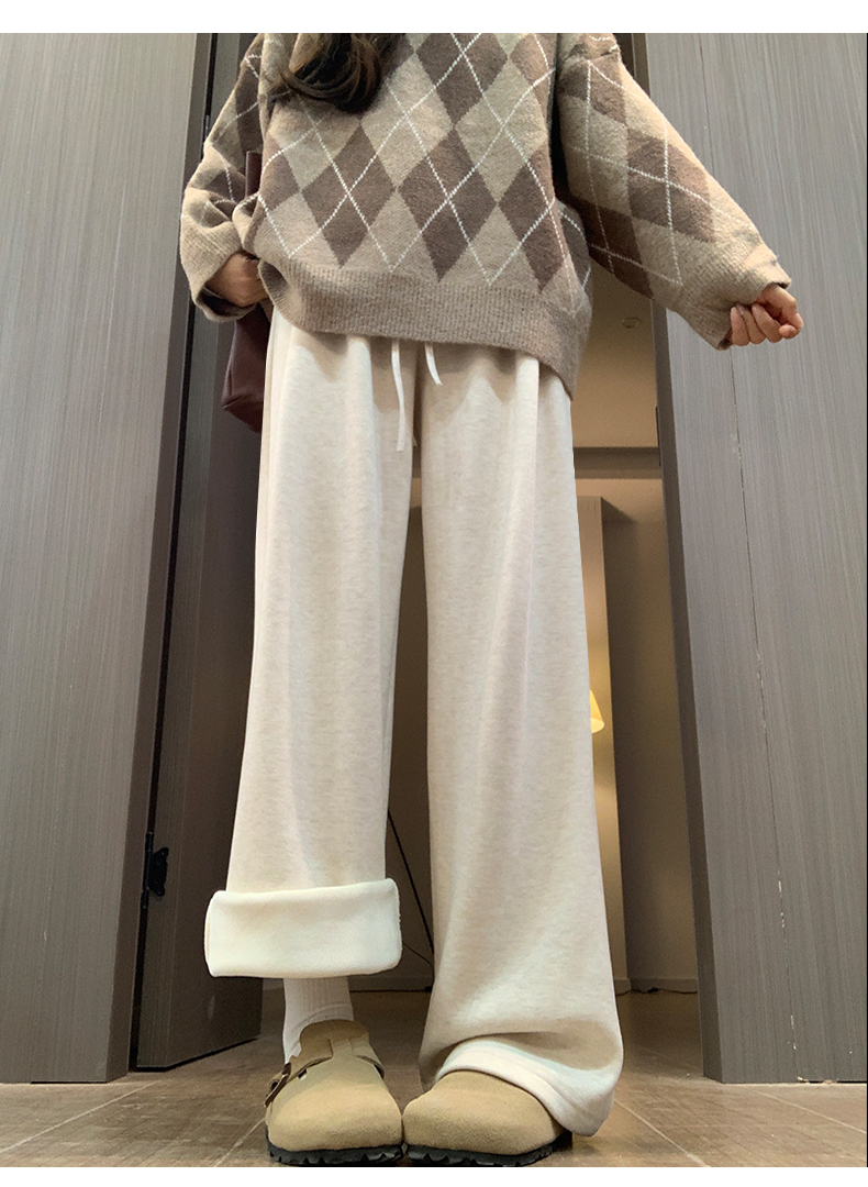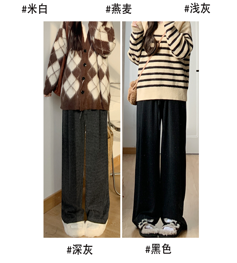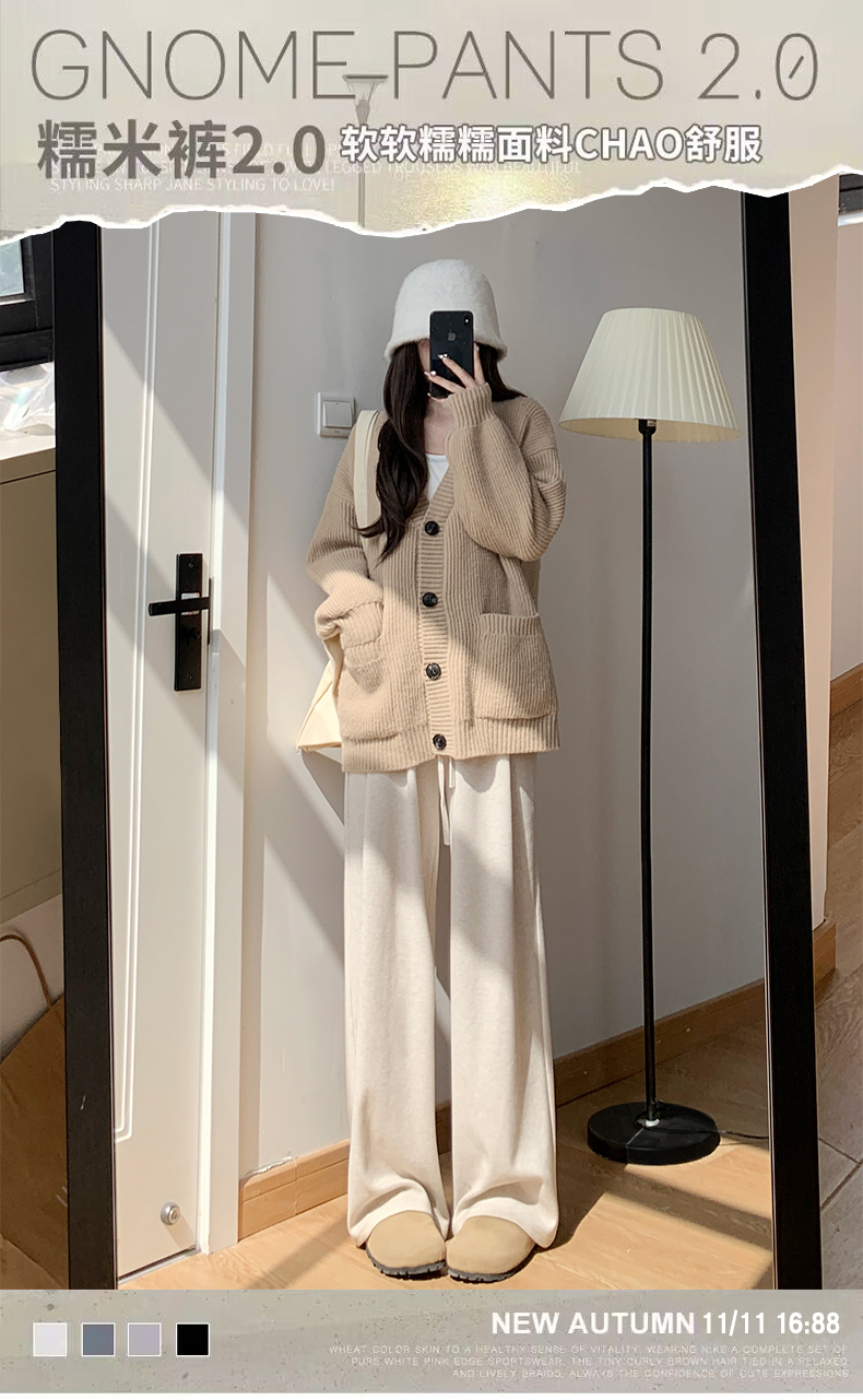 White Glutinous Rice Pants for Women, Autumn and Winter 2025 New High-Waisted Casual Fleece-Lined Wide-Leg Pants for Petite Figures, Spring and Autumn Knit Pants