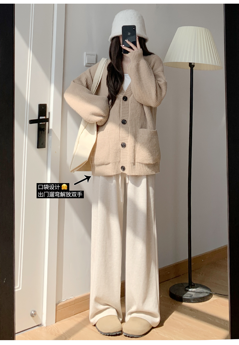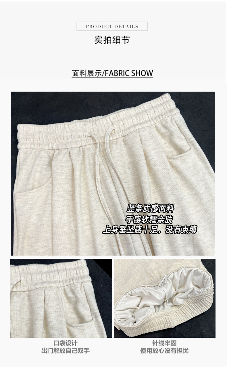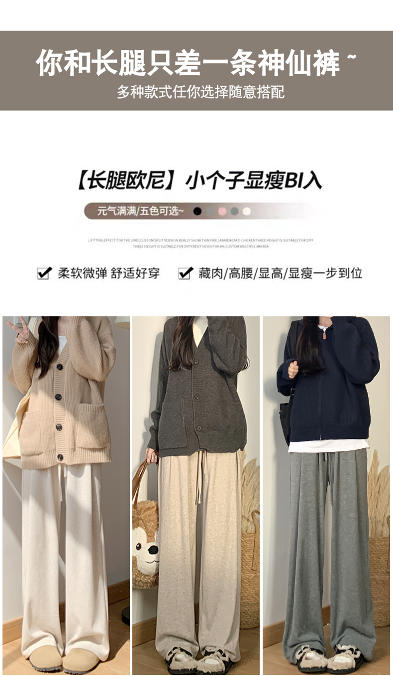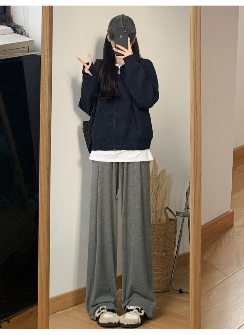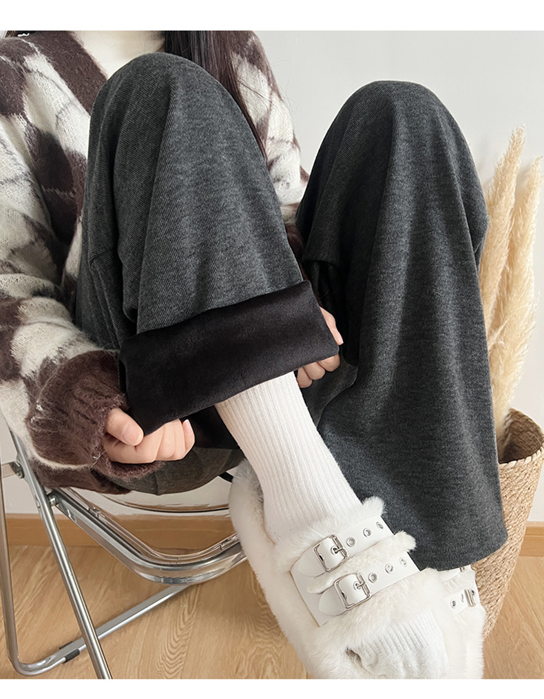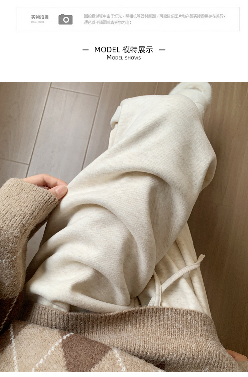 White Glutinous Rice Pants for Women, Autumn and Winter 2025 New High-Waisted Casual Fleece-Lined Wide-Leg Pants for Petite Figures, Spring and Autumn Knit Pants