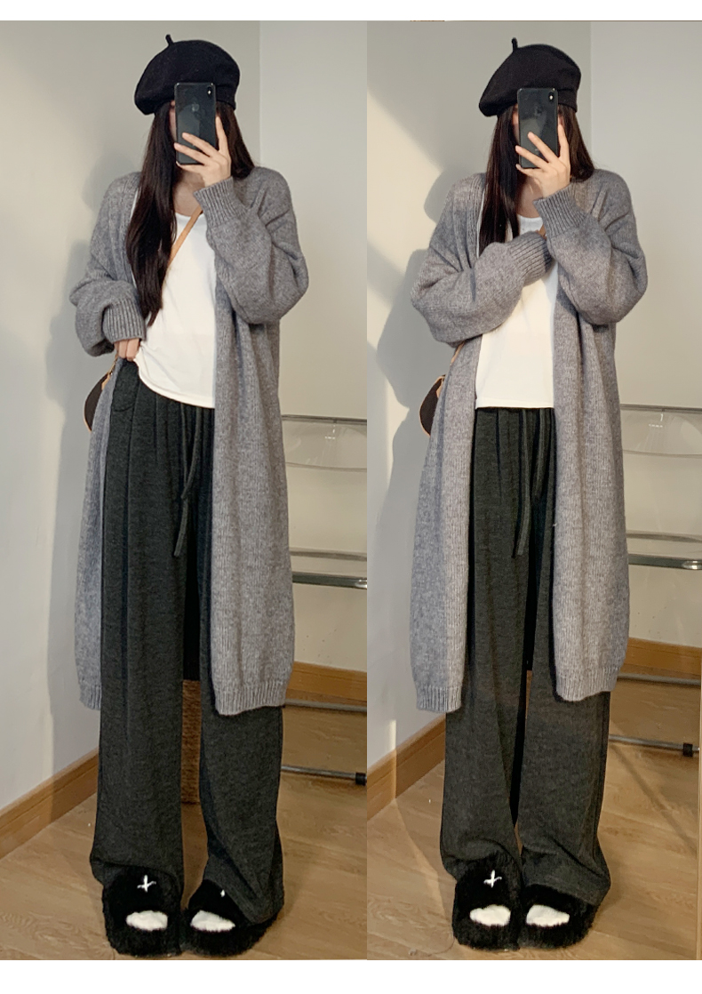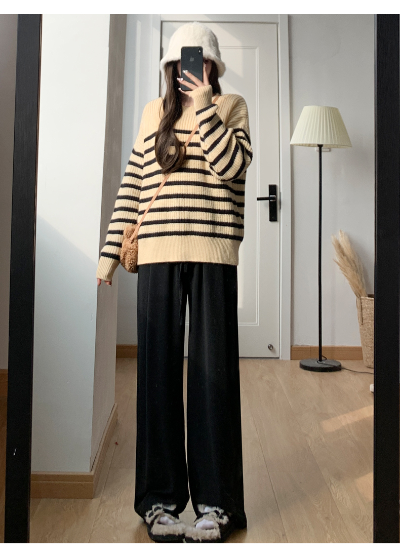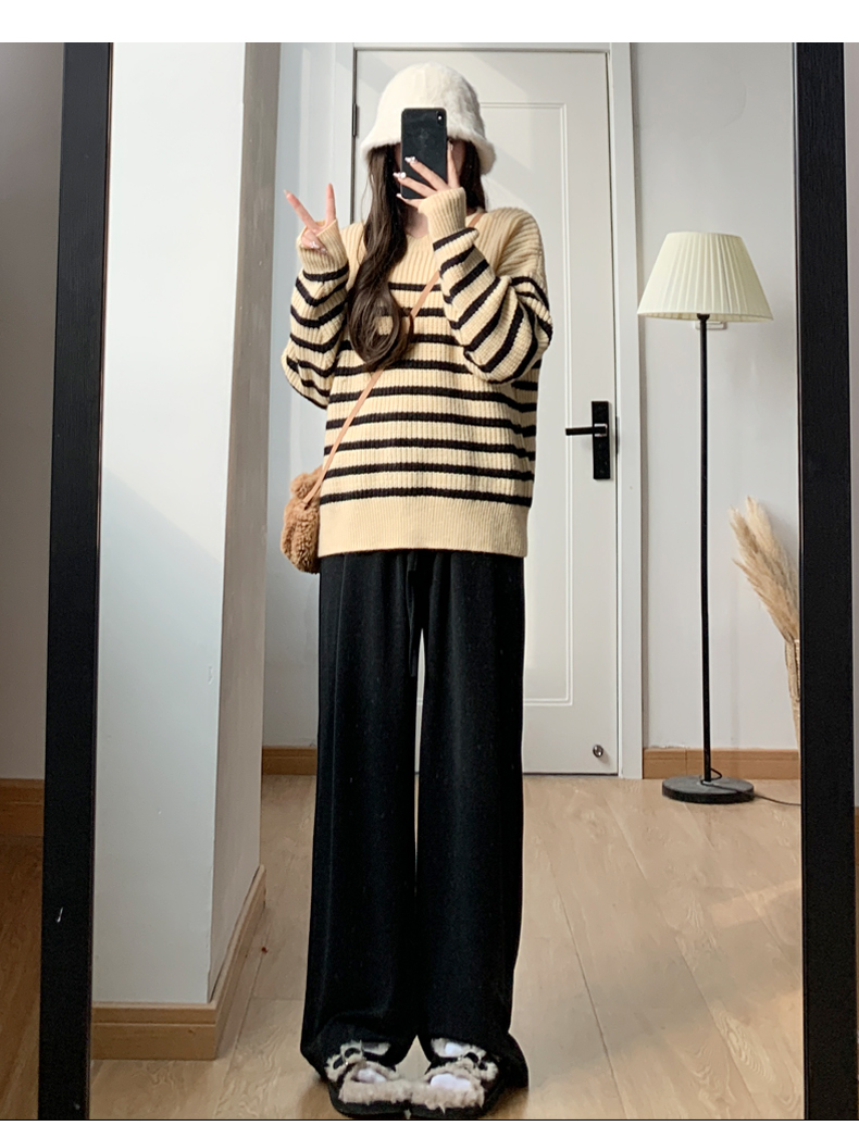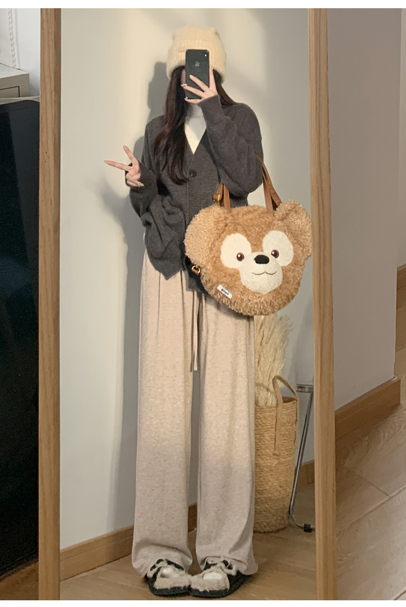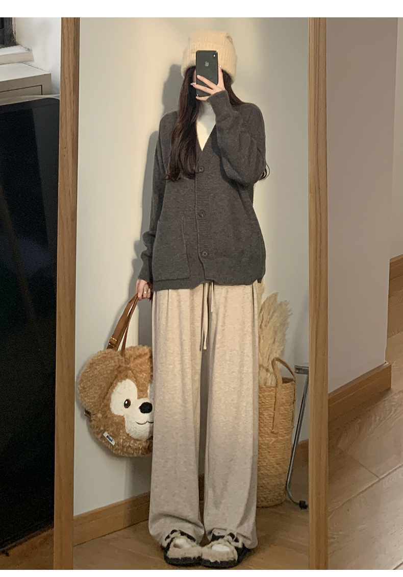 White Glutinous Rice Pants for Women, Autumn and Winter 2025 New High-Waisted Casual Fleece-Lined Wide-Leg Pants for Petite Figures, Spring and Autumn Knit Pants