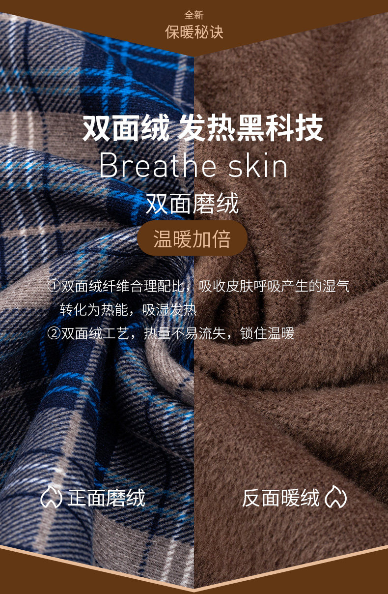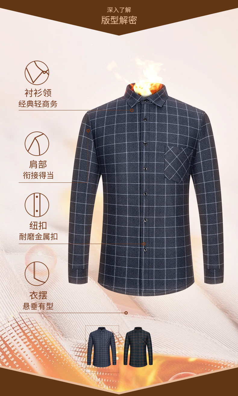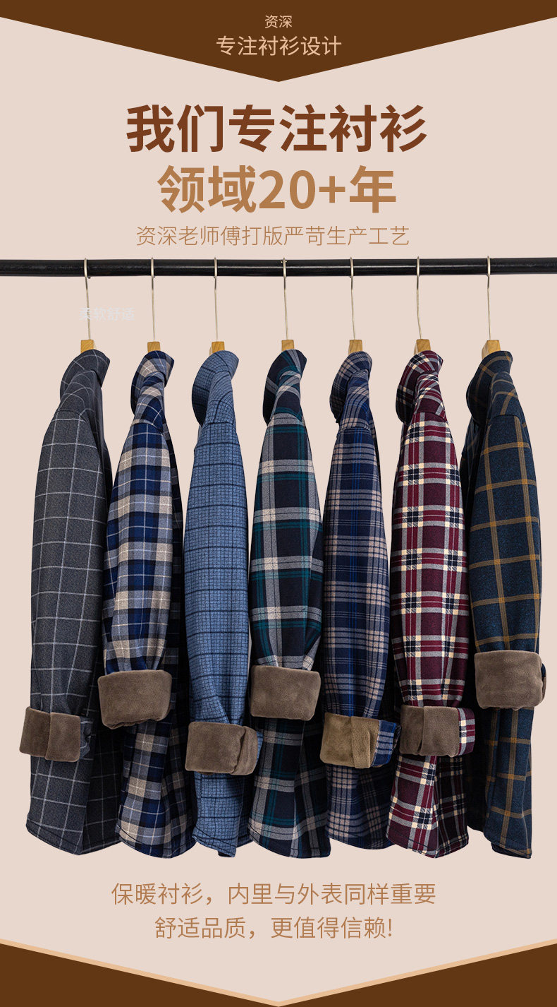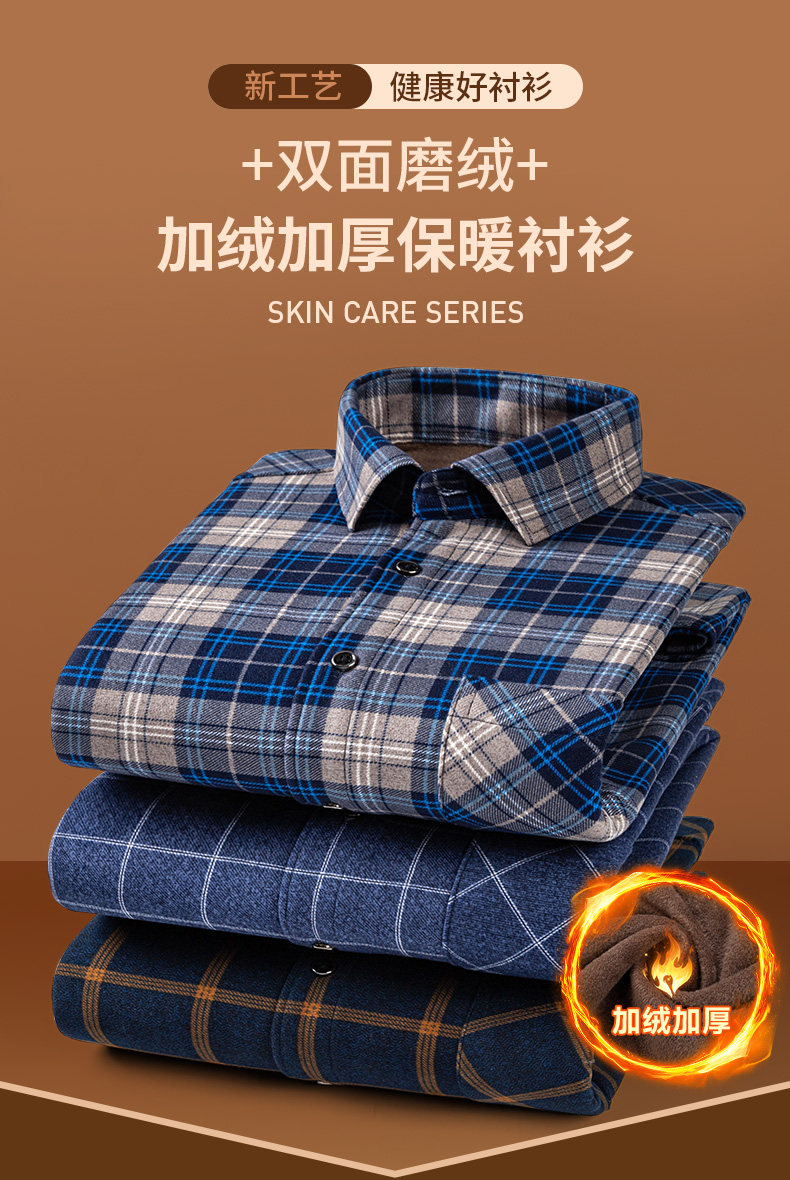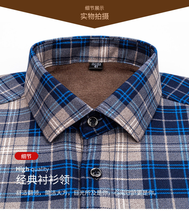 Romon Fleece-Lined Warm Shirt for Men, Long-Sleeved, Thick Plaid Shirt for Autumn and Winter, Father's Shirt, Middle-Aged and Elderly Men's Top