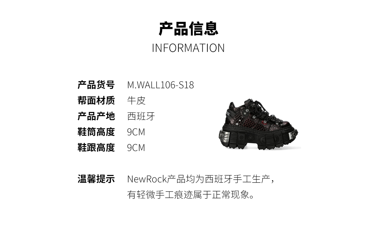 Newrock Spanish Trendy Brand Autumn and Winter New Dark Punk Y2K Metal Height-Increasing Thick-Soled Shoes Tank Shoes