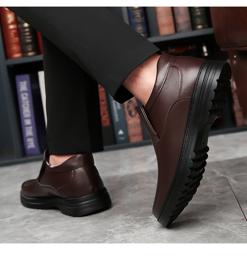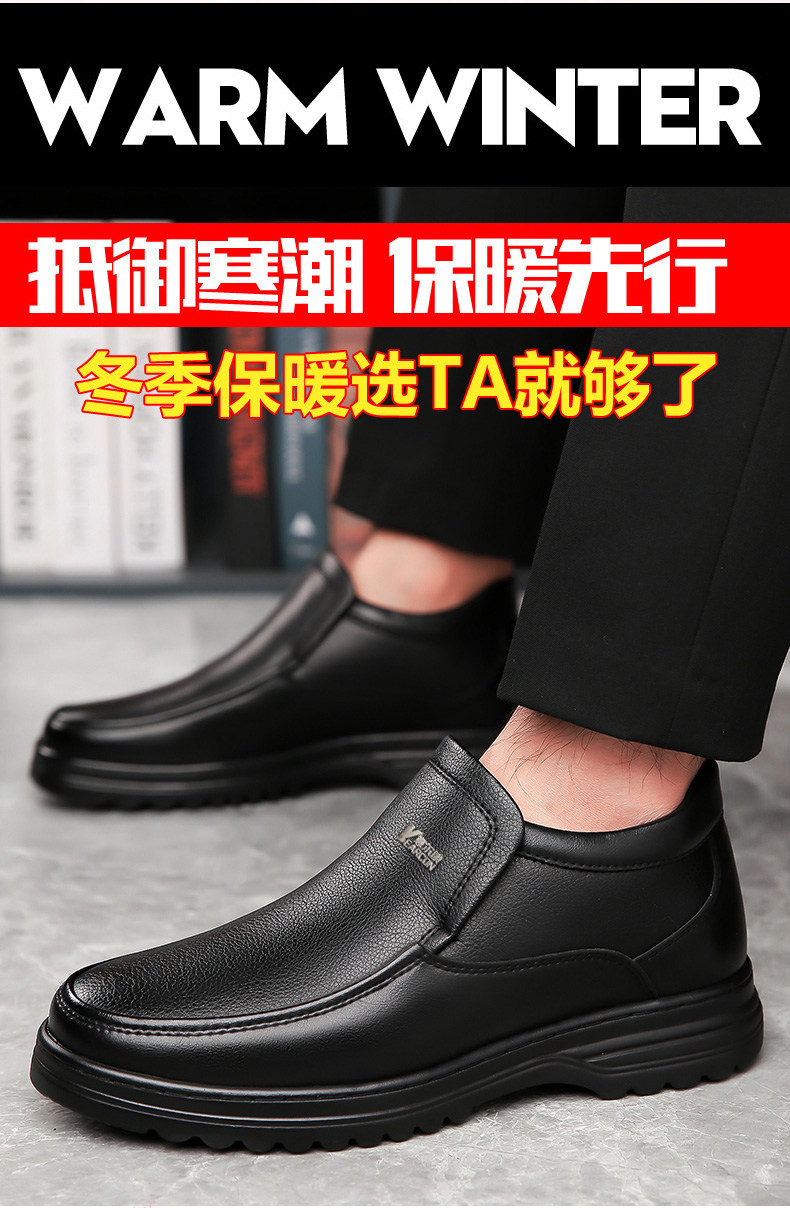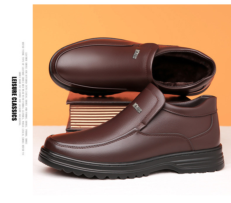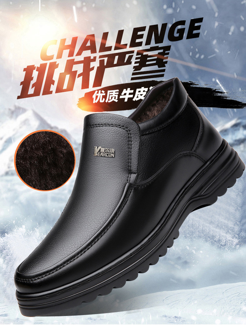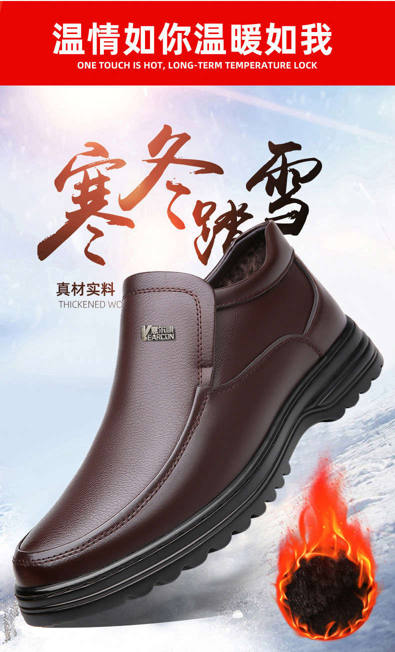 Yierkan 2025 Winter New Style Fleece-Lined Warm Leather Shoes for Men, Casual Non-Slip Genuine Leather Middle-Aged and Elderly Dad's Cotton Shoes