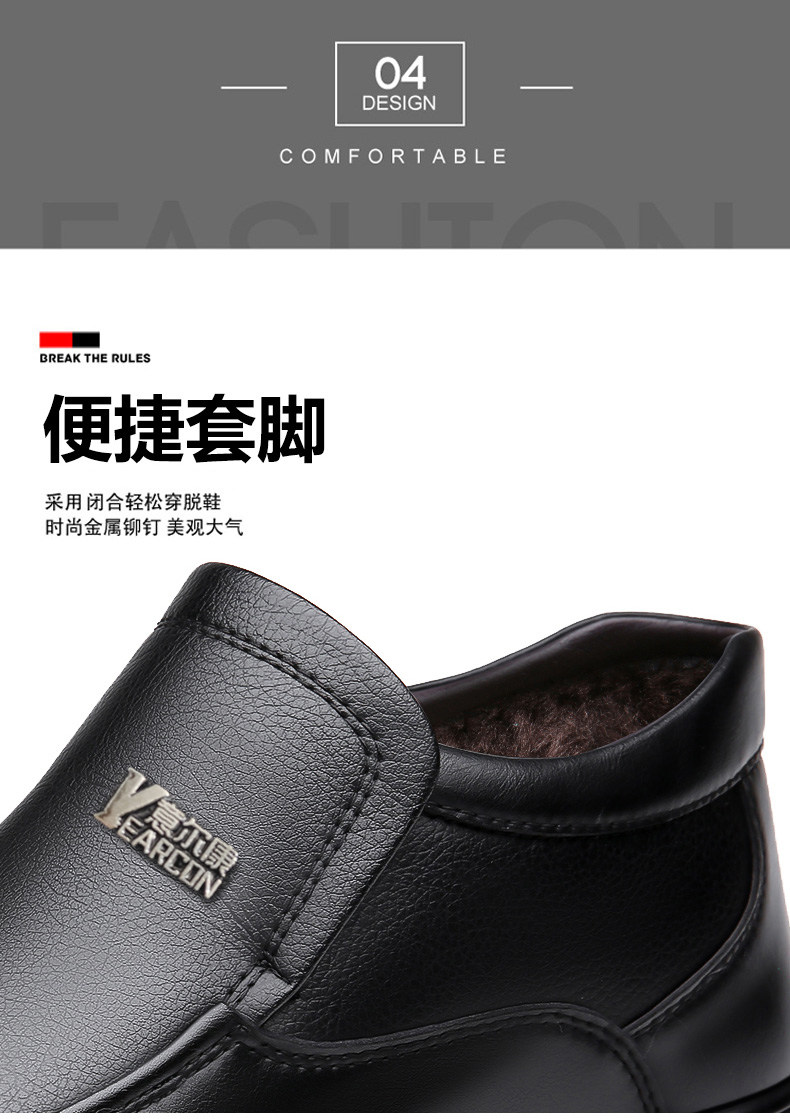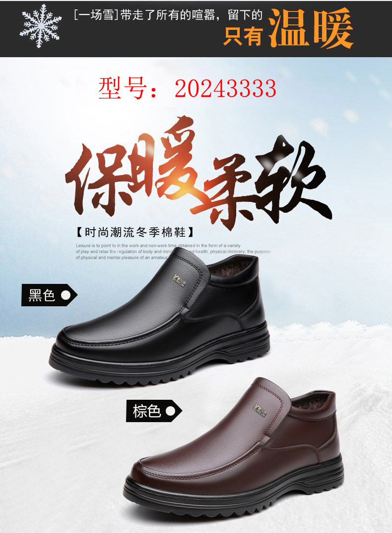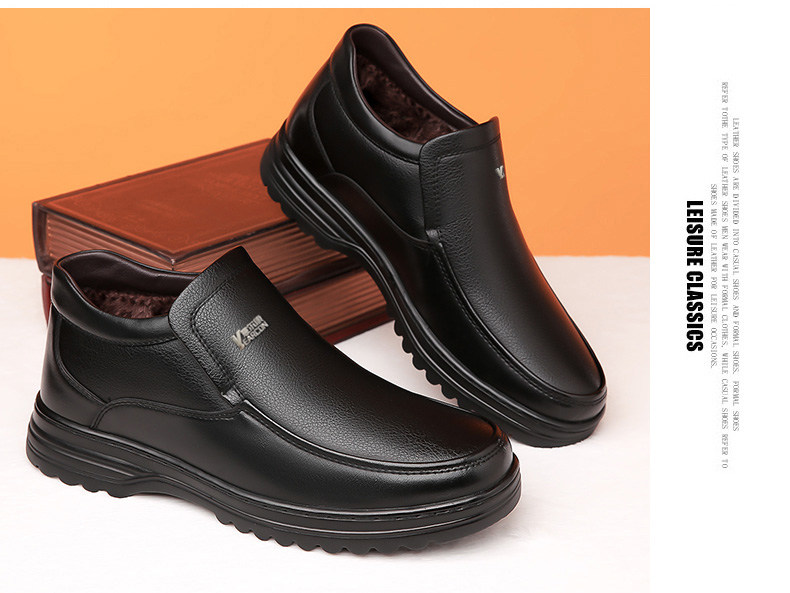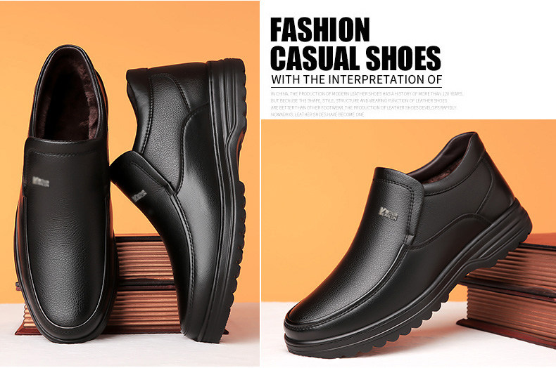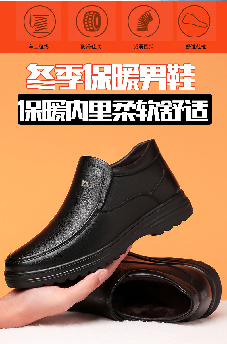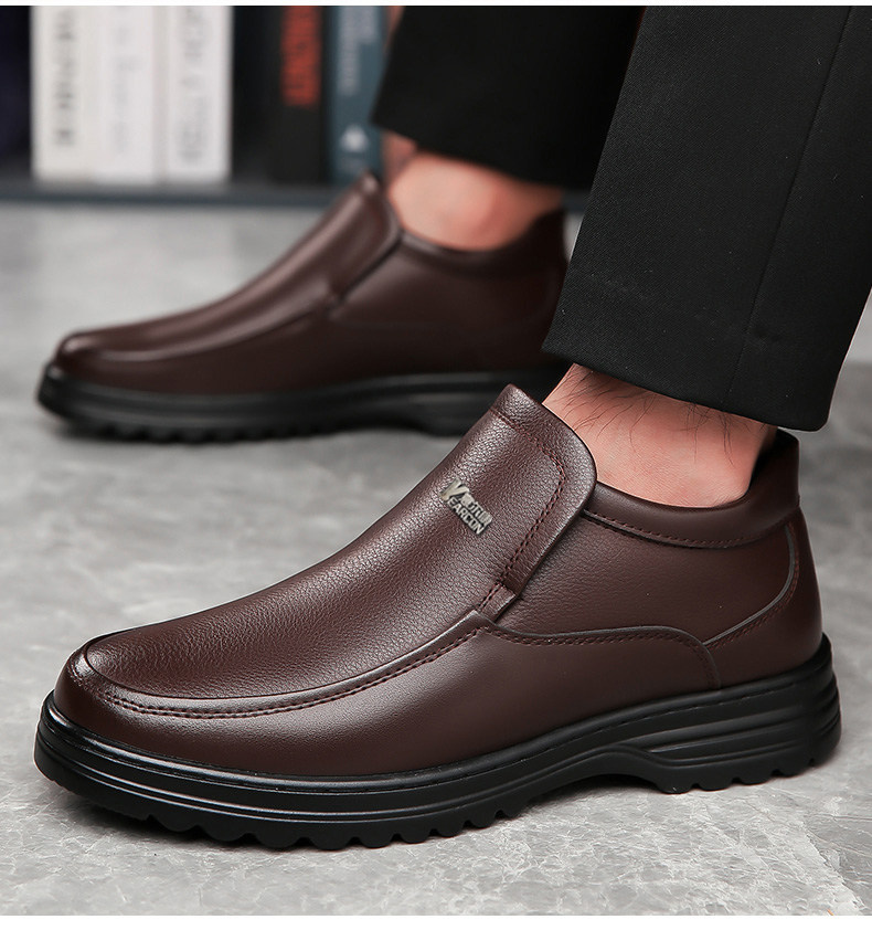 Yierkan 2025 Winter New Style Fleece-Lined Warm Leather Shoes for Men, Casual Non-Slip Genuine Leather Middle-Aged and Elderly Dad's Cotton Shoes