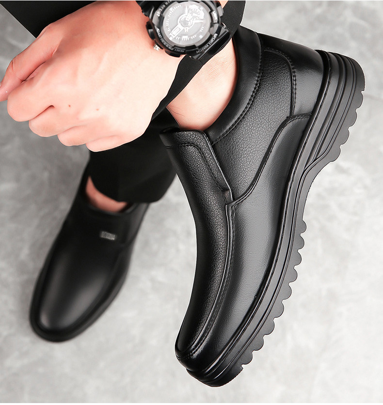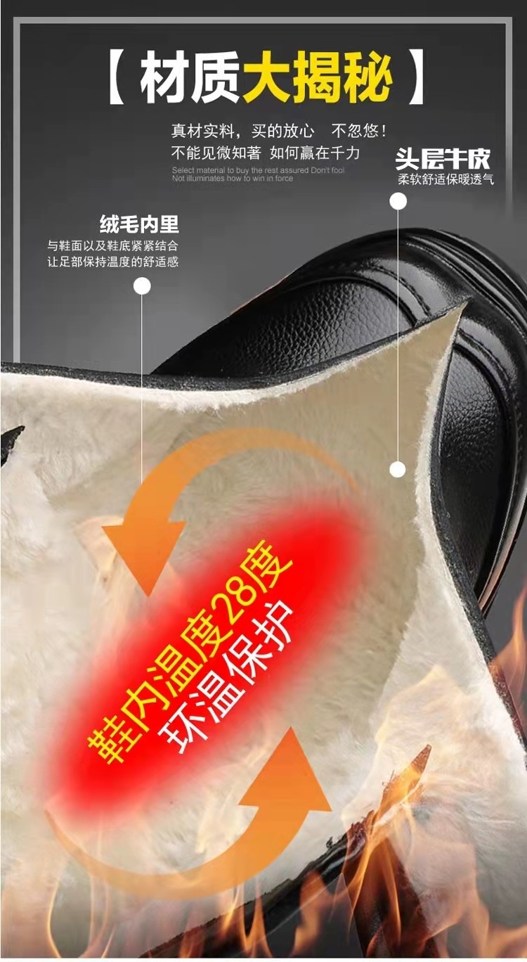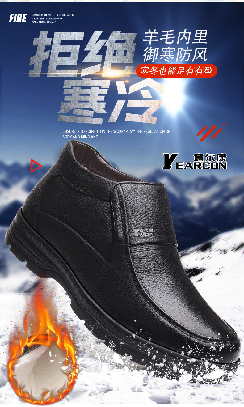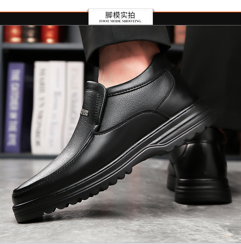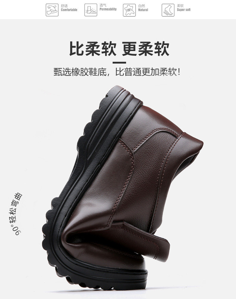 Yierkan 2025 Winter New Style Fleece-Lined Warm Leather Shoes for Men, Casual Non-Slip Genuine Leather Middle-Aged and Elderly Dad's Cotton Shoes