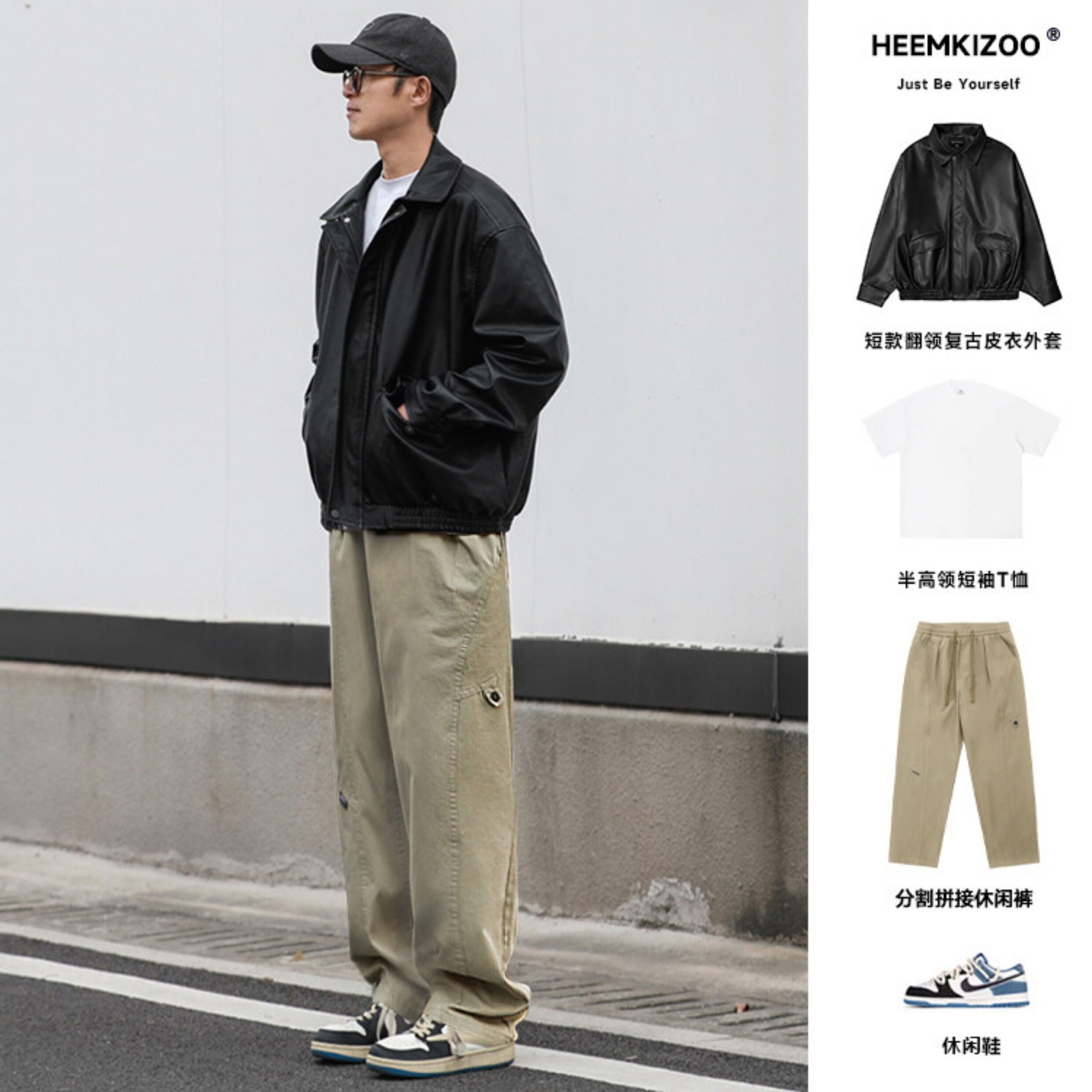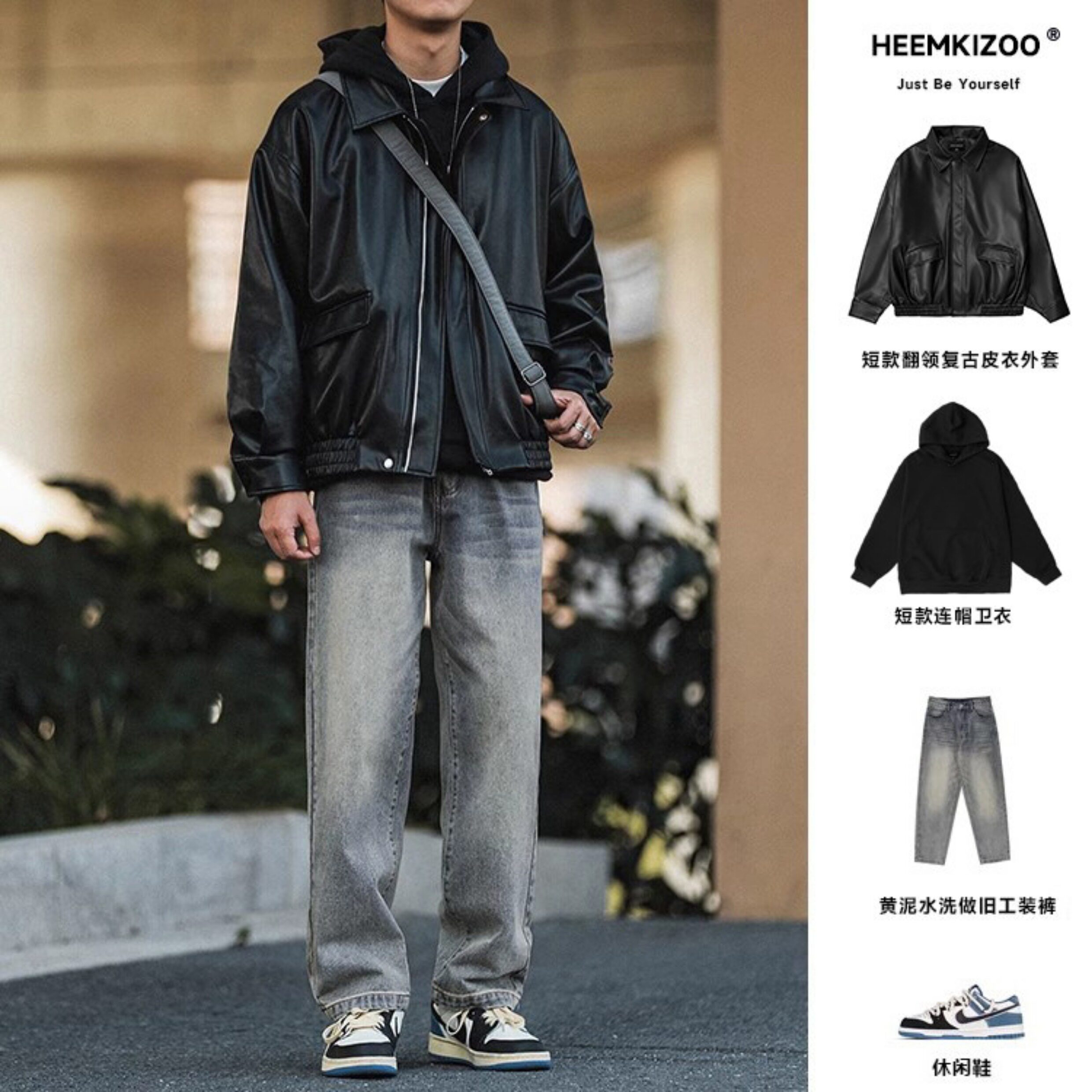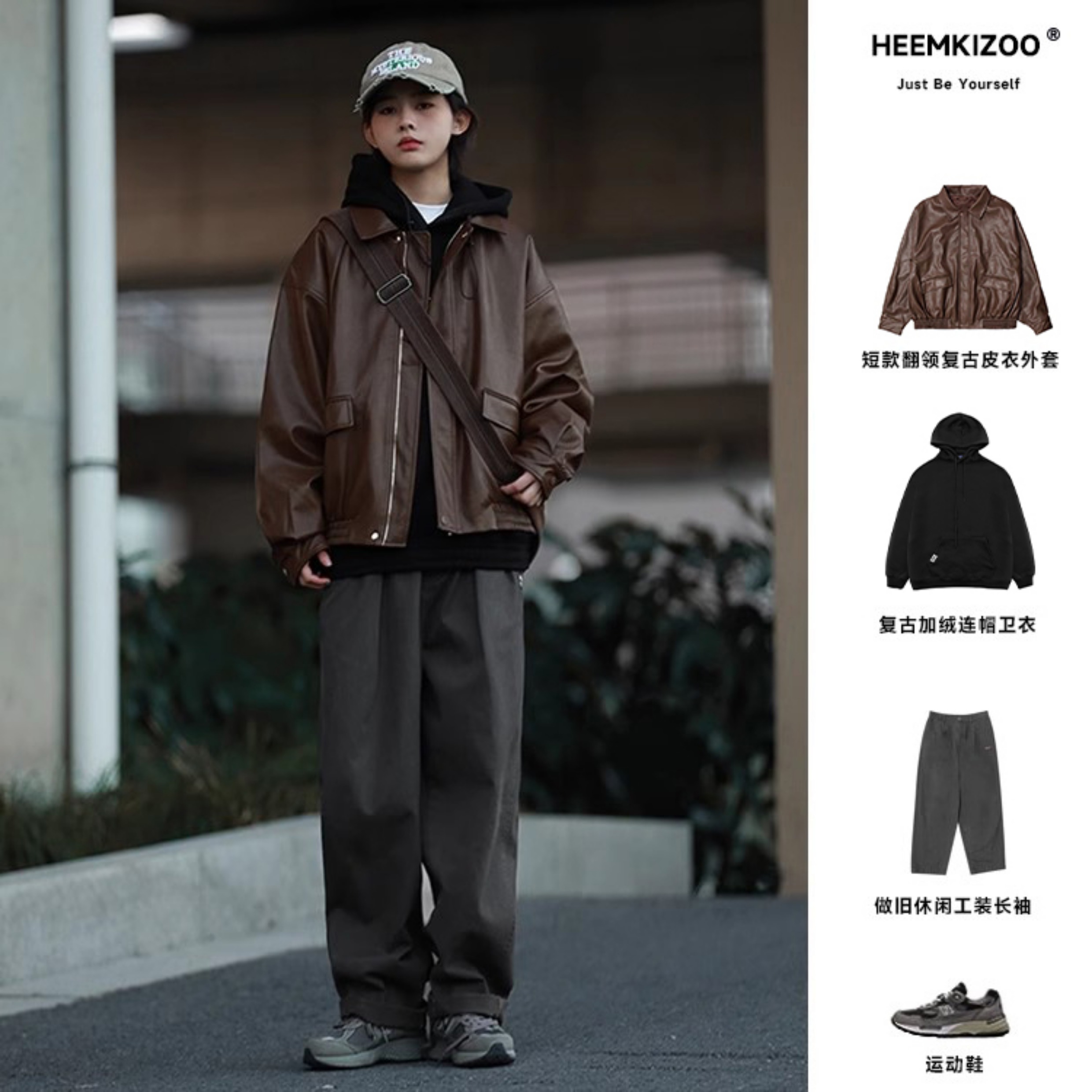 Heyma Qizuo American-Style Lapel Leather Short Jacket, Retro Spring and Autumn Style, Unisex Casual Melard Motorcycle Jacket