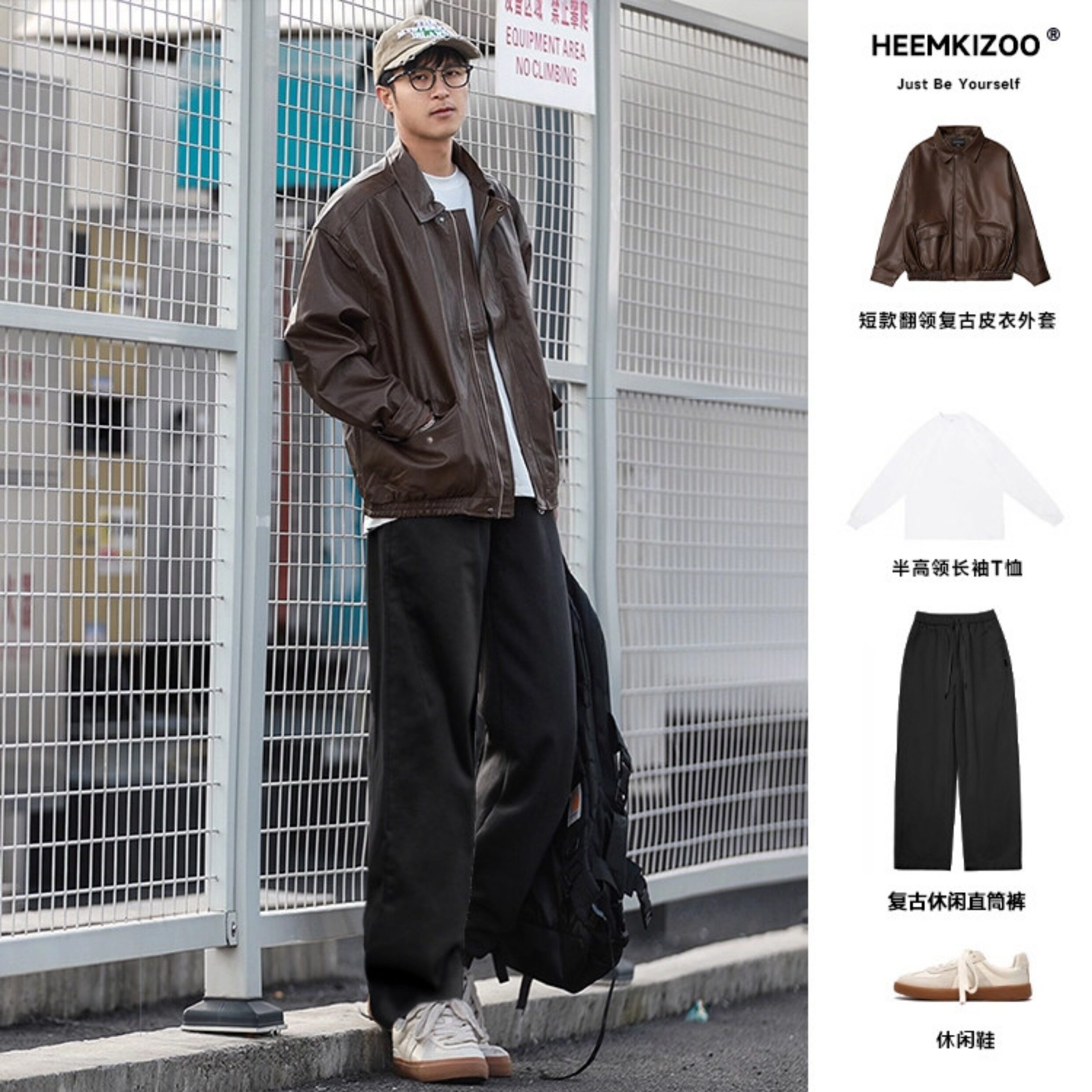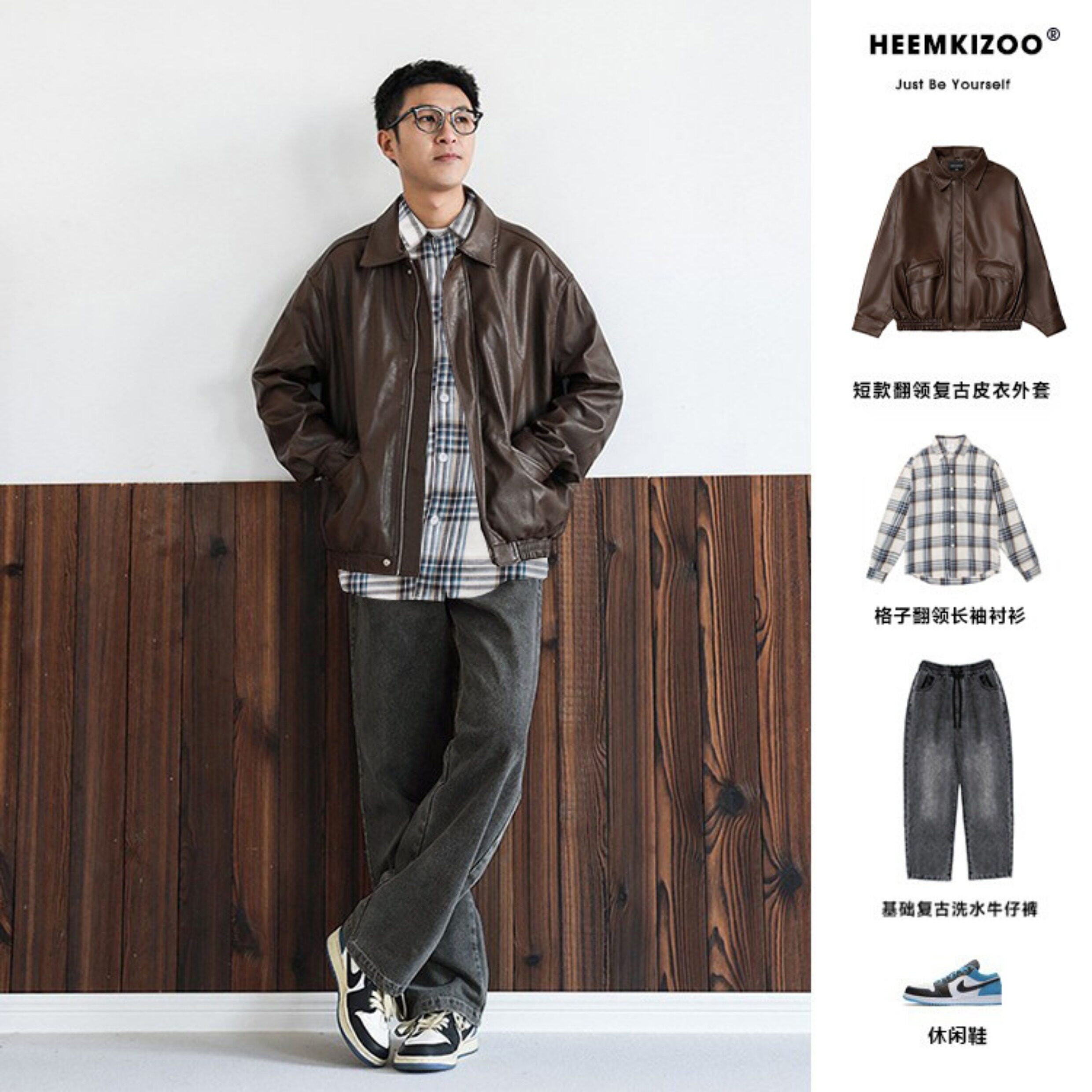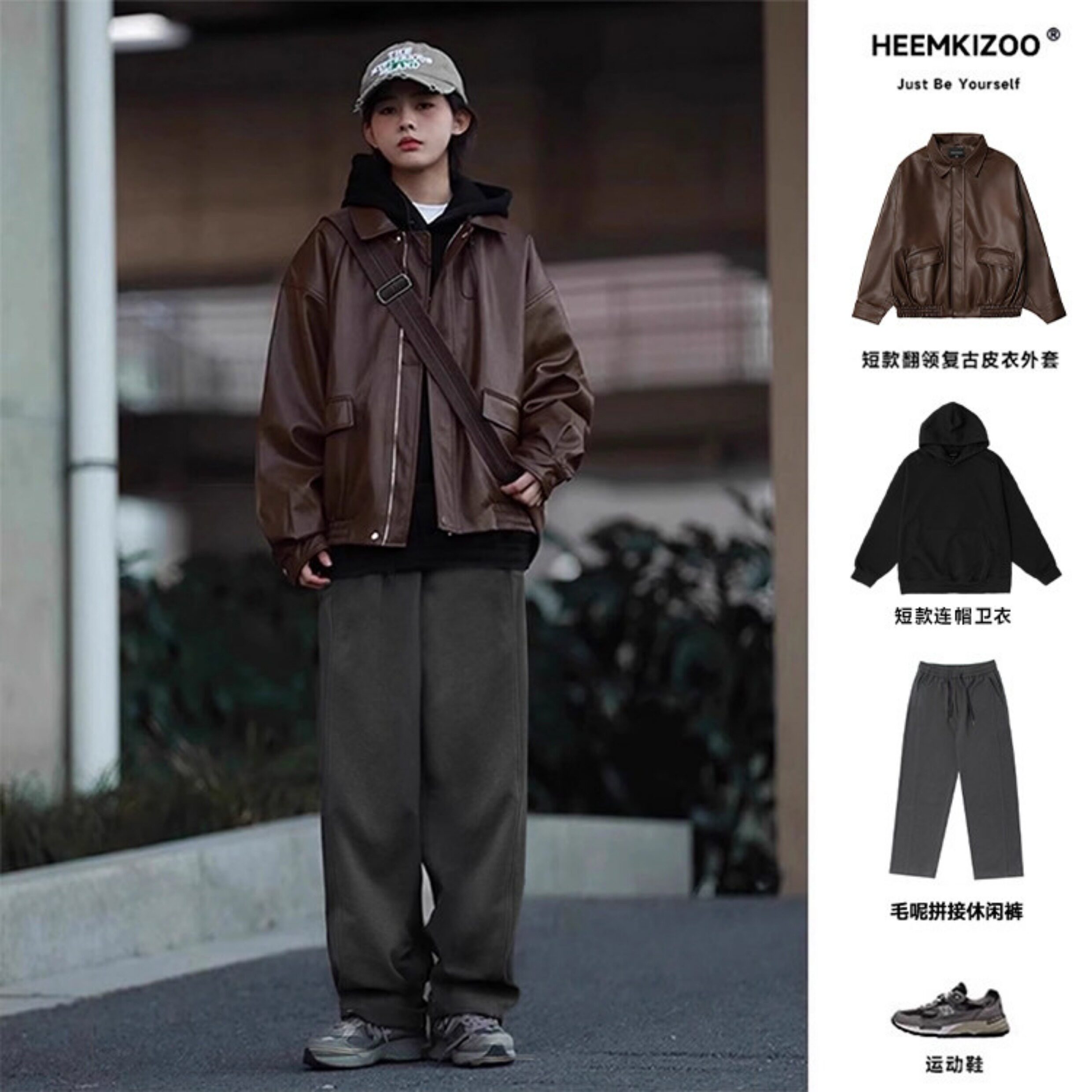 Heyma Qizuo American-Style Lapel Leather Short Jacket, Retro Spring and Autumn Style, Unisex Casual Melard Motorcycle Jacket
