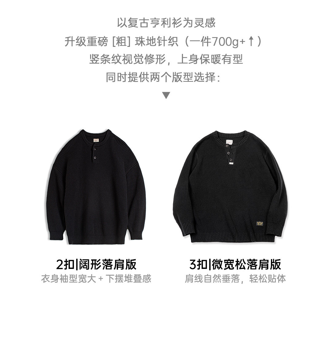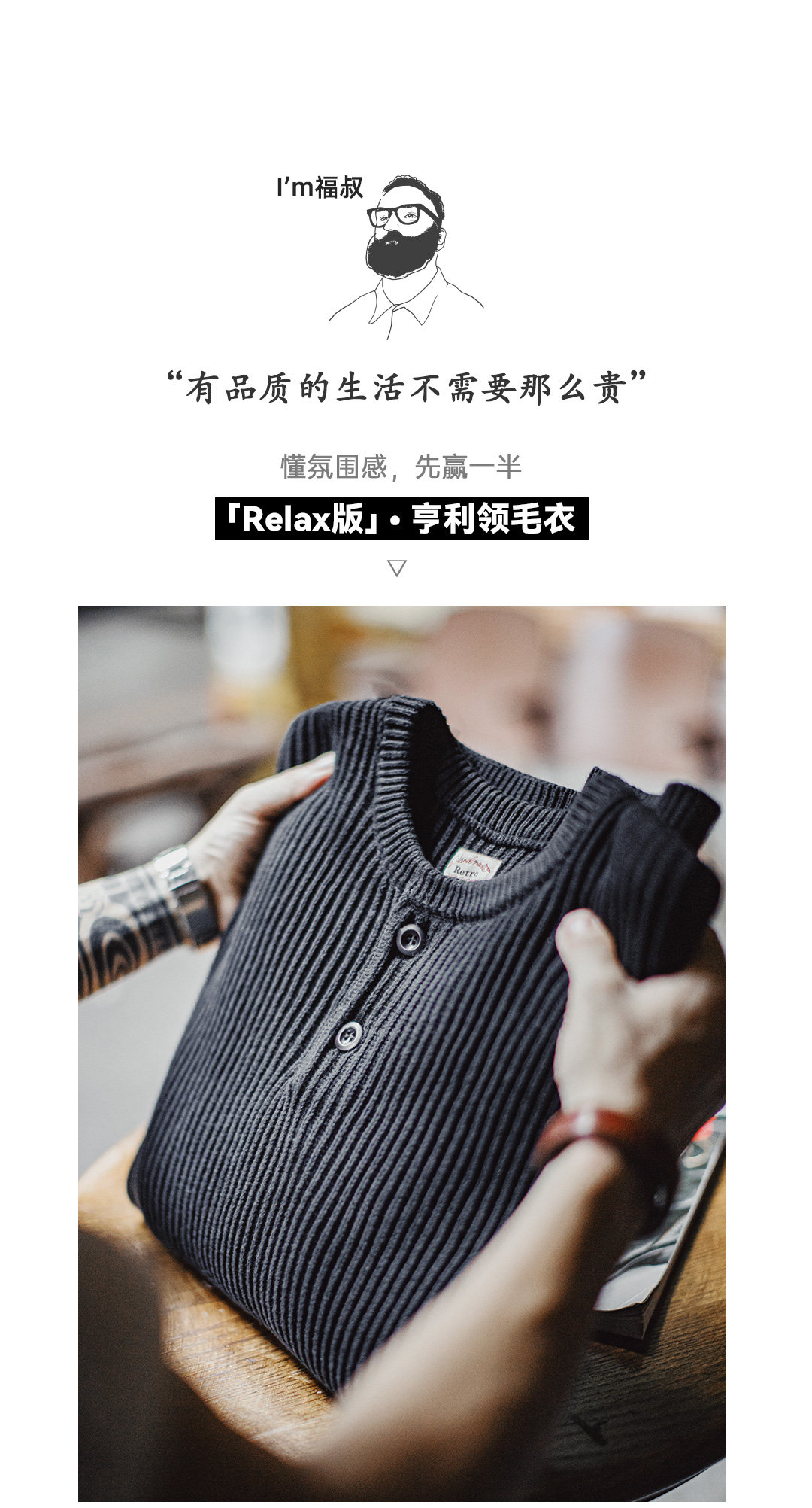 Madden Workwear American Retro Vertical Striped Henry Collar Sweater Loose Thickened Black Base Knitwear for Men Autumn and Winter