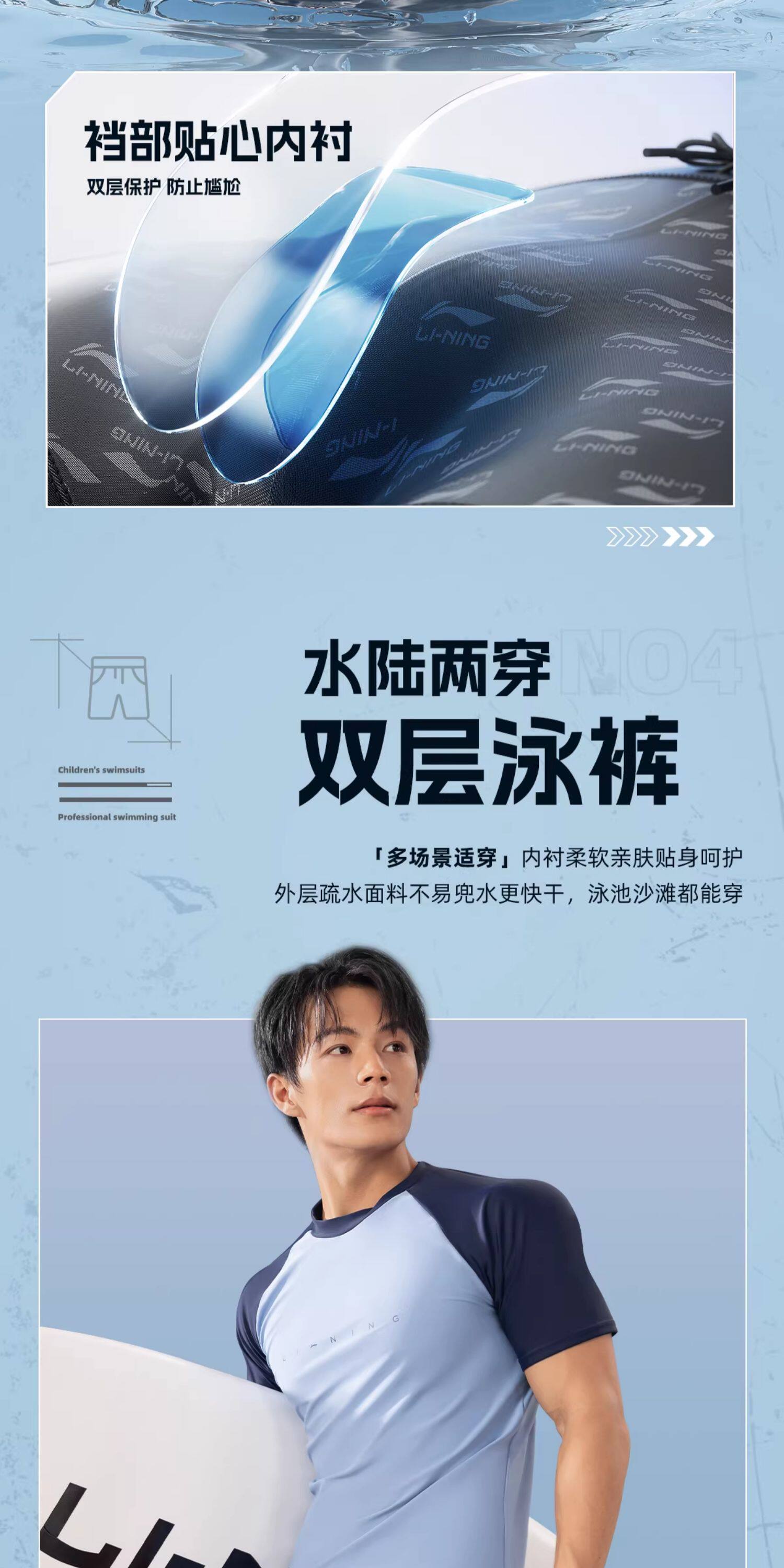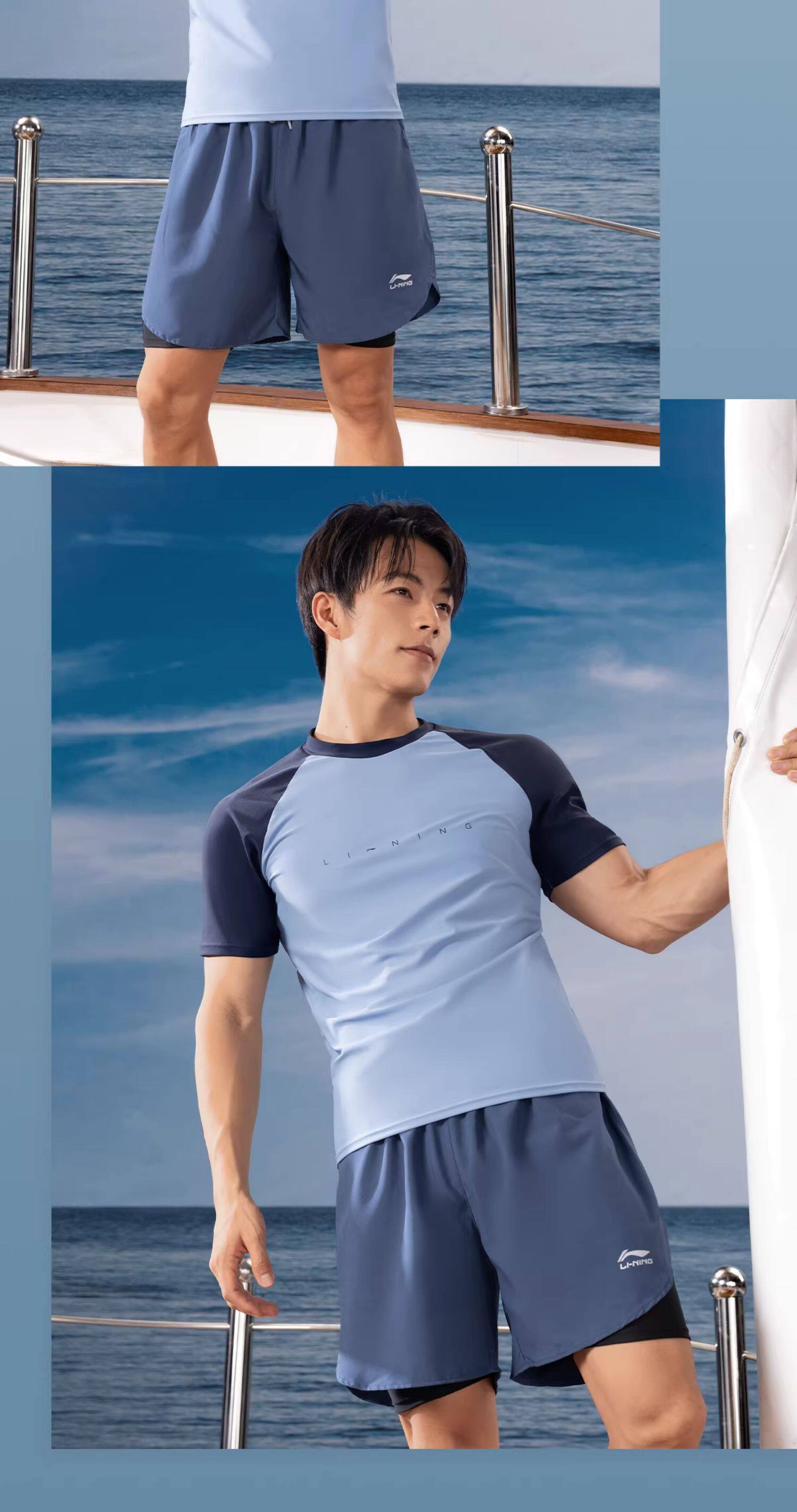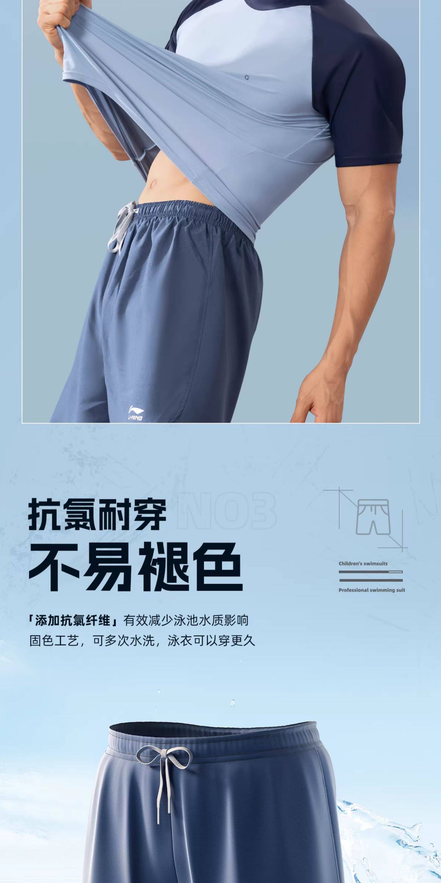 Li-Ning Swimwear for Boys, Teenagers, Junior High School Students, Swimming Trunks Set, Adult Hot Spring Large Size Men's Two-Piece Swimsuit