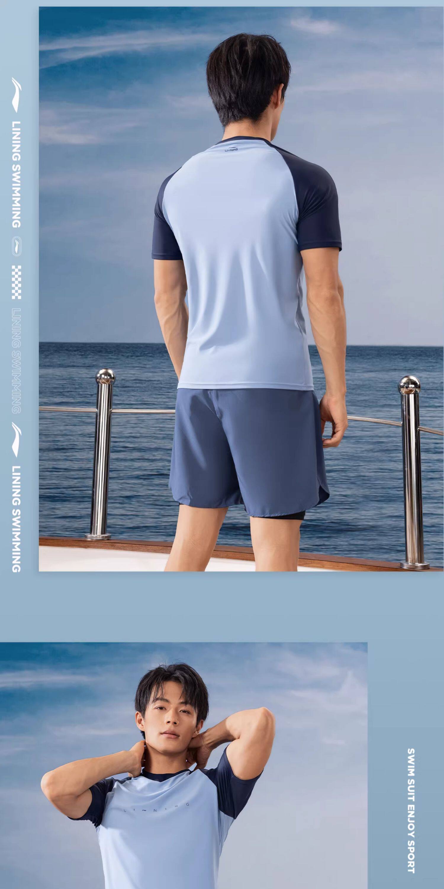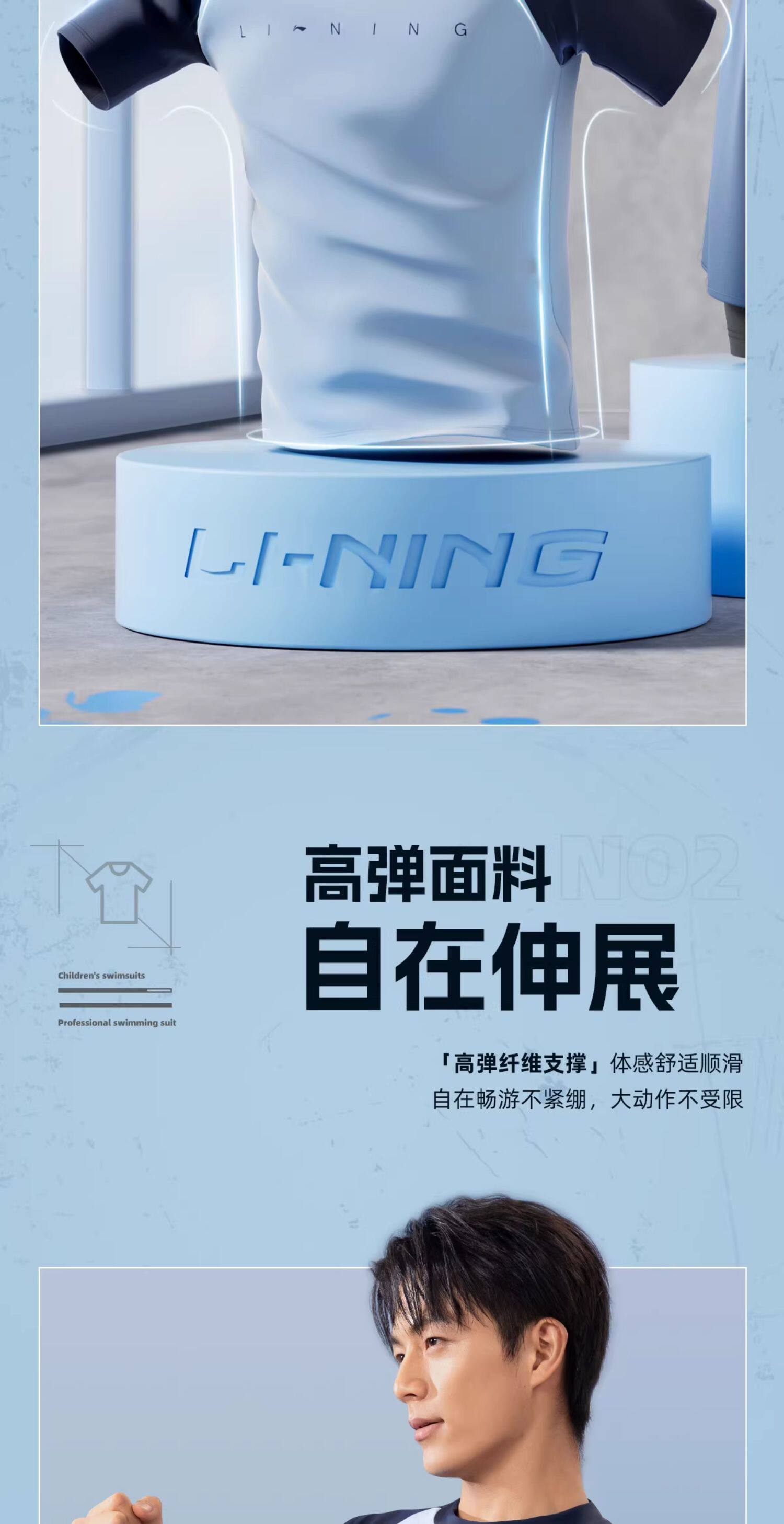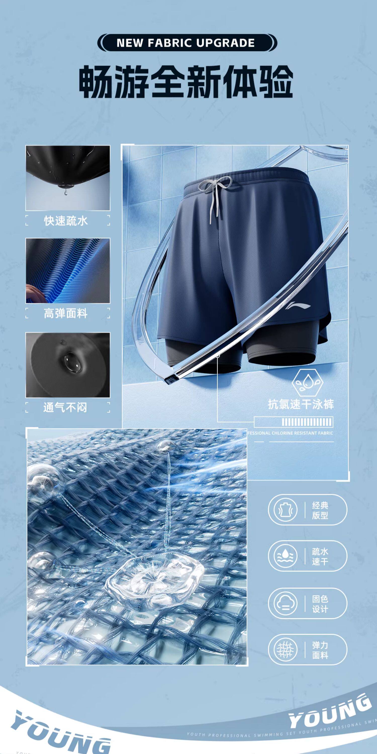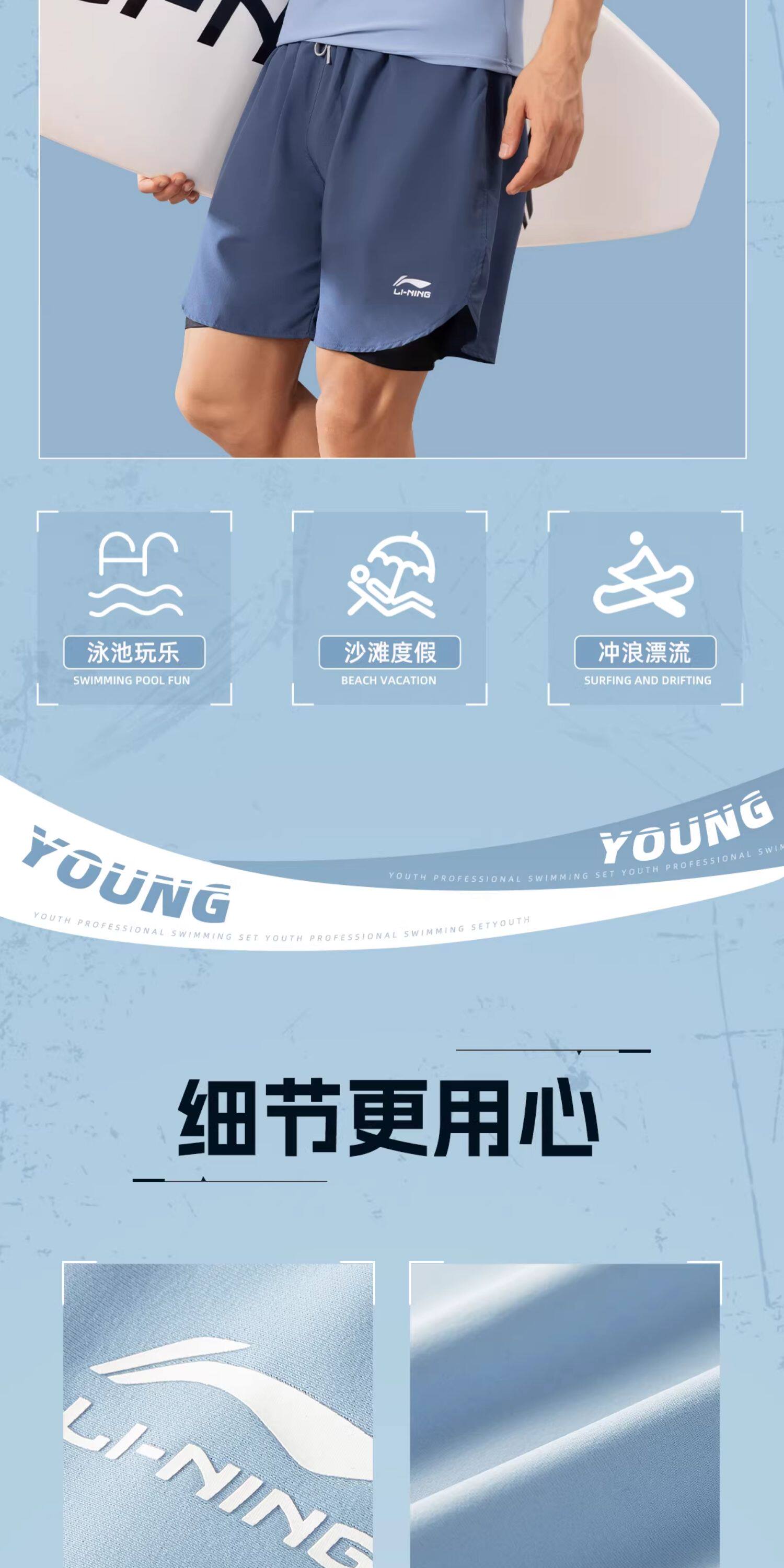 Li-Ning Swimwear for Boys, Teenagers, Junior High School Students, Swimming Trunks Set, Adult Hot Spring Large Size Men's Two-Piece Swimsuit