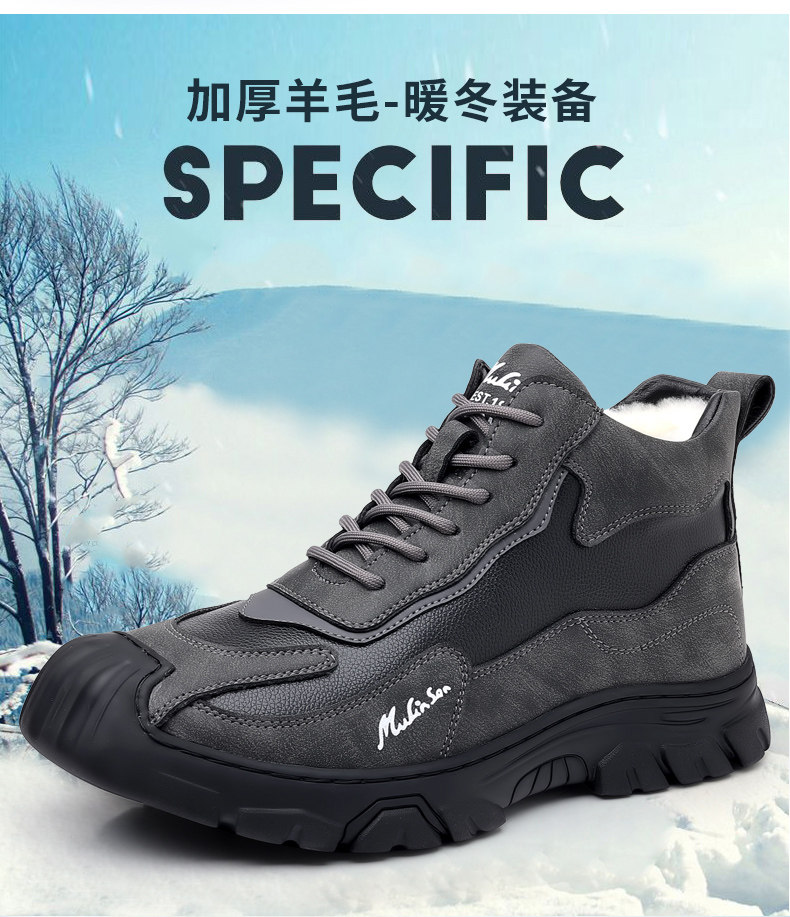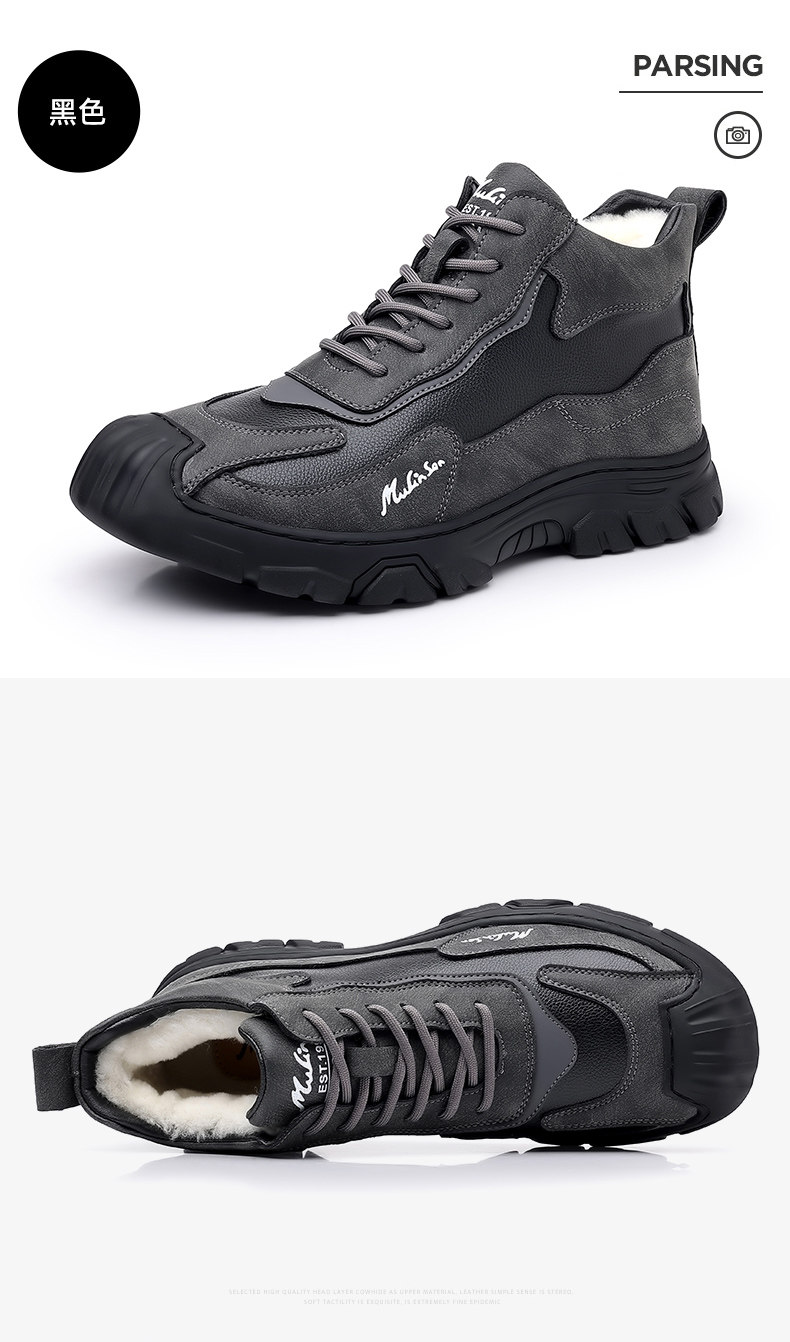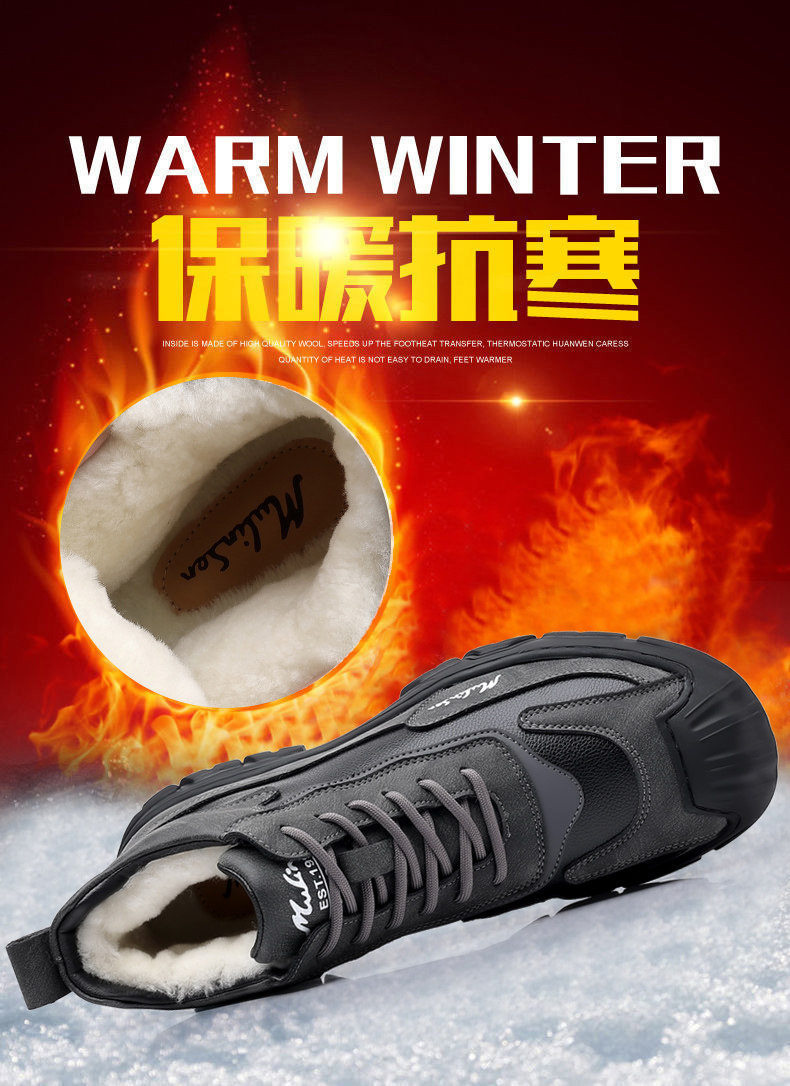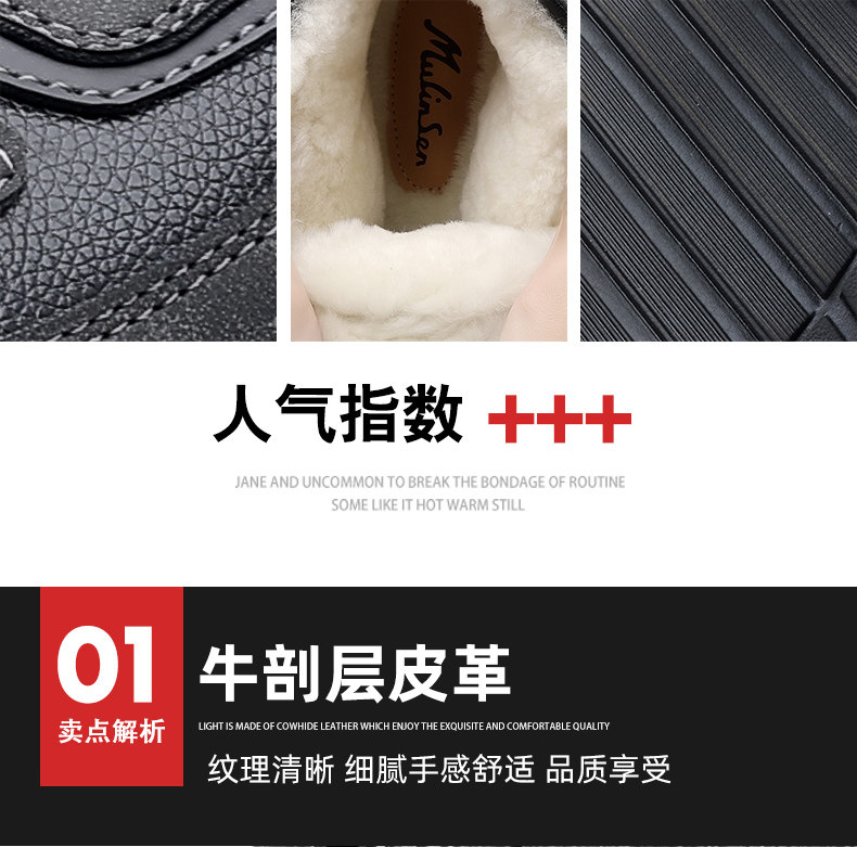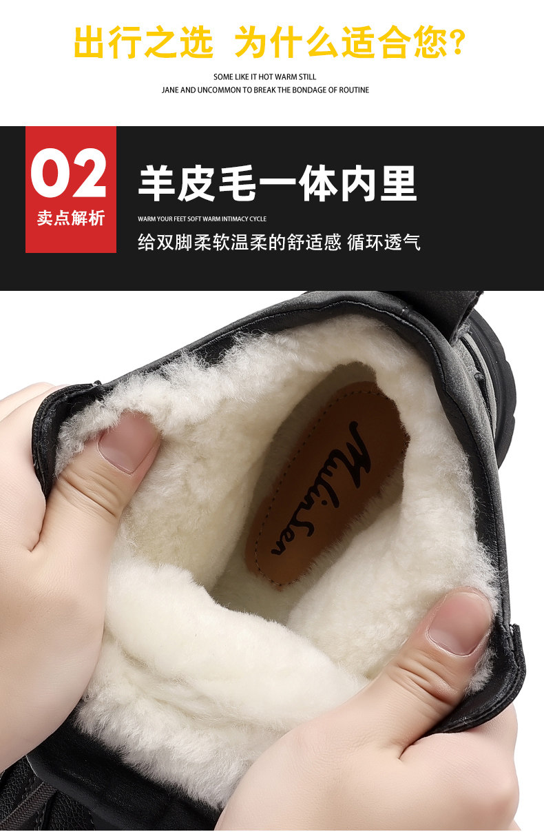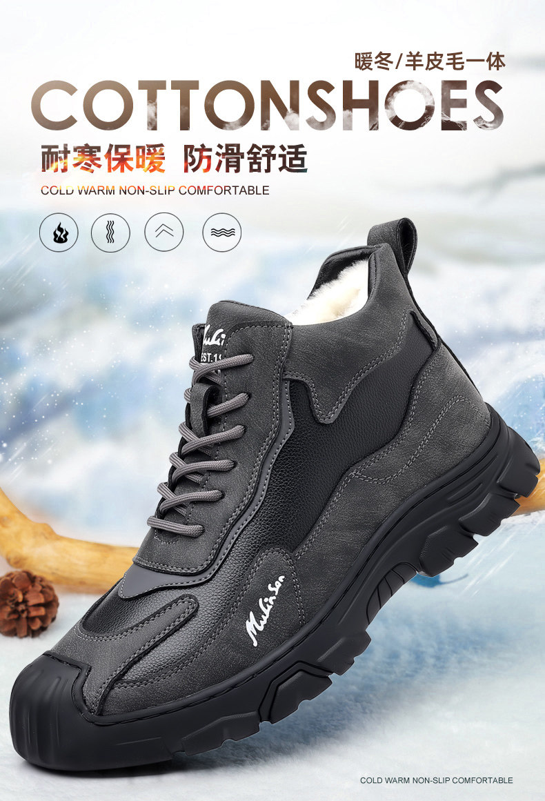 Mulinsen Men's Cotton Shoes Winter Warm Cotton Leather Shoes Men's Fleece-Lined Wool Fur Integrated High-Top Fashion Snow Boots