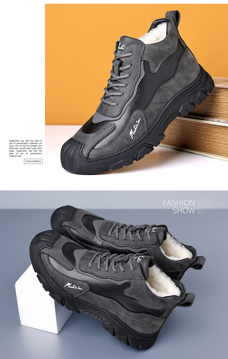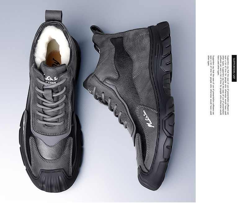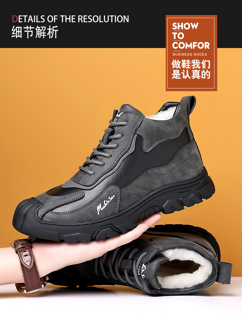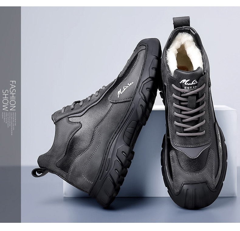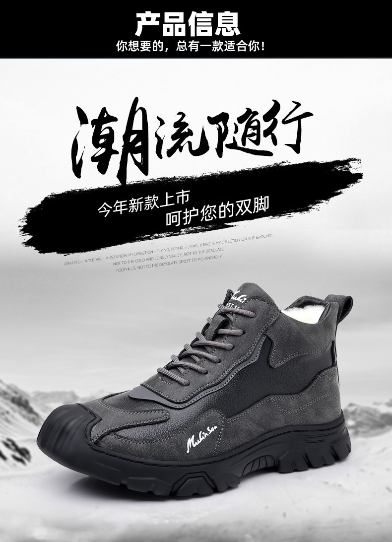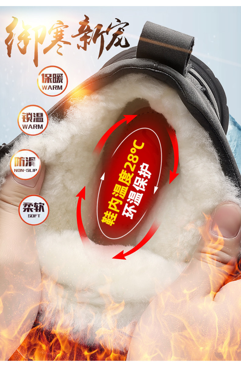 Mulinsen Men's Cotton Shoes Winter Warm Cotton Leather Shoes Men's Fleece-Lined Wool Fur Integrated High-Top Fashion Snow Boots