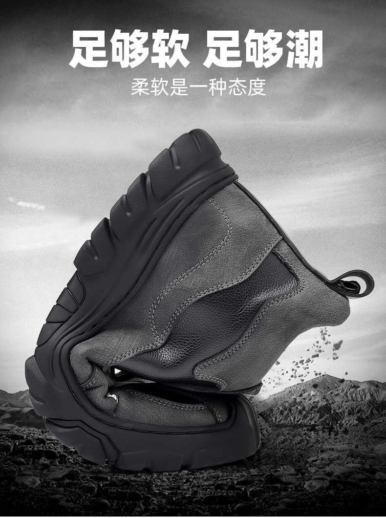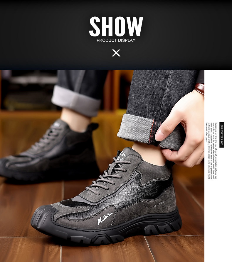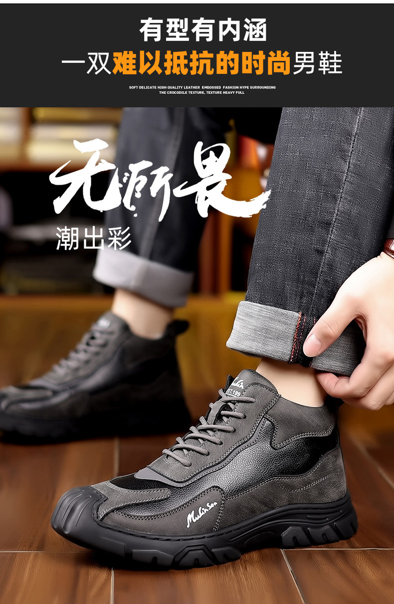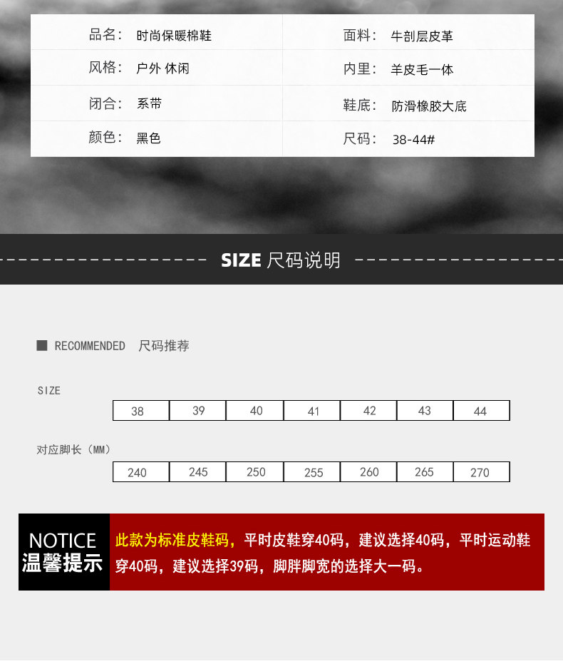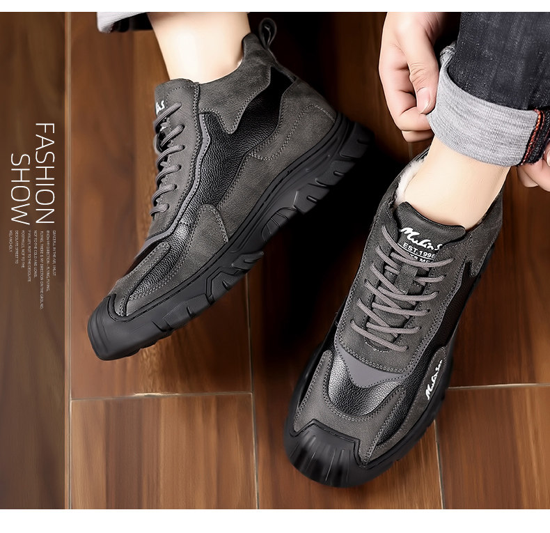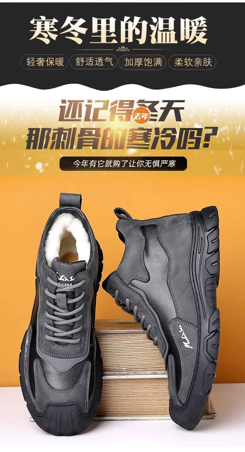 Mulinsen Men's Cotton Shoes Winter Warm Cotton Leather Shoes Men's Fleece-Lined Wool Fur Integrated High-Top Fashion Snow Boots