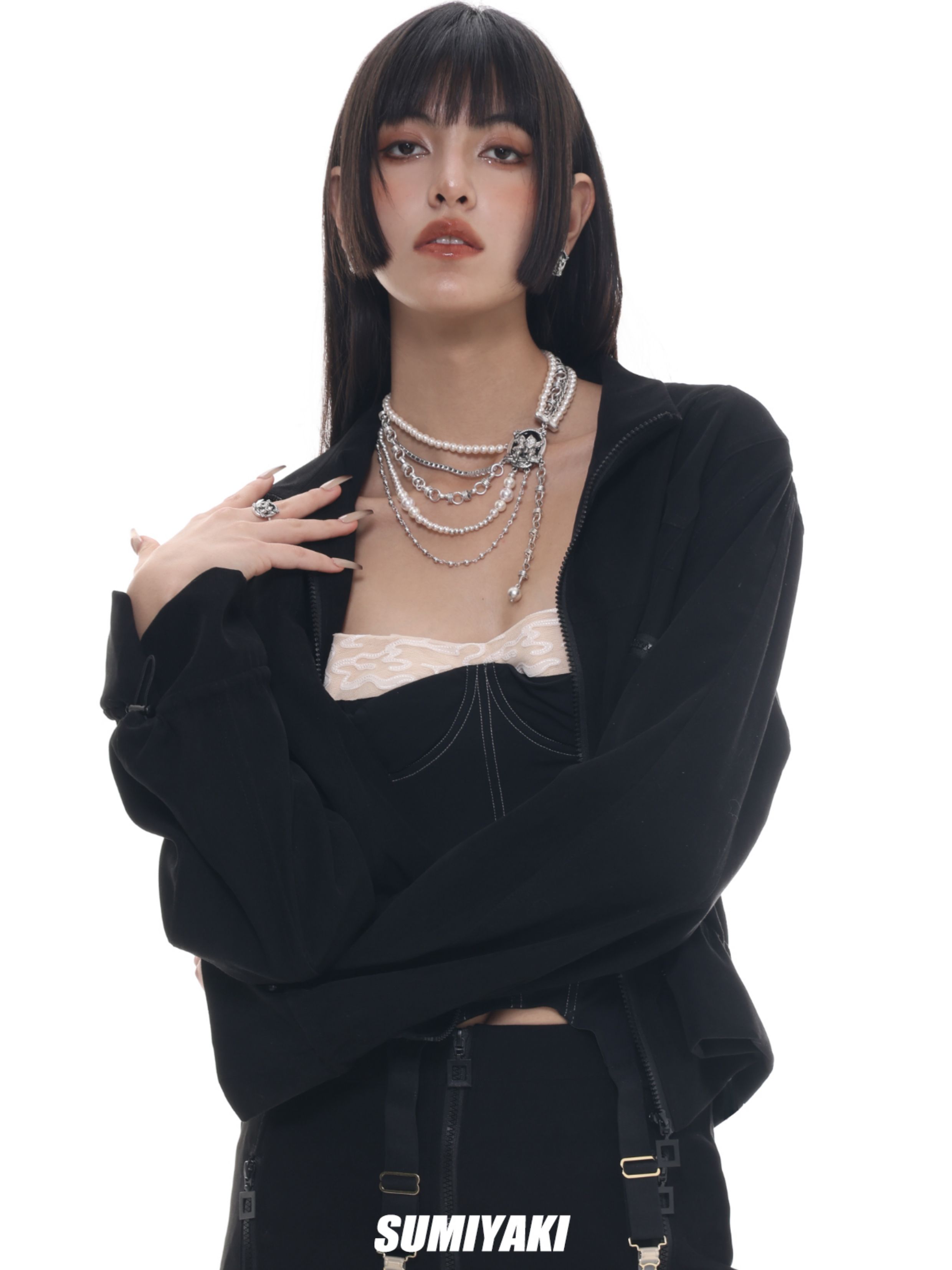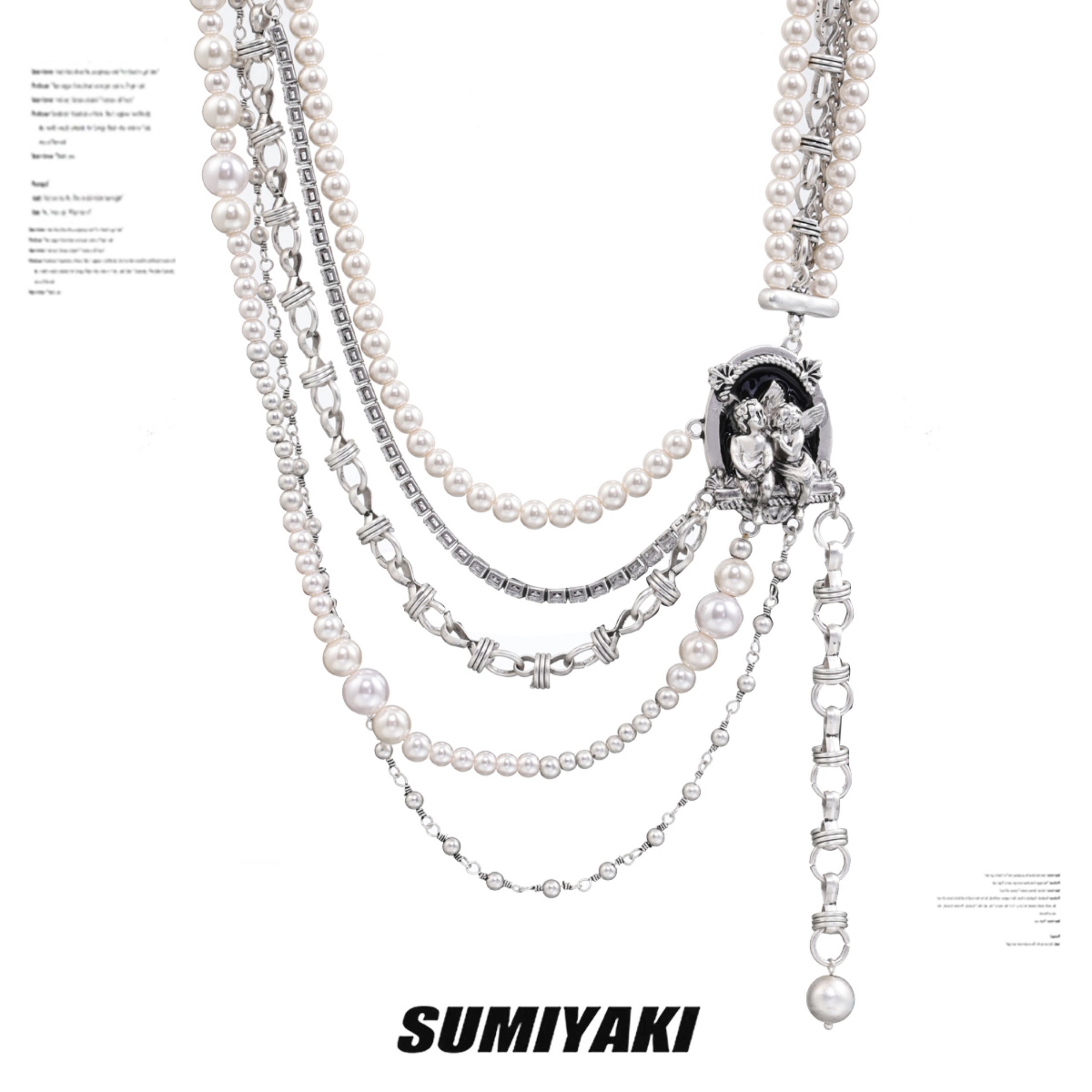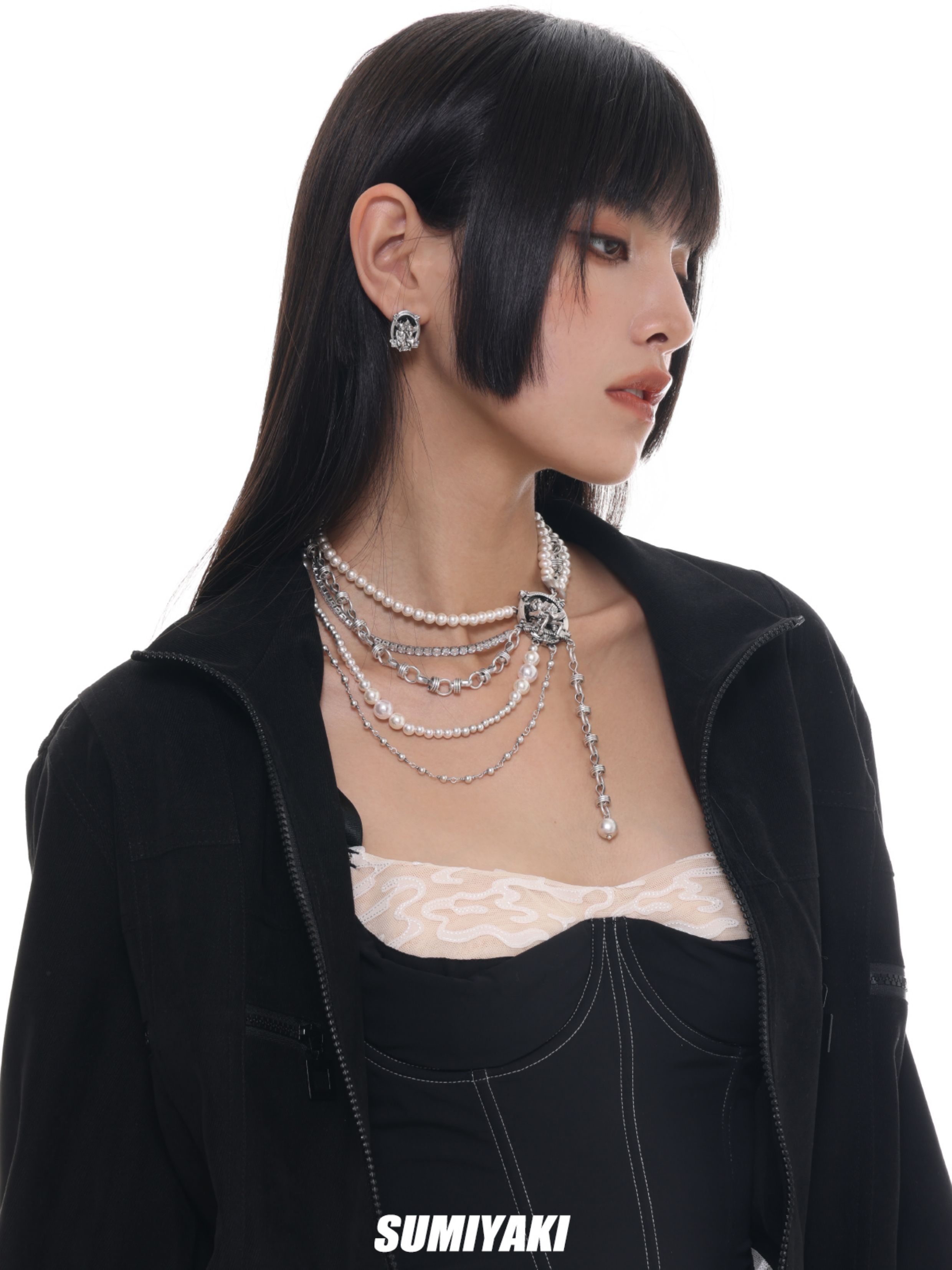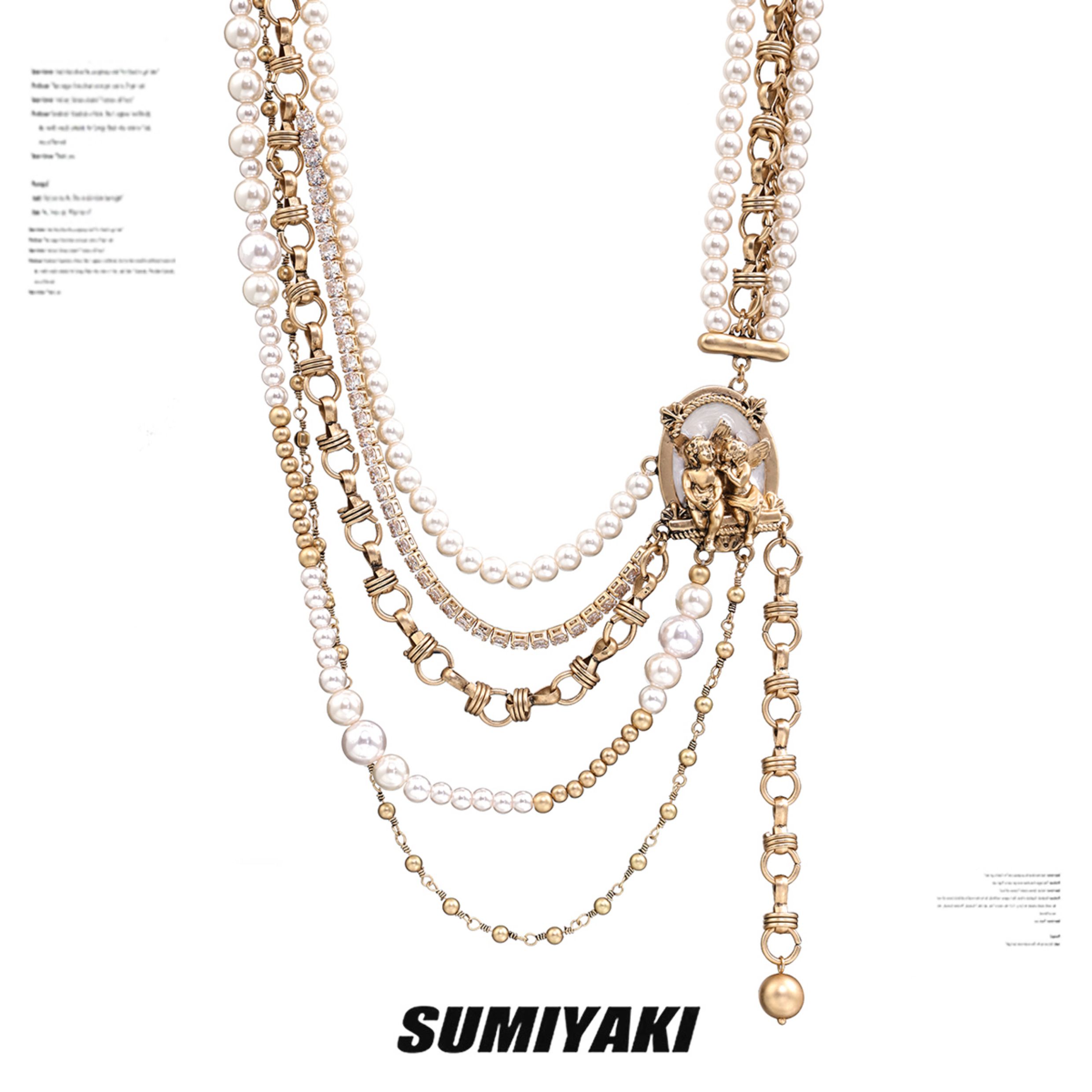 [Same Style as Jin Jing] Sumiyaki Vintage American-Style Multi-Layered Pearl Necklace, Layered Choker, Niche Design, Celebrity Style