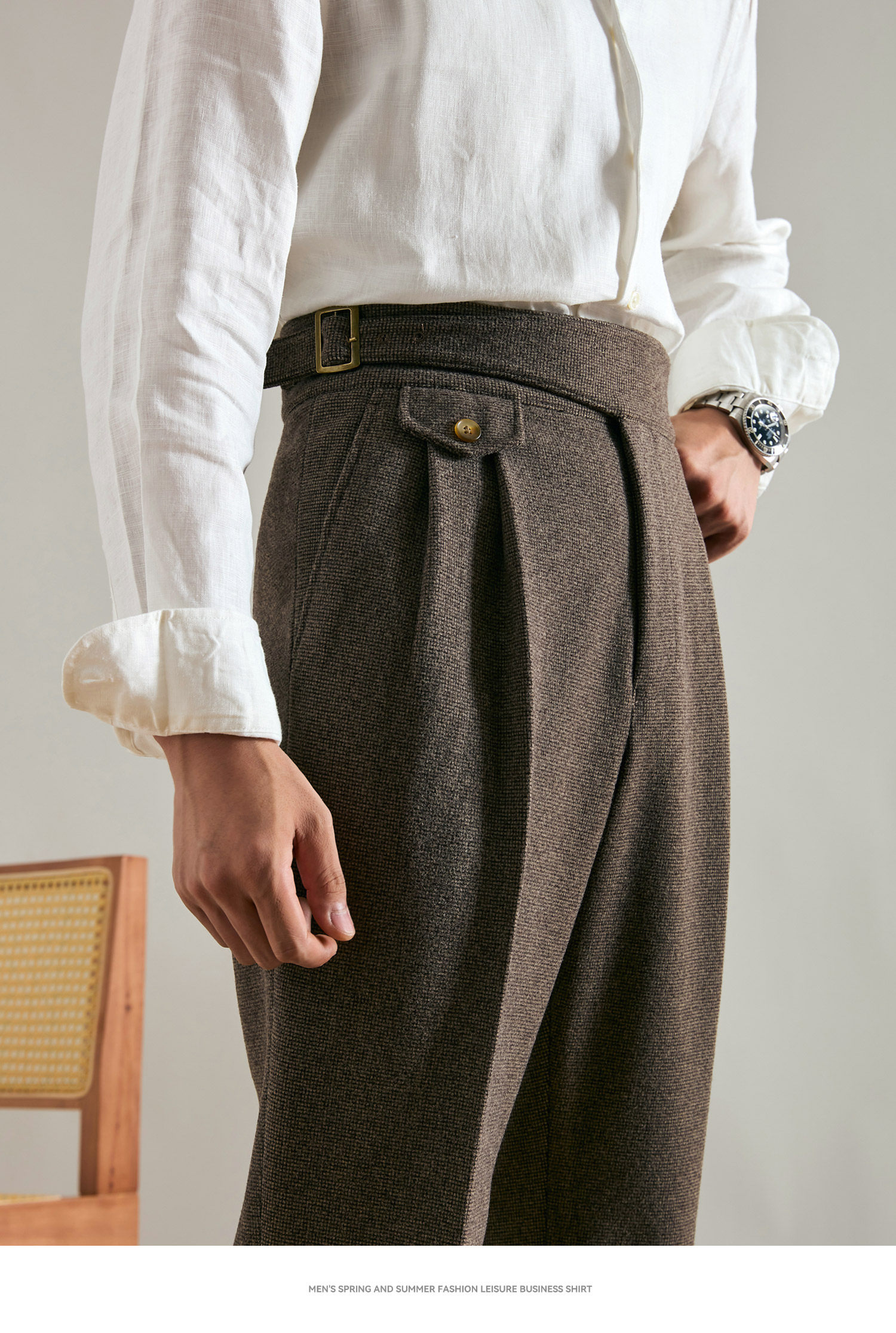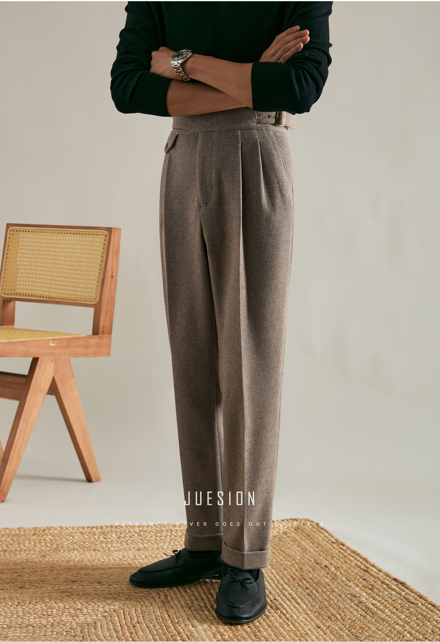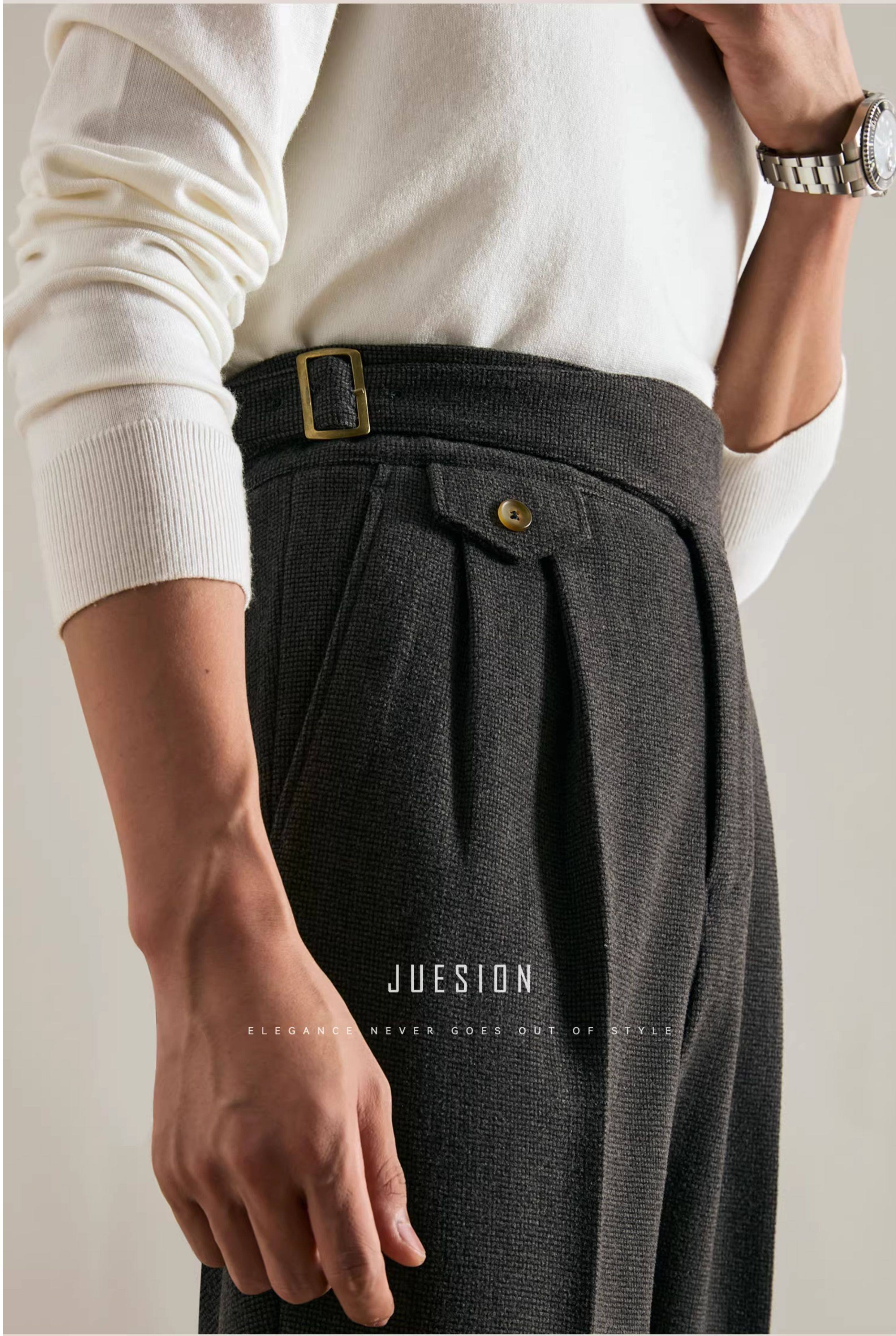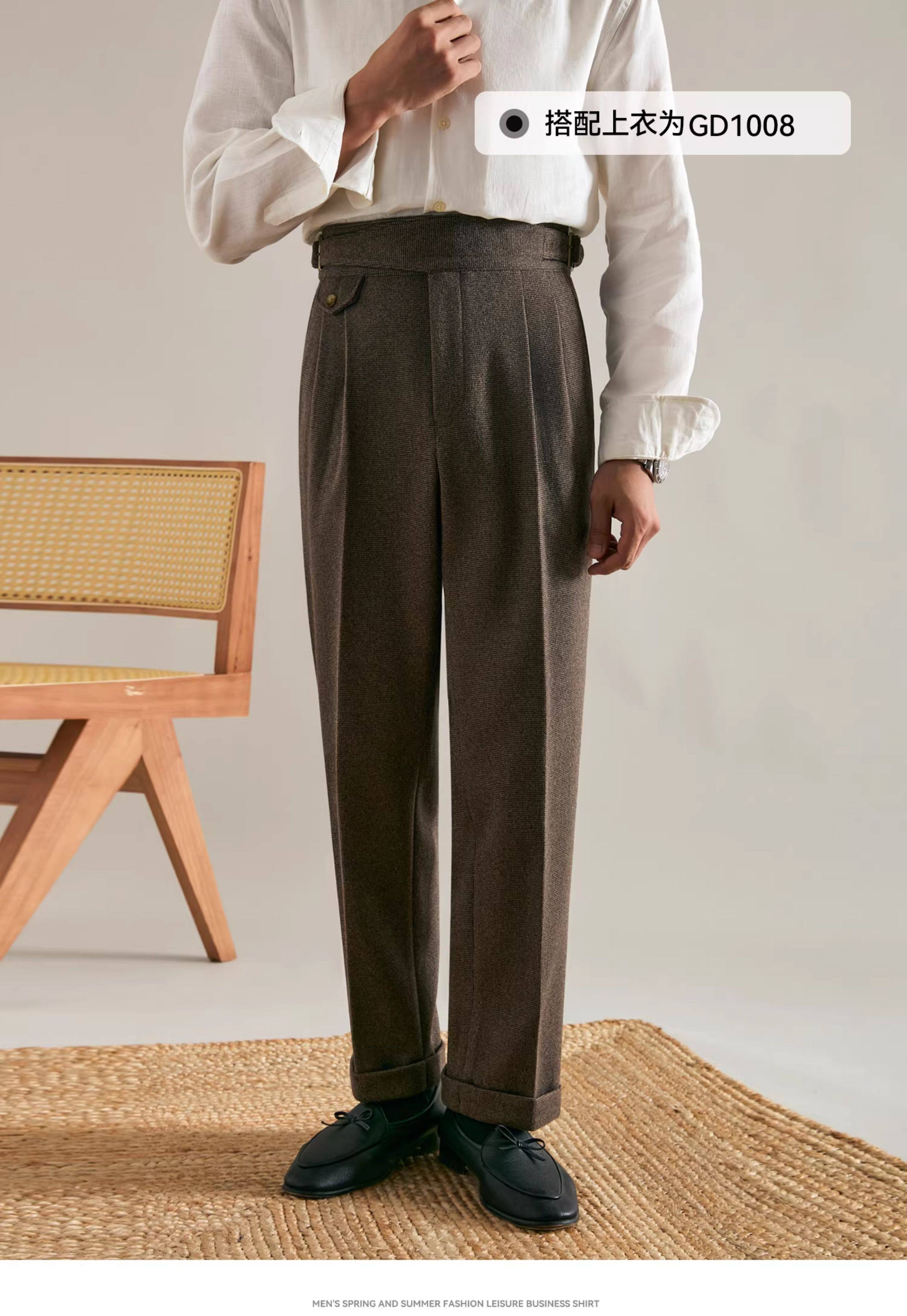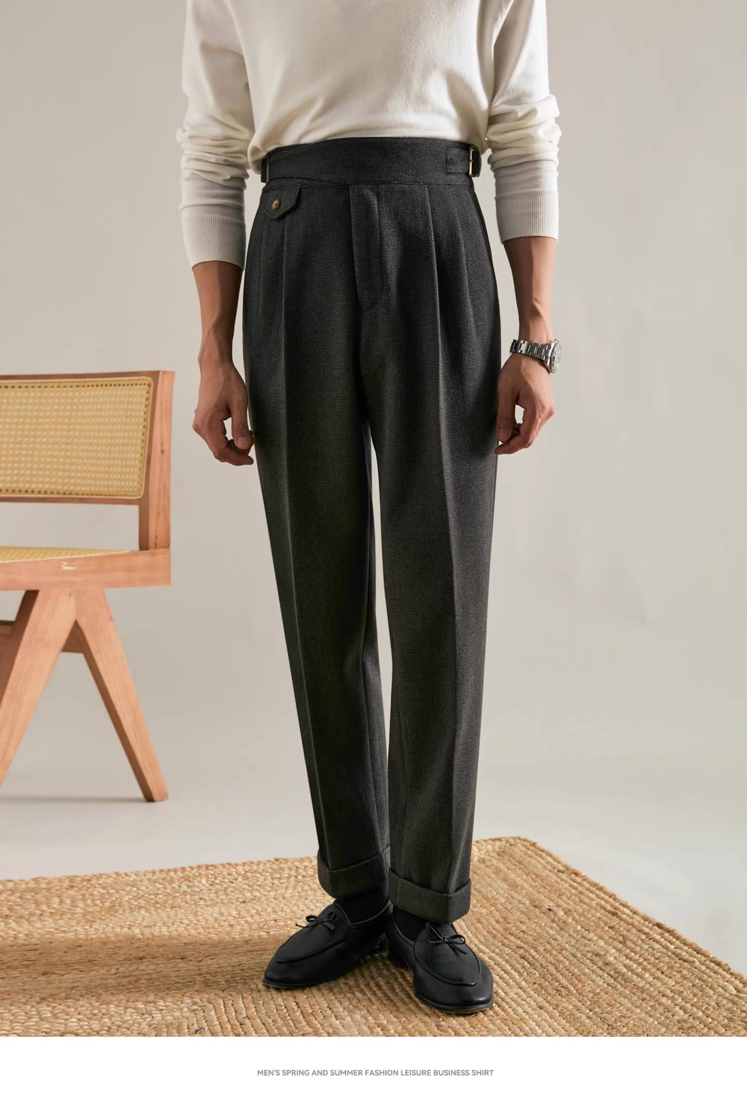 Juesion Autumn and Winter Italian Naples Woolen Suit Pants for Men, Thickened Double Pleated Straight Business Casual Trousers