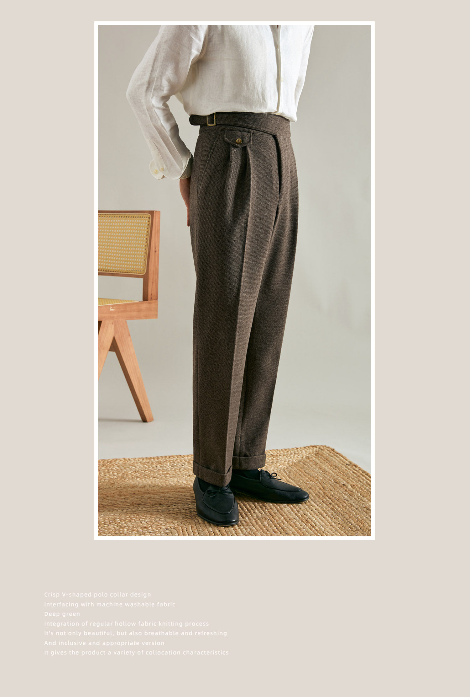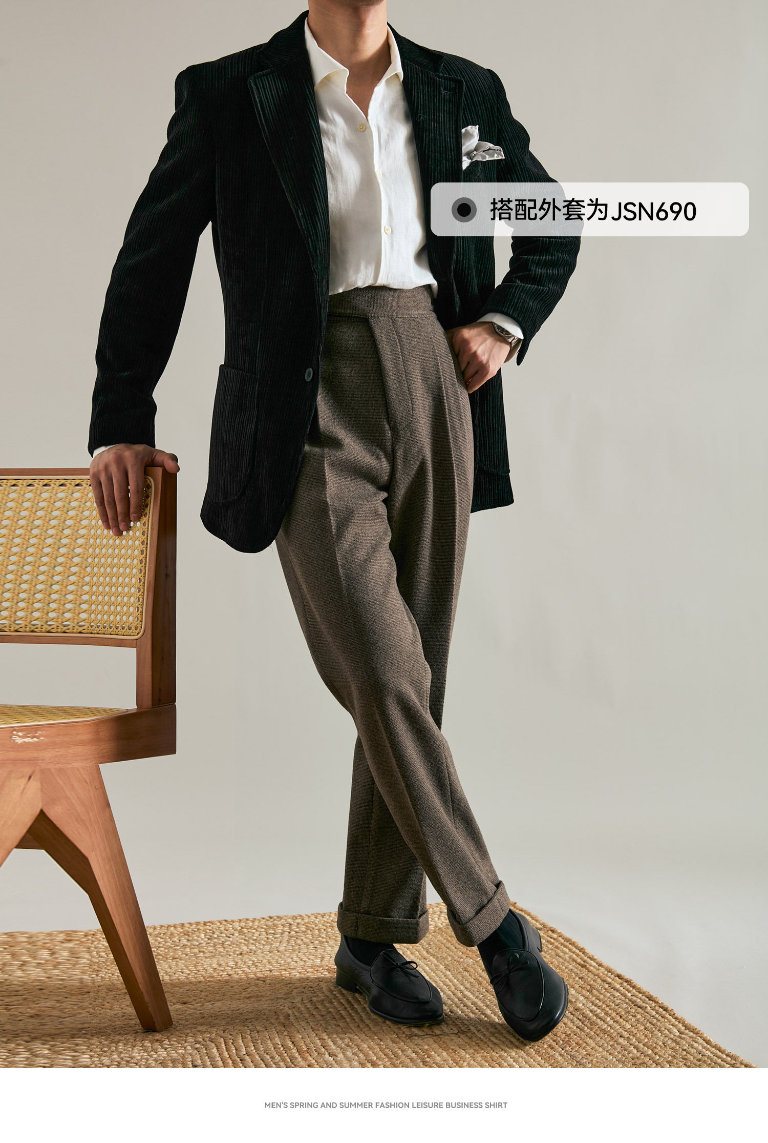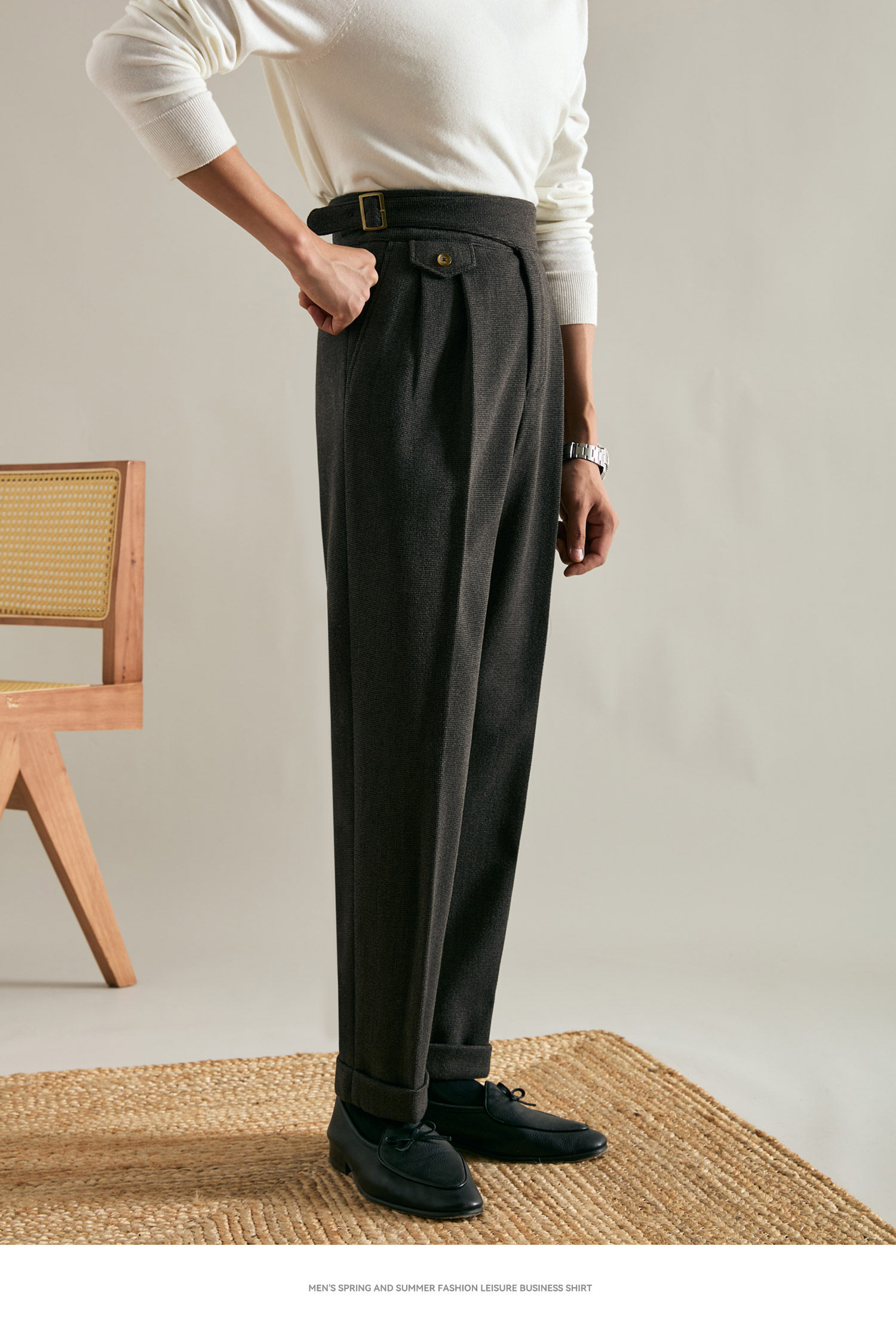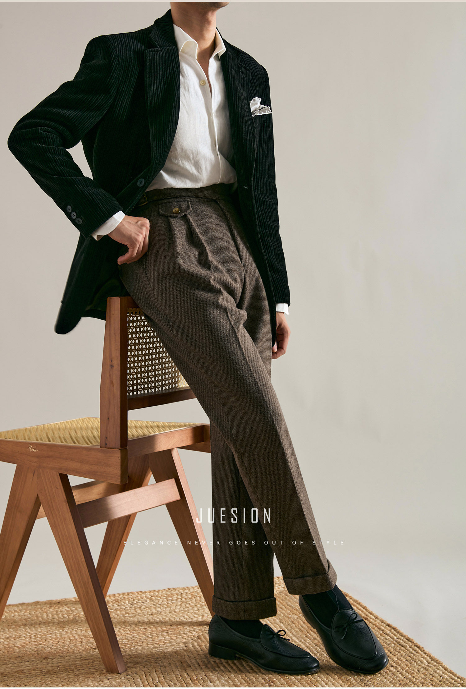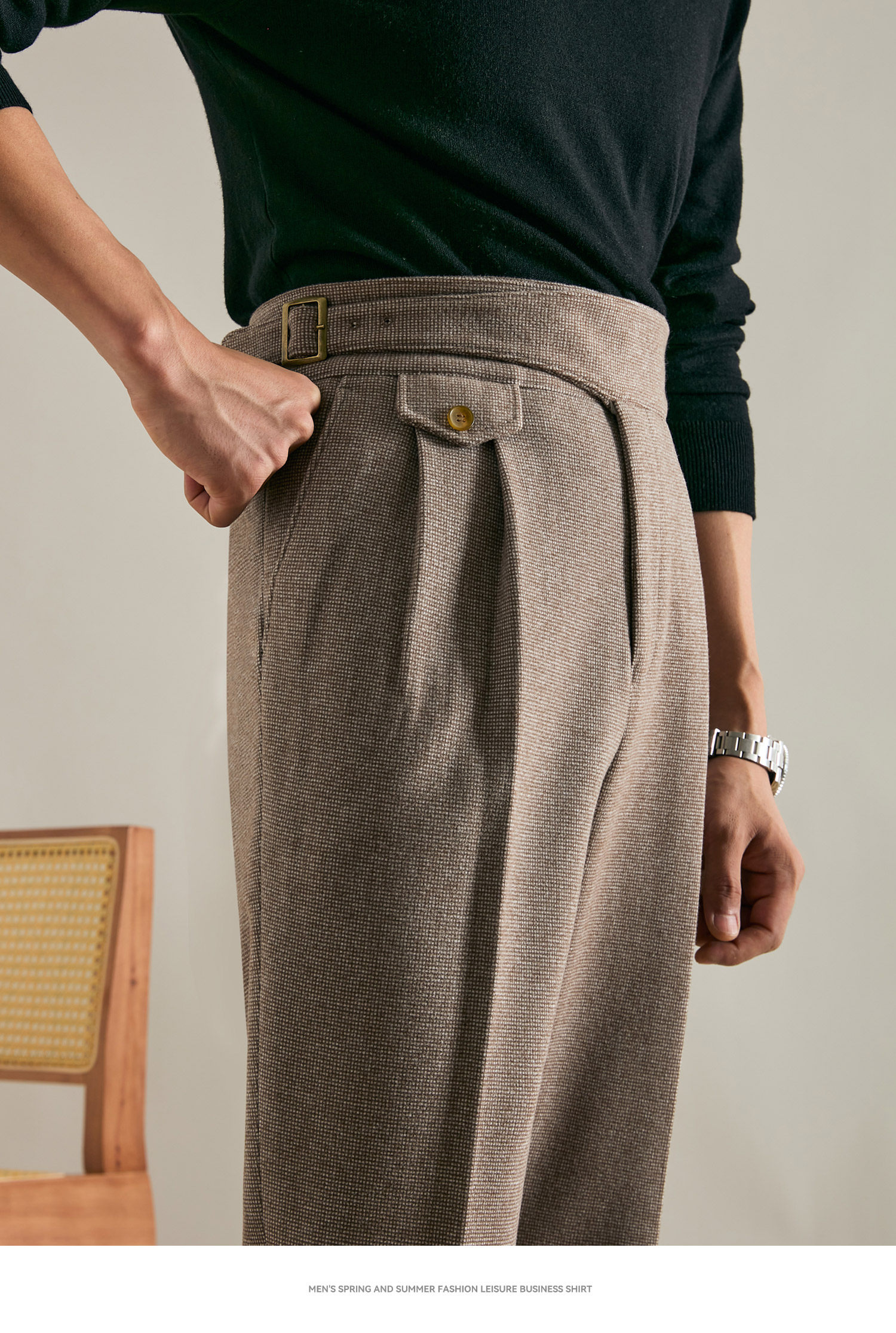 Juesion Autumn and Winter Italian Naples Woolen Suit Pants for Men, Thickened Double Pleated Straight Business Casual Trousers