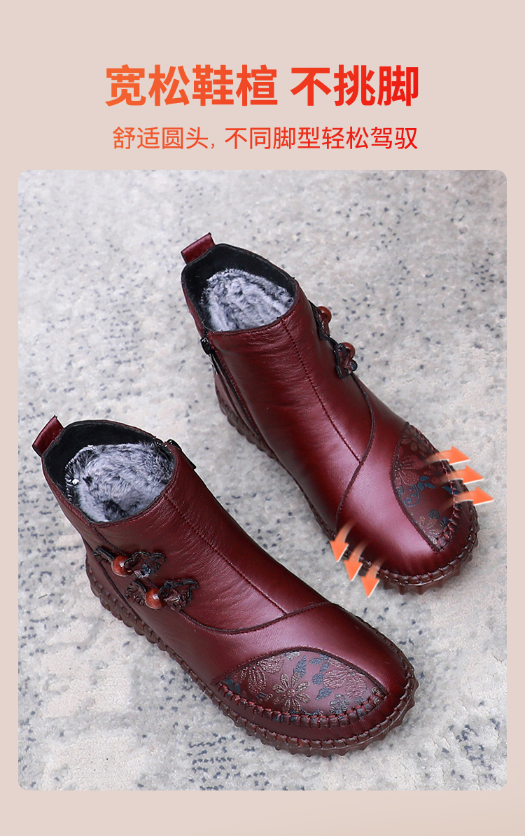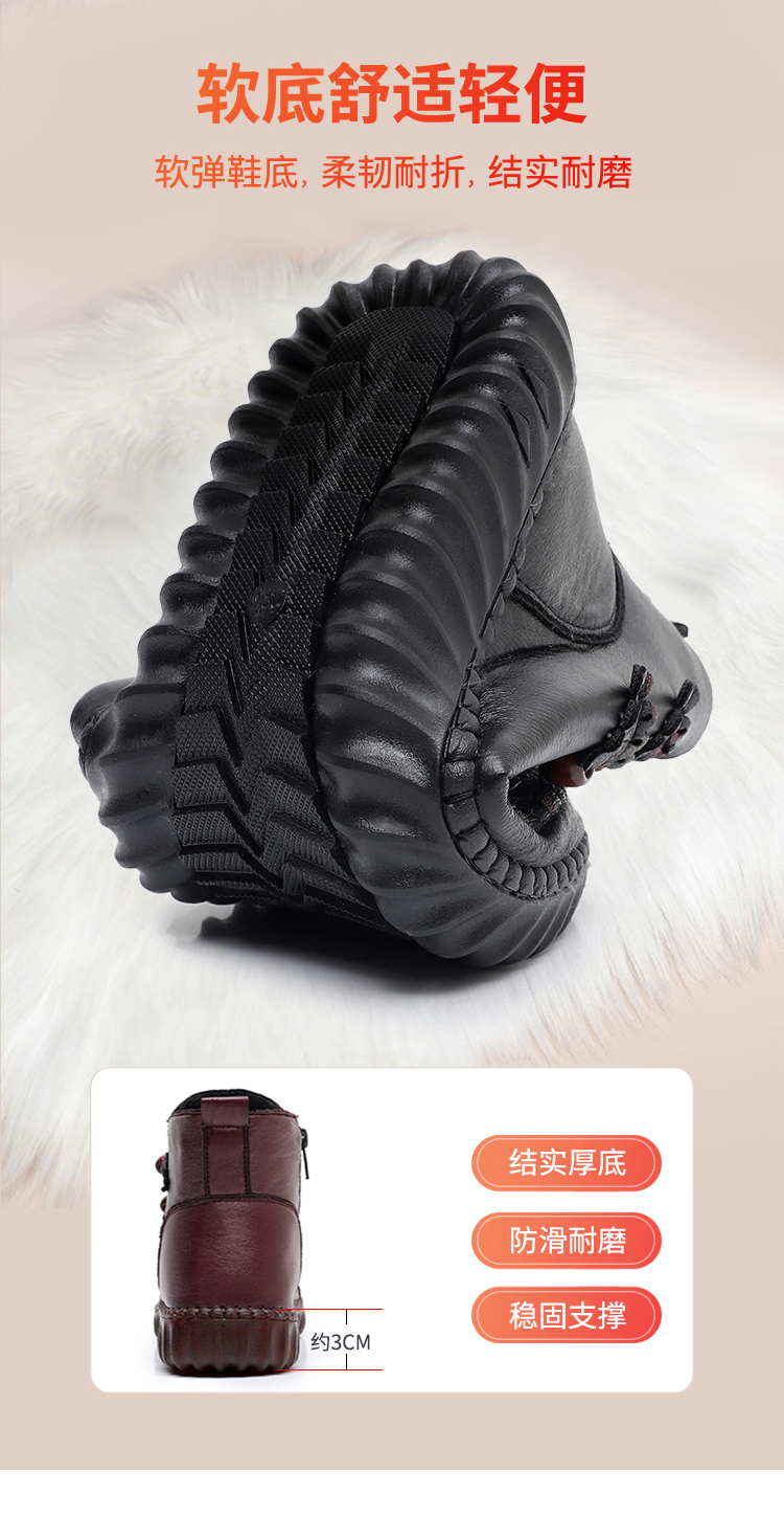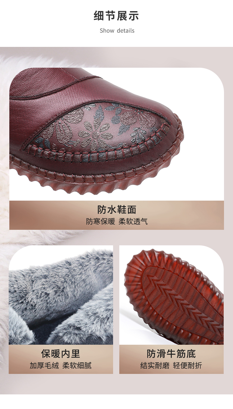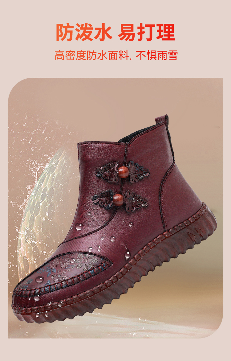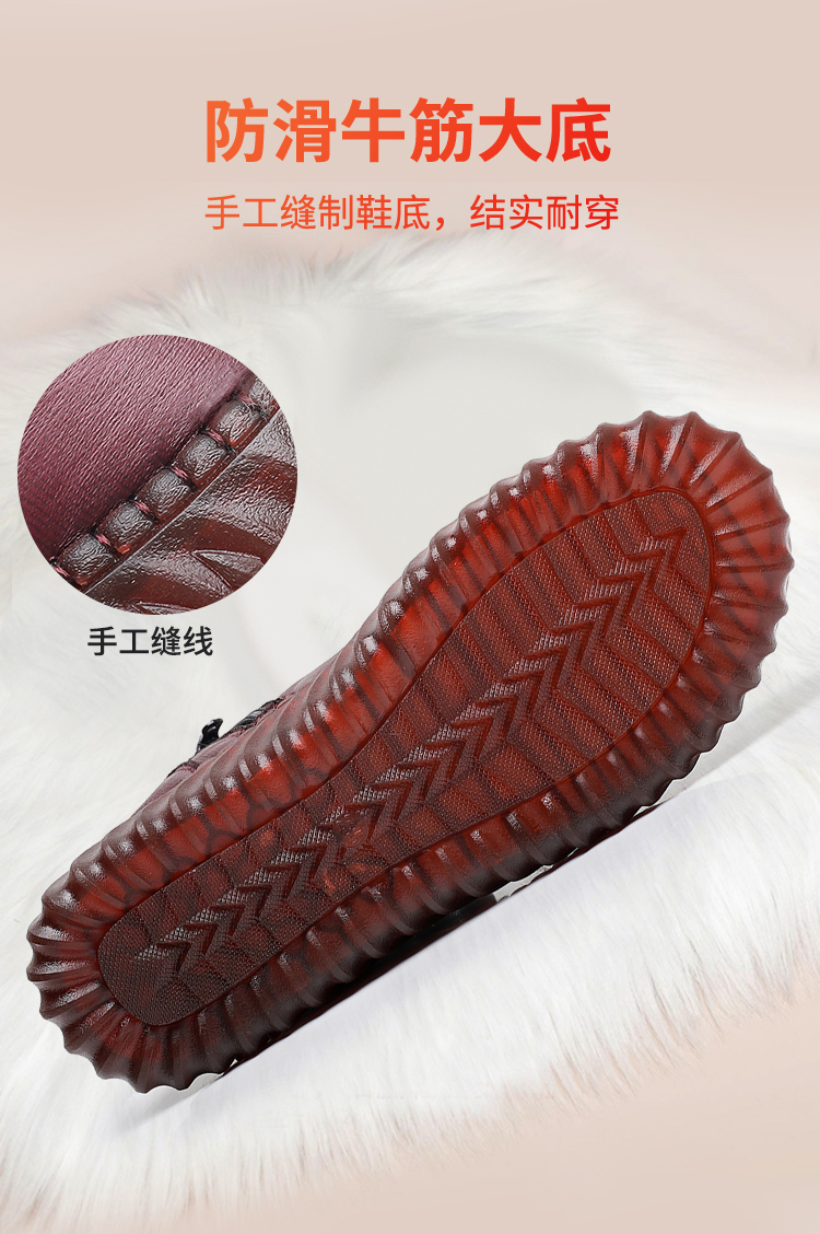 Old Beijing Cloth Shoes for Women, Winter Fleece-Lined, Warm, Middle-Aged and Elderly Mother's Shoes, New Non-Slip, Waterproof, Soft-Soled Elderly Cotton Shoes