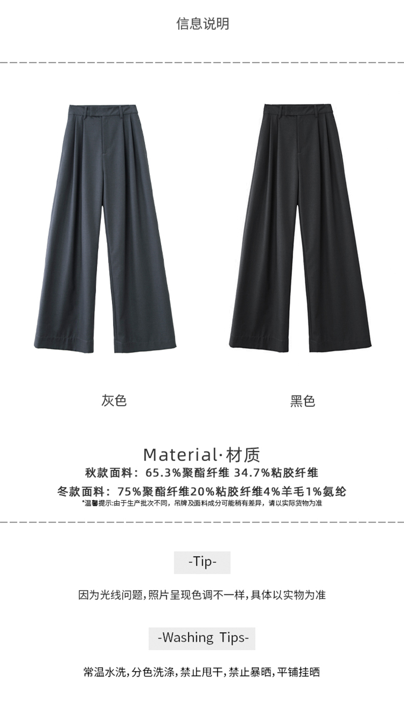 Tall Men's Gray Suit Pants, High-Waisted, Loose Casual Pants, Slimming Wide-Leg Straight Pants, Extra-Long Floor-Length Pants with Drape